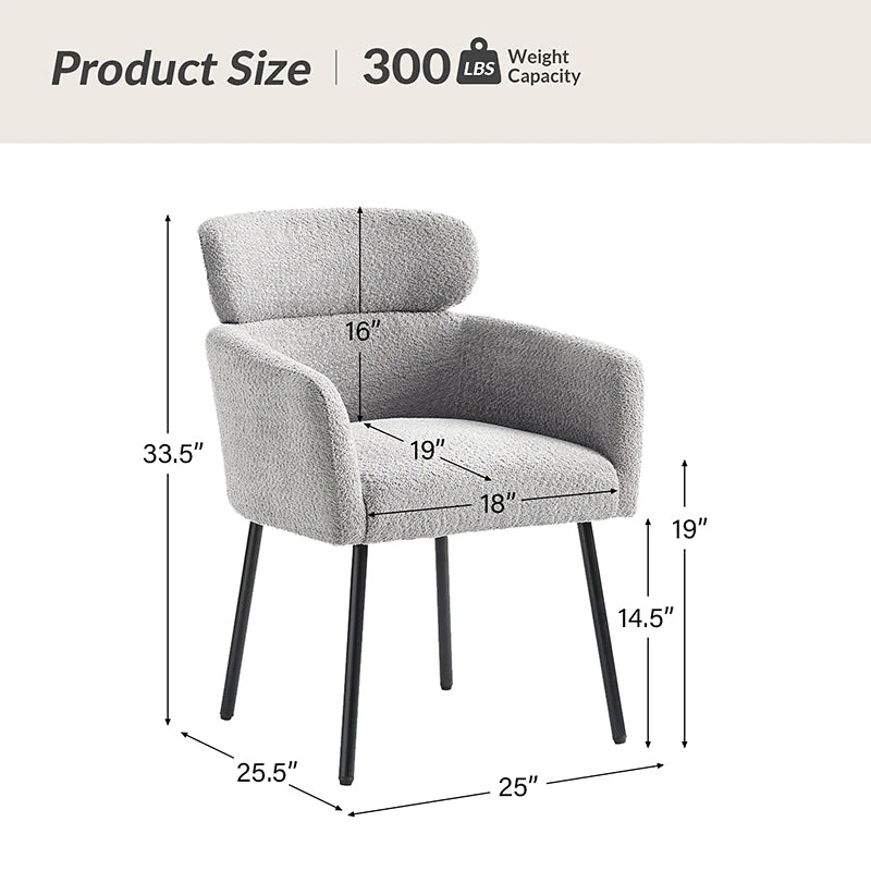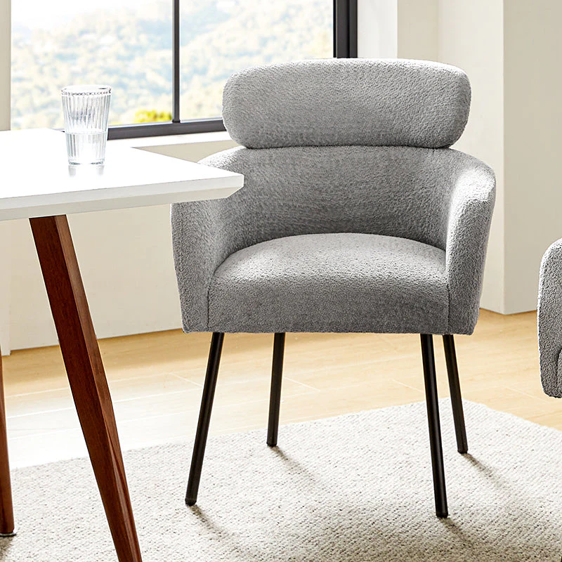 Anastasius Modern Boucle Dining Chair with Lambswool and Adjustable Feet