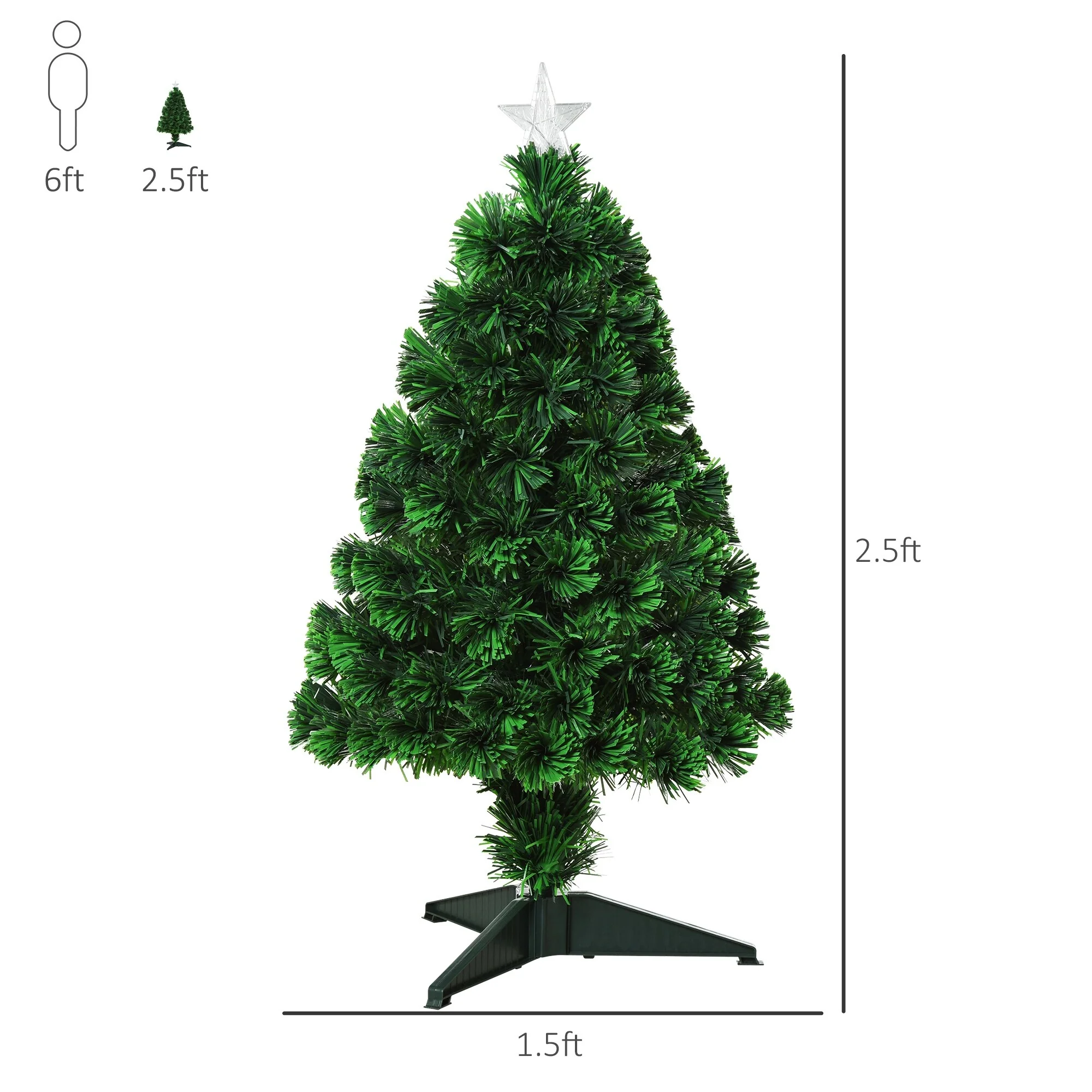 2.5ft Fiber Optic Pre-Lit Douglas Fir Tabletop Christmas Tree with 85 Realistic Branch Tips, Green