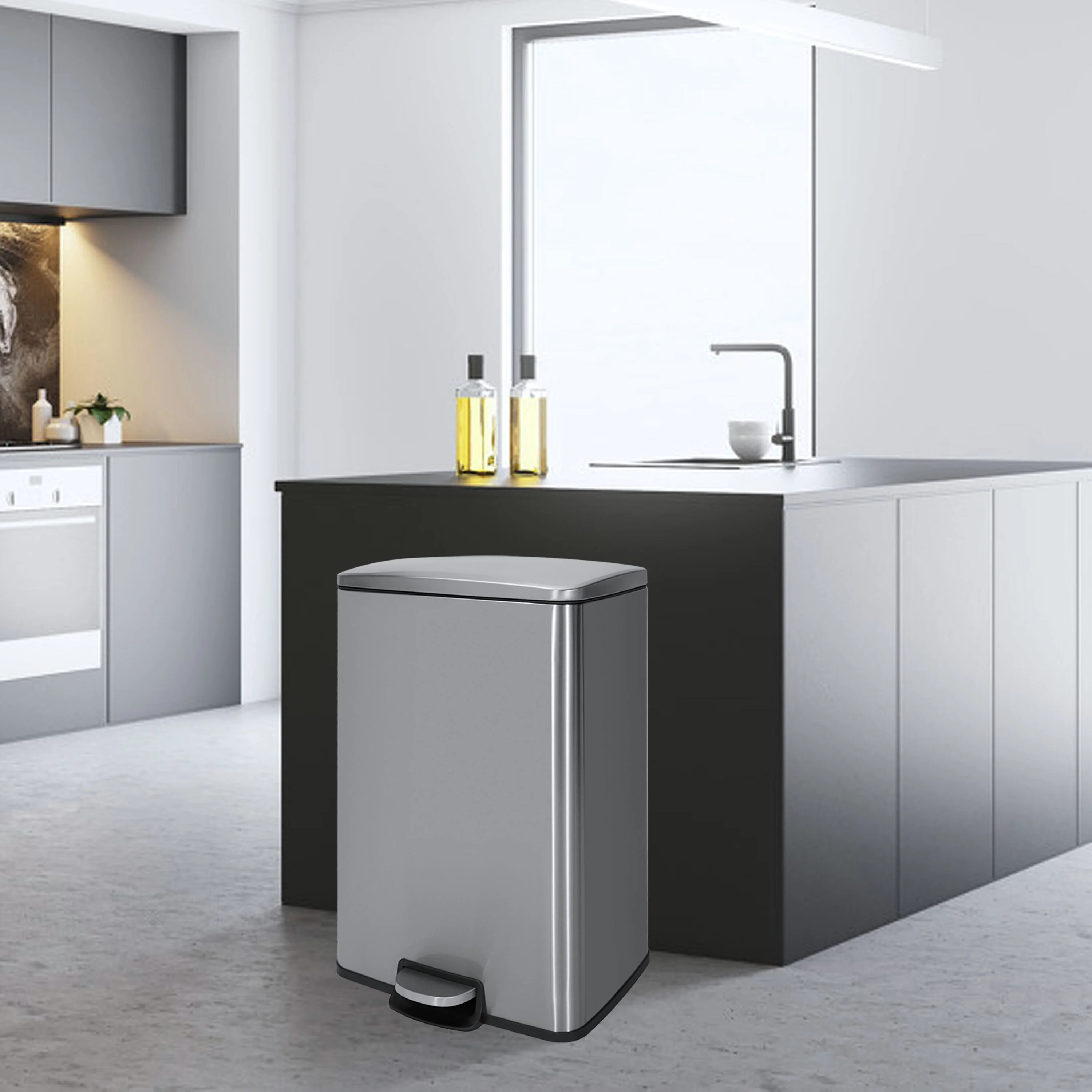 Innovaze 13 Gal./50 Liter Rectangular Stainless Steel Step-on Trash Can for Kitchen