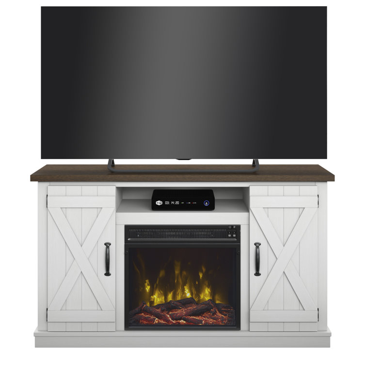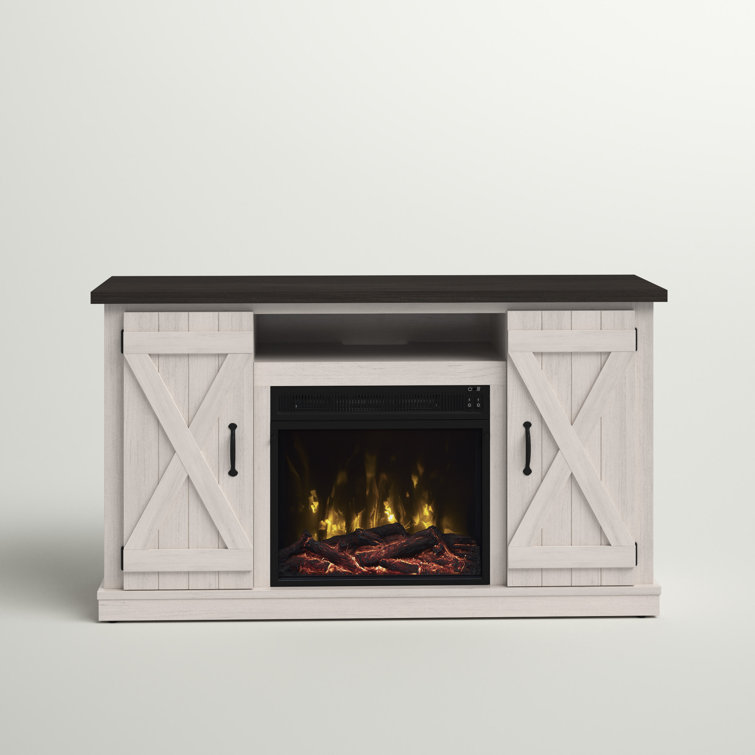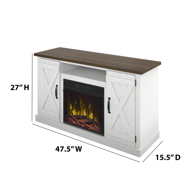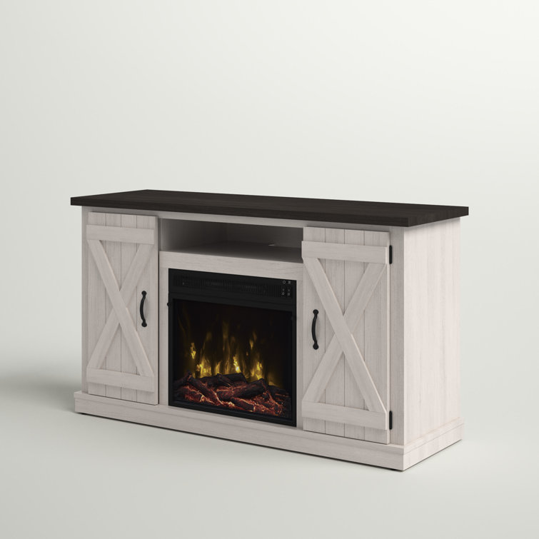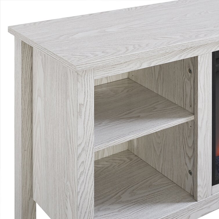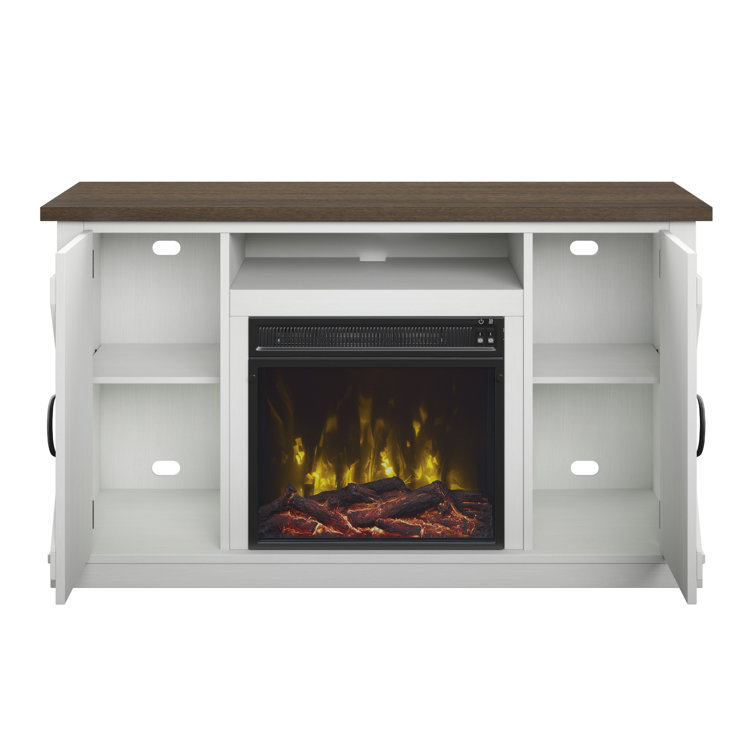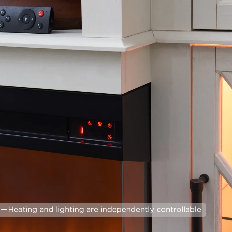 Cecily 72 in. Freestanding Electric Fireplace TV Stand in Antique White with Warm Charcoal Top Finish
