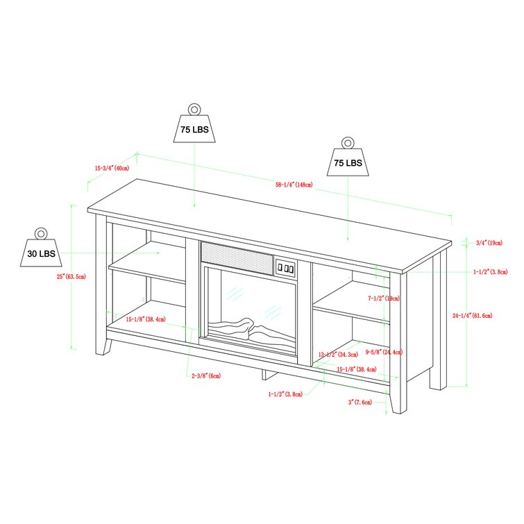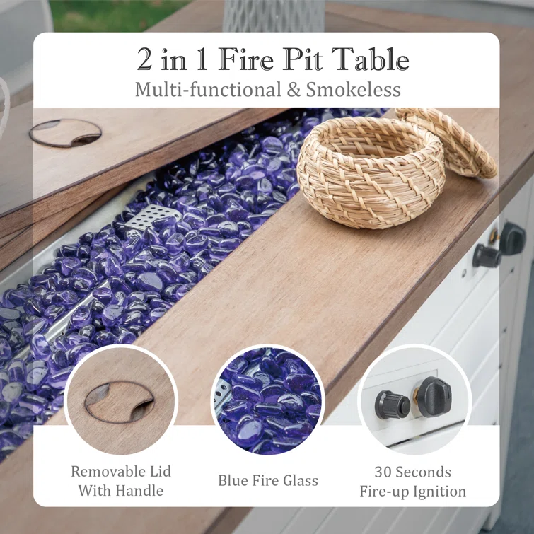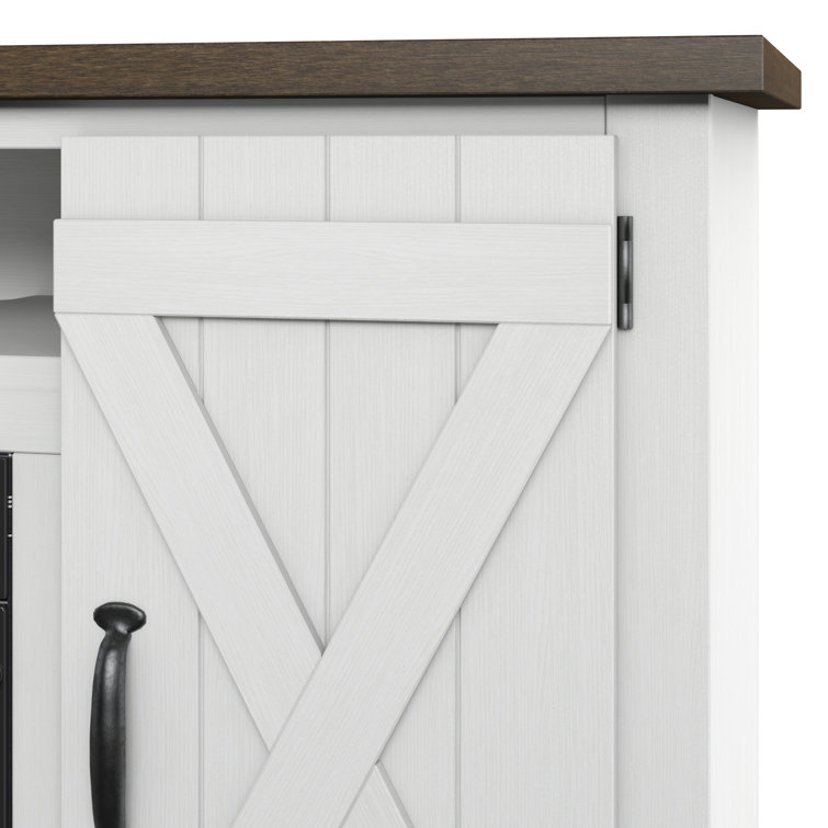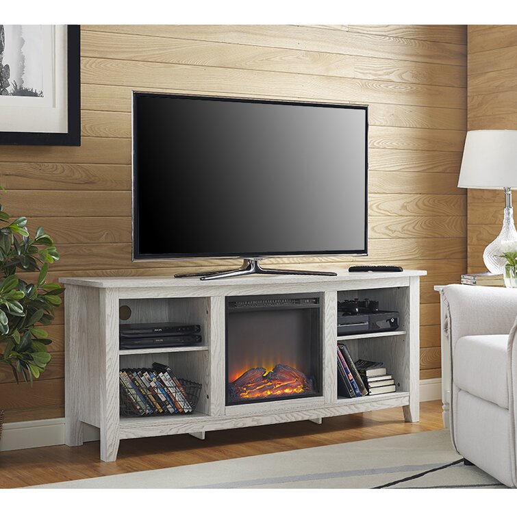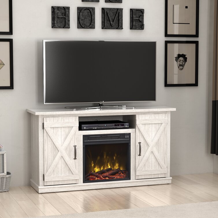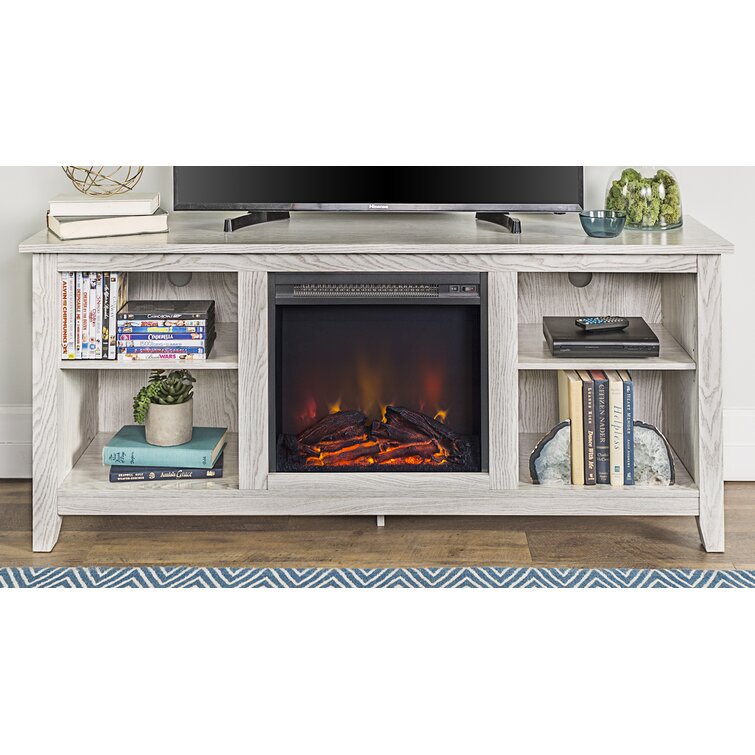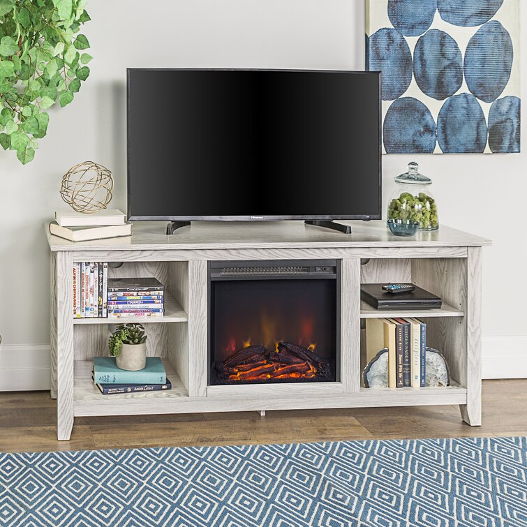 Cecily 72 in. Freestanding Electric Fireplace TV Stand in Antique White with Warm Charcoal Top Finish