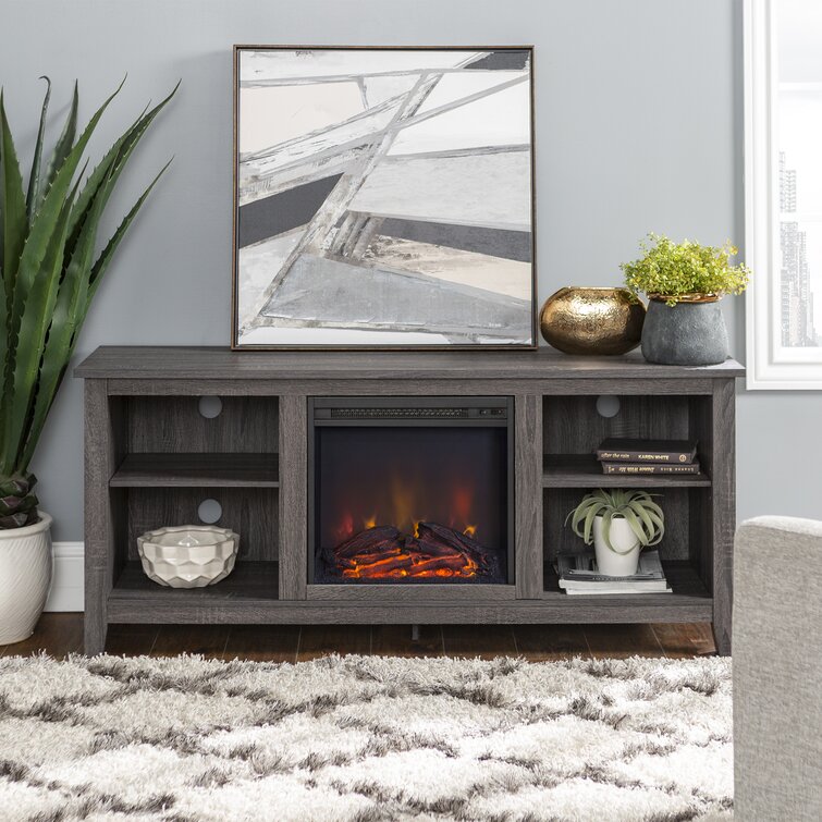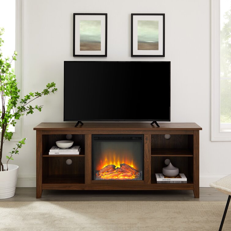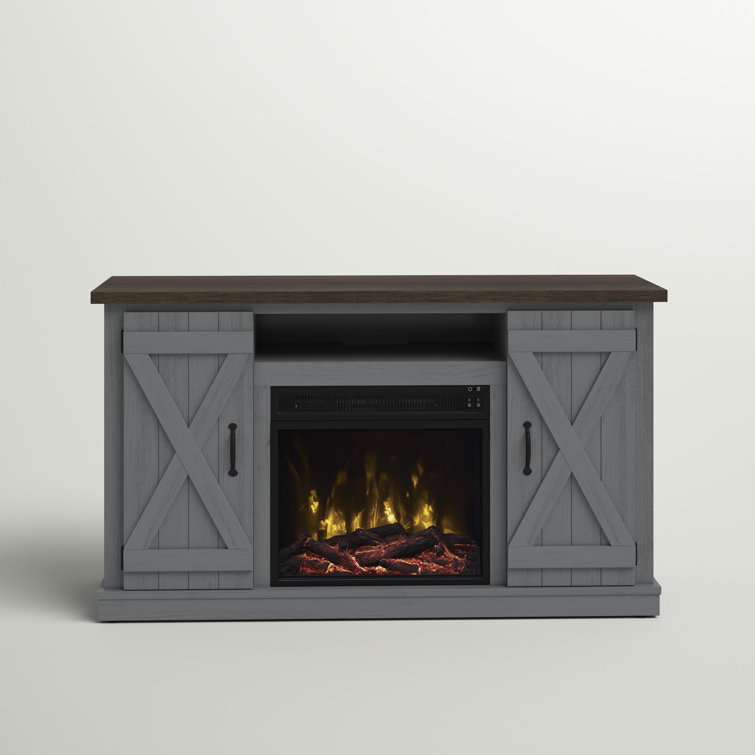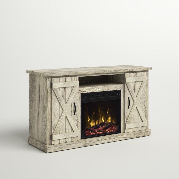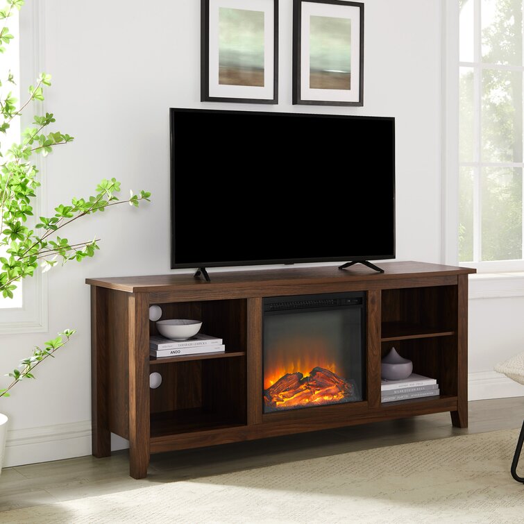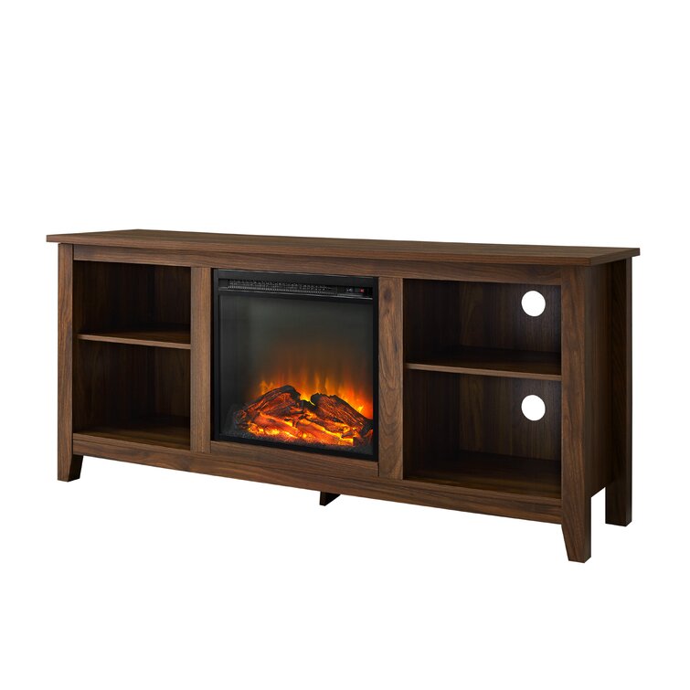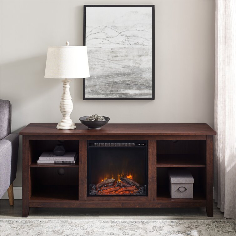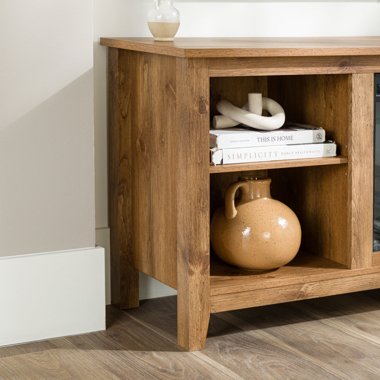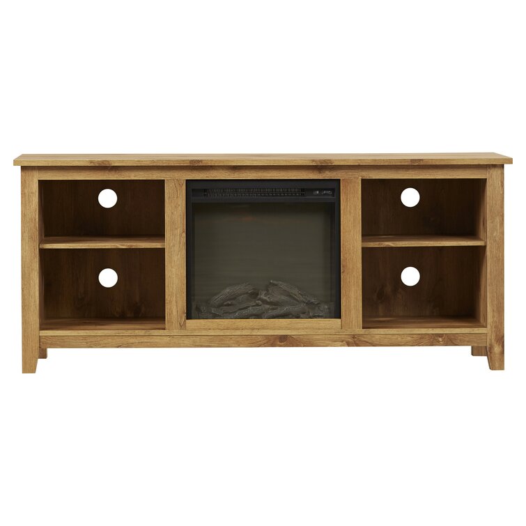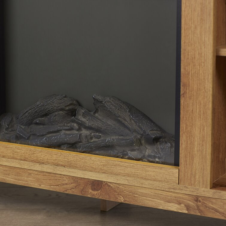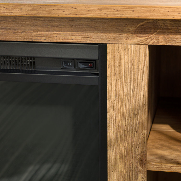 Rochester 48 in. Faux Stone Electric Fireplace TV Stand in Whiskey Maple