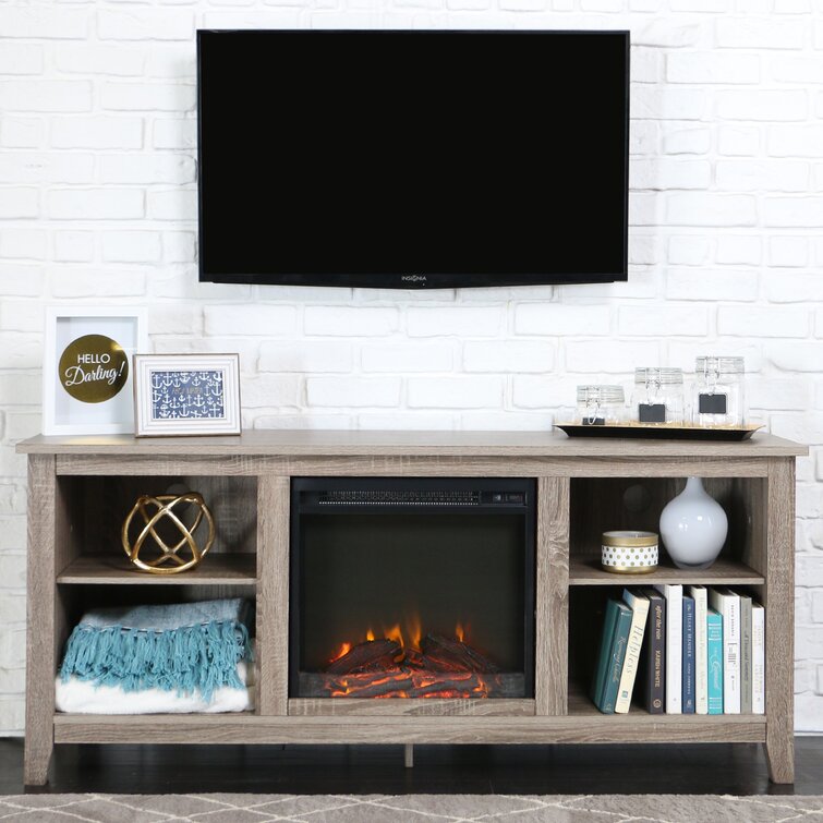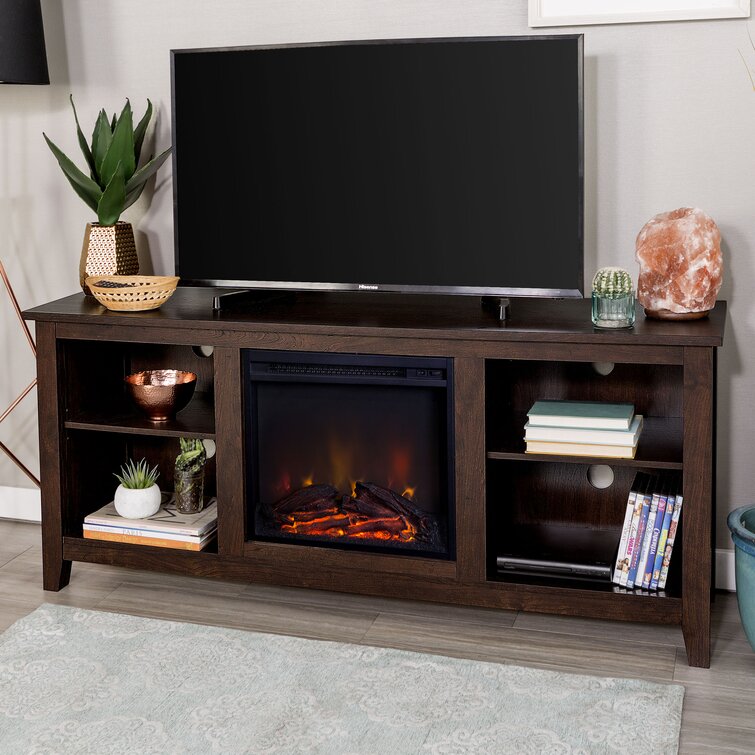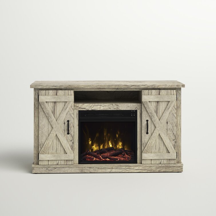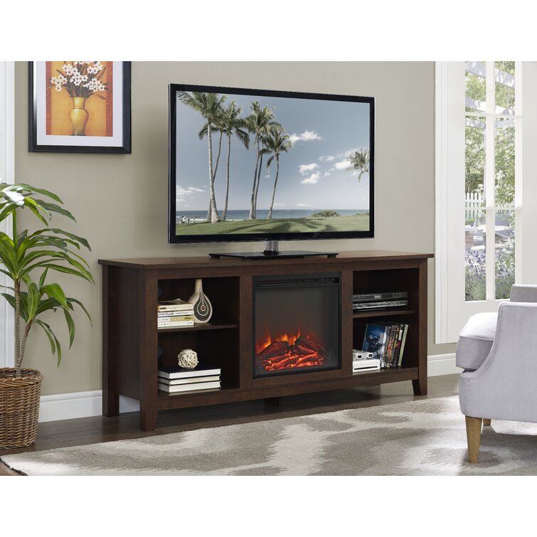Auburn 45.5 in. Faux Stone Media Electric Fireplace TV Stand in Brown Sienna