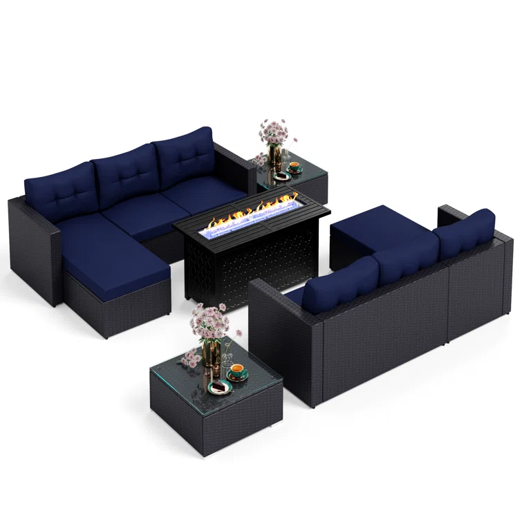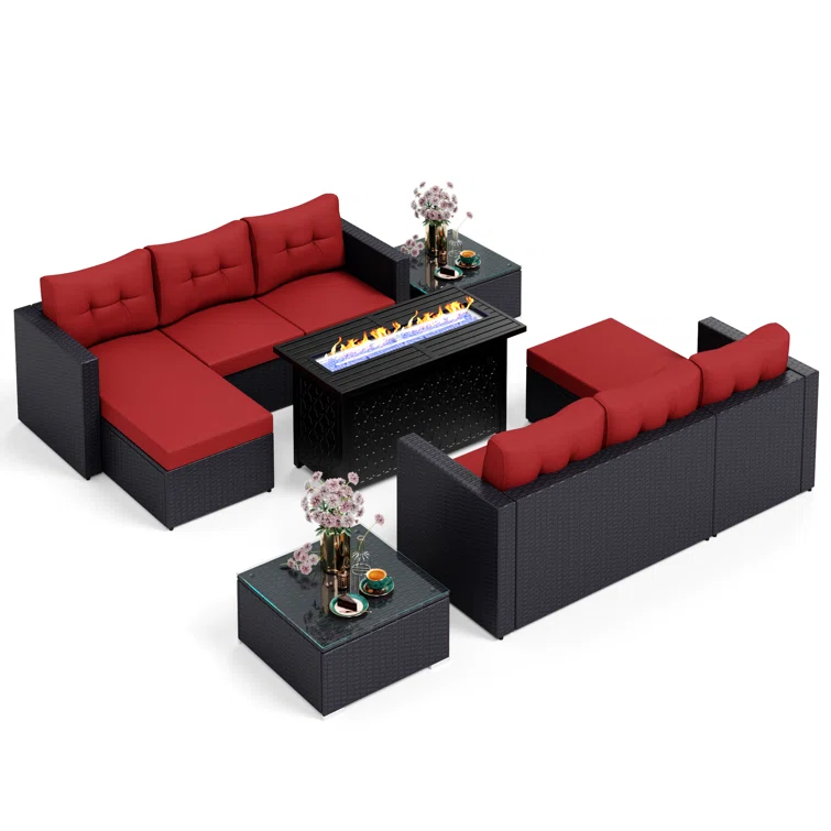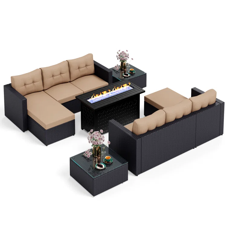 Amjad 8 Piece Rattan Seating Group with Sunbrella Cushions