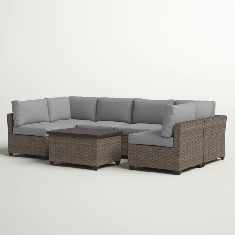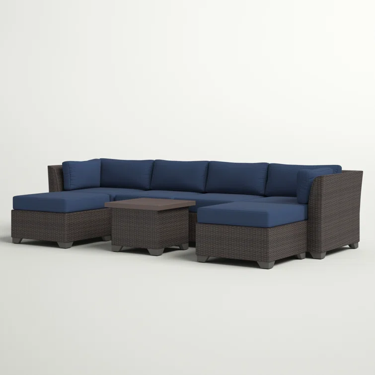 Anden Rattan Wicker Fully Assembled 6 - Person Seating Group with Sunbrella Cushions