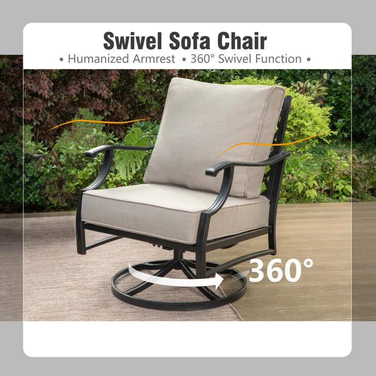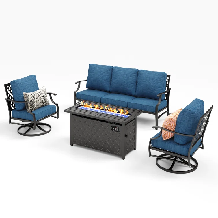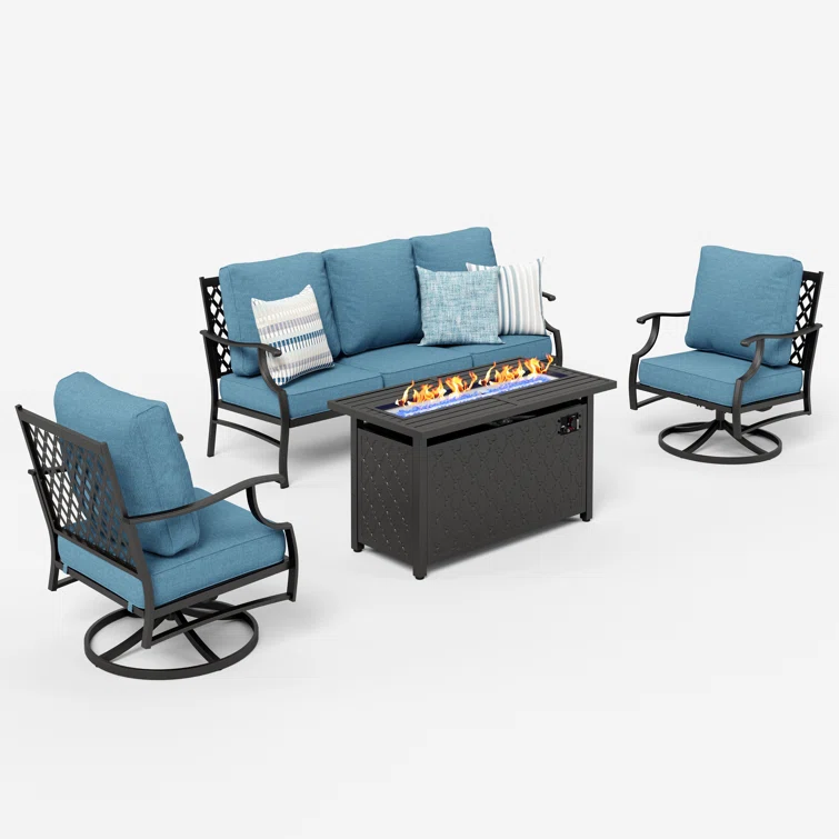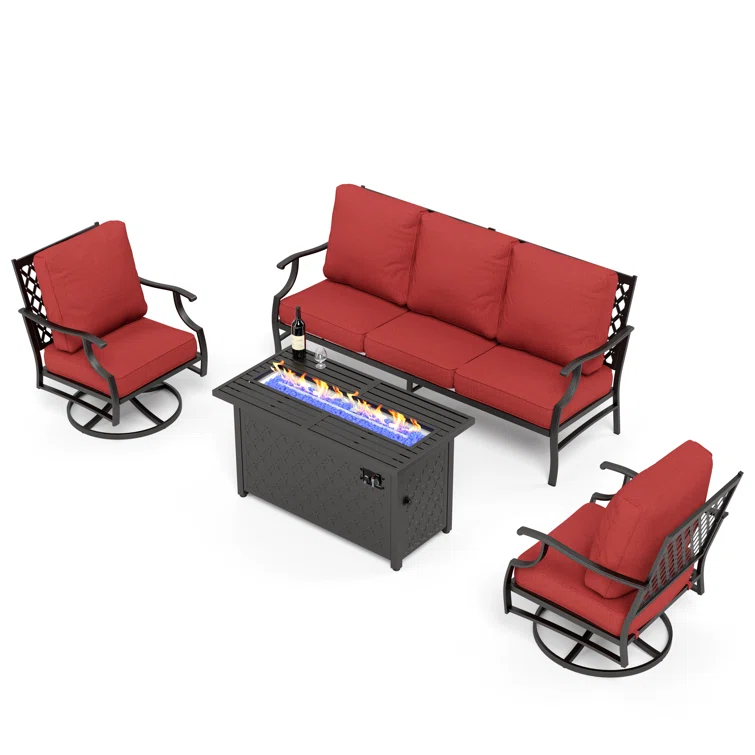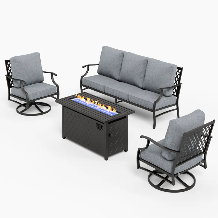 Asfand 5 - Person Patio Conversation Set with Swivel Lounge Chairs & Firepit Table