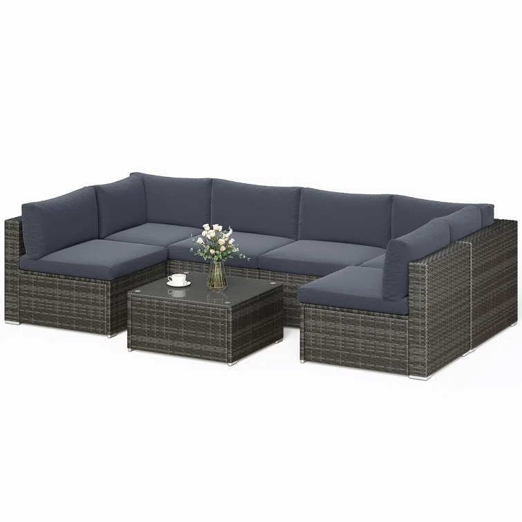 Dayse Fully Assembled 6 - Person Seating Group with Cushions |All-weather wicker sectional