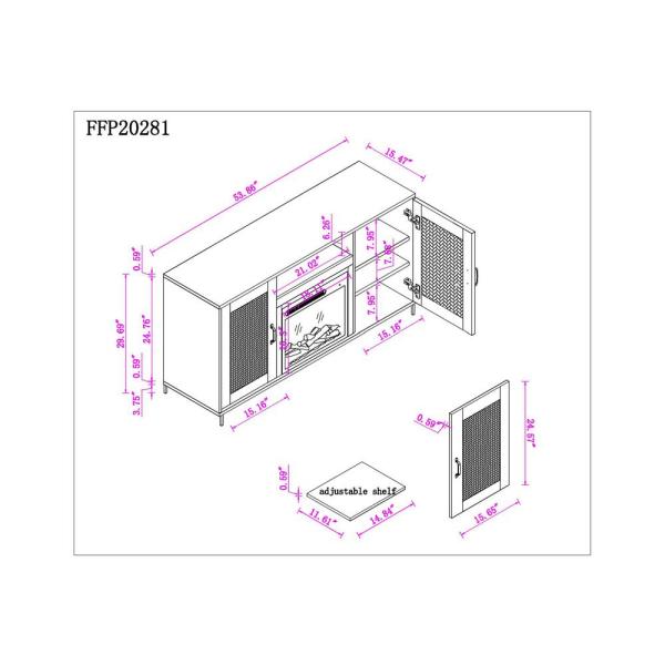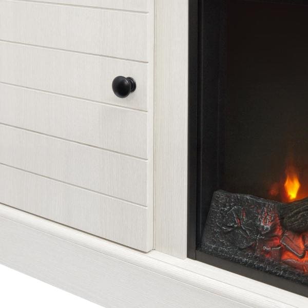54 in. Saw Cut-Off White TV Stand for TVs up to 60 in. with Electric Fireplace