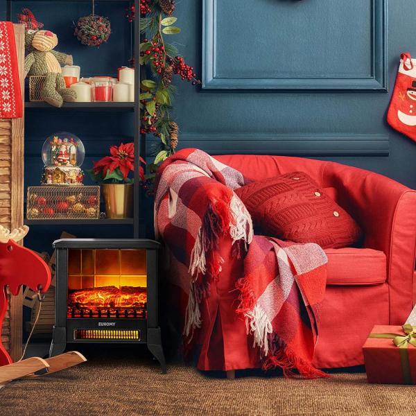 Euyhomy Freestanding Wooden Smart Electric Fireplace TV Stand in Black