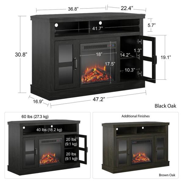 Helmsdale 47.2 in. Electric Corner TV Stand with Fireplace for TVs up to 54 in. Black Oak