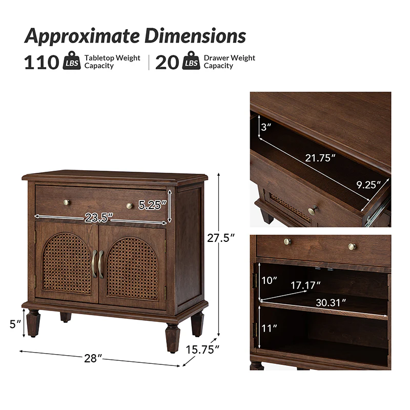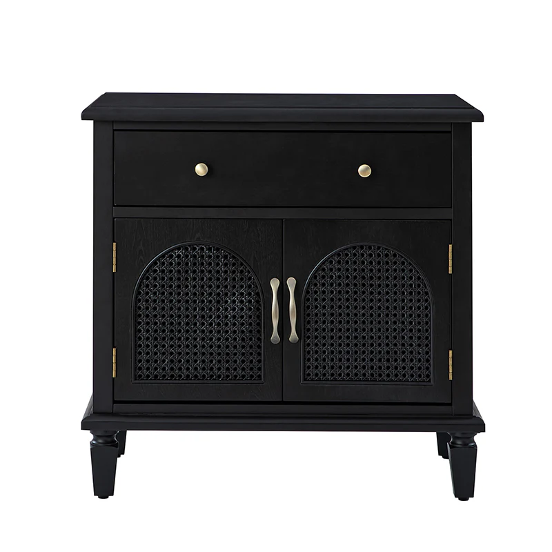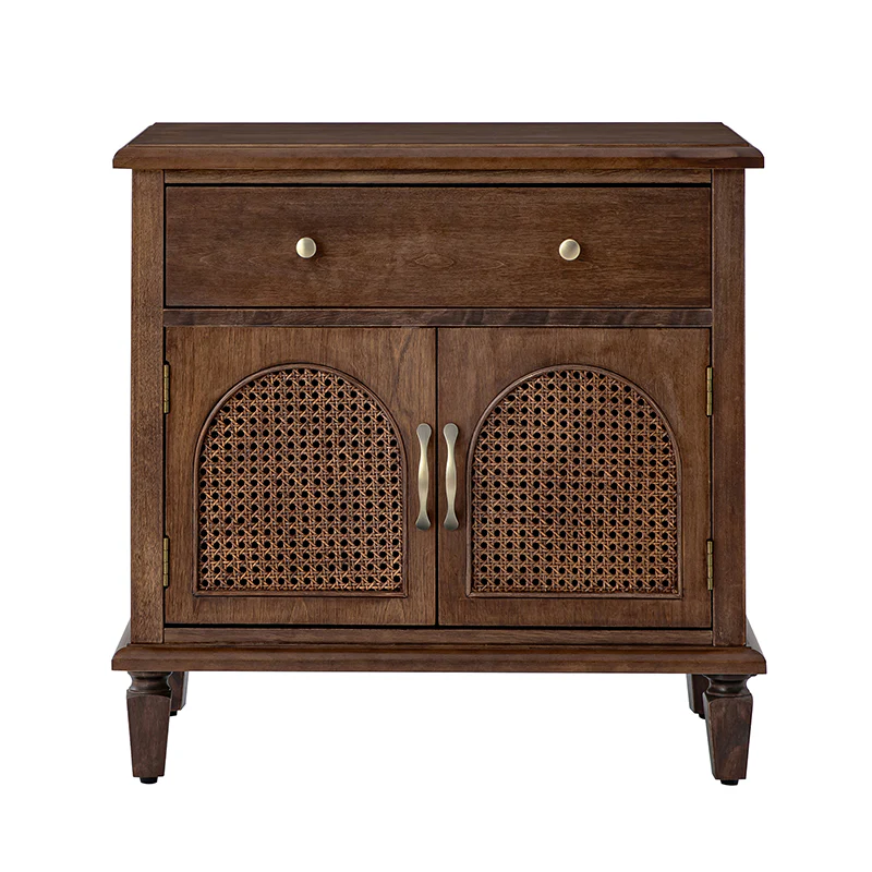 Camilo 27" Tall Arched Faux Rattan Nightstand With Built-In Outlets