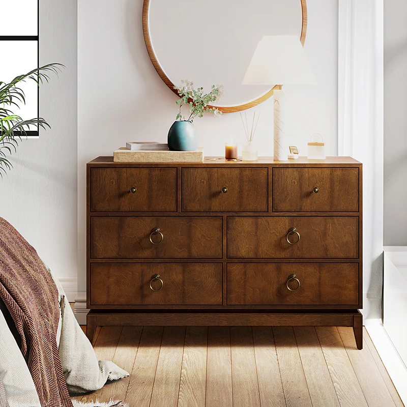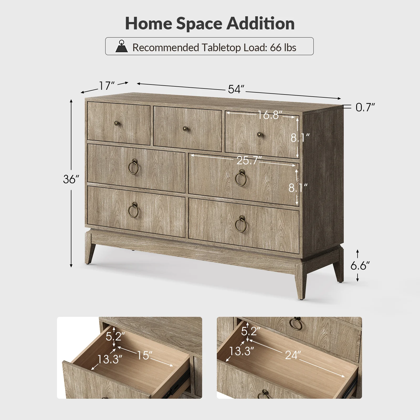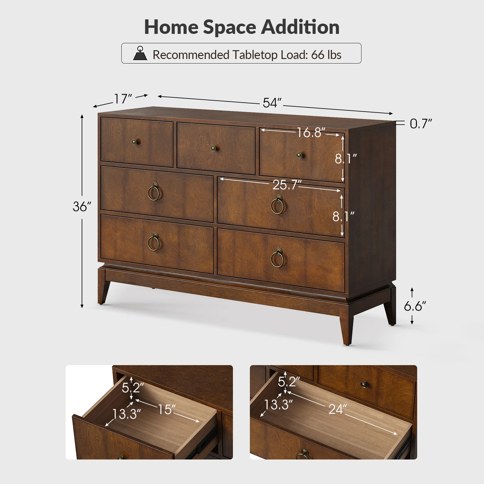 Clemens 54" Wide 7 Drawer Mid Century Modern Dresser