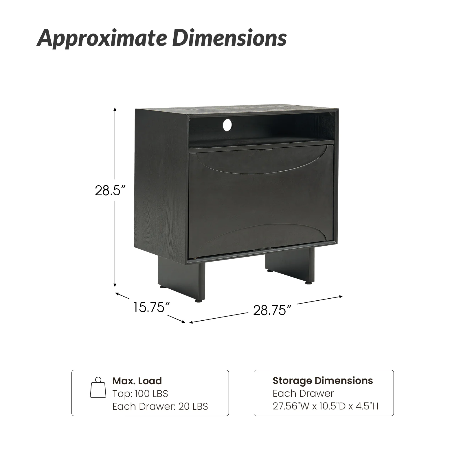 Dan 28" Tall Modern Style Nightstand with Built-In Outlets