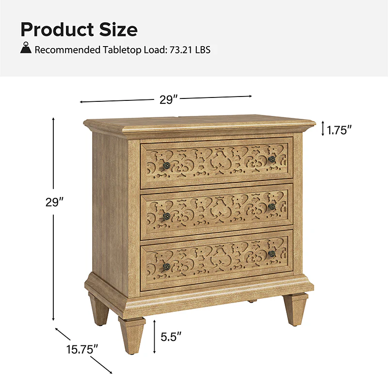 Colombo 3-Drawer Nightstand with Built-In Outlets
