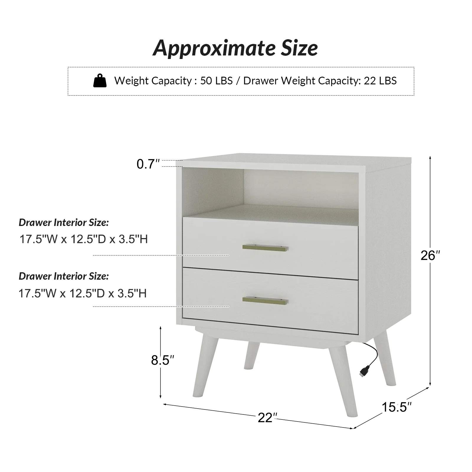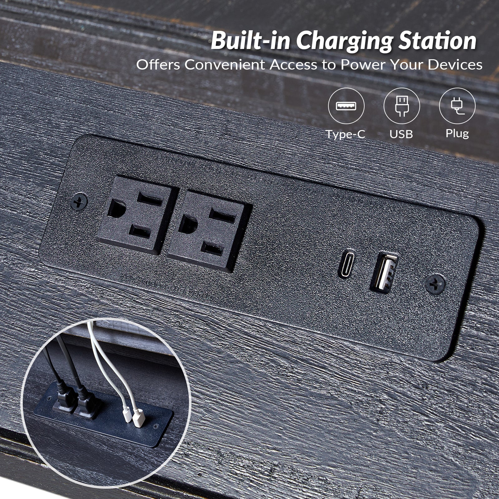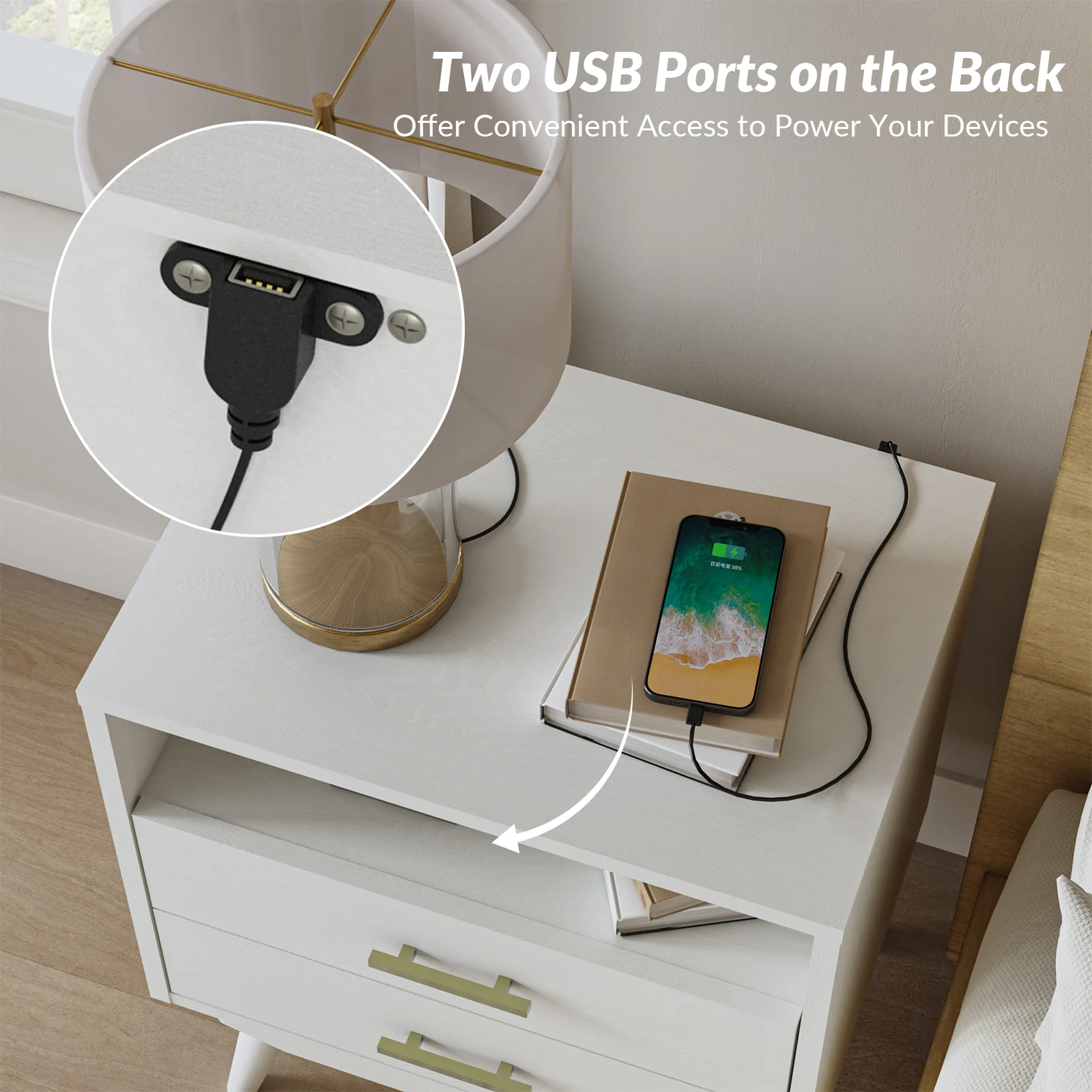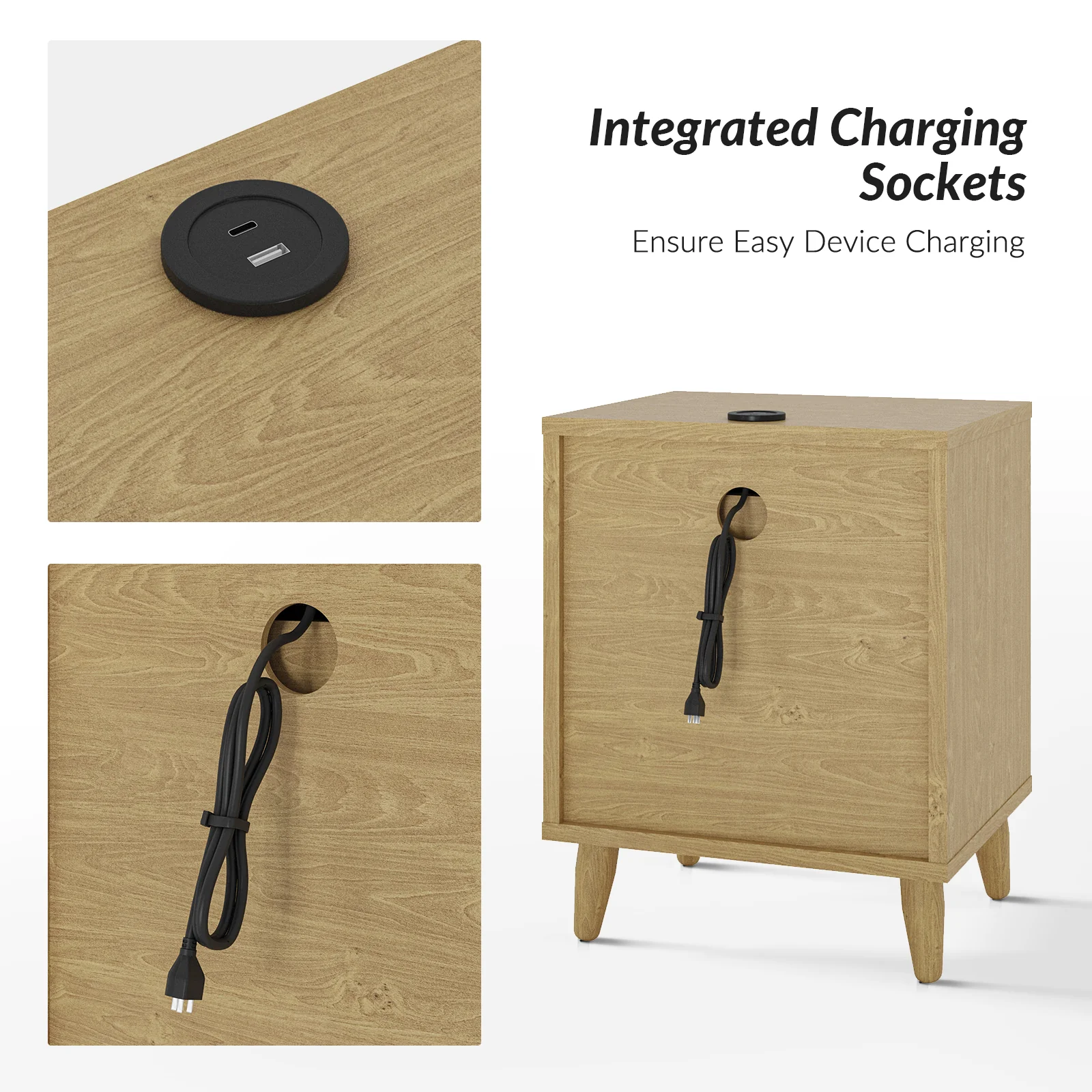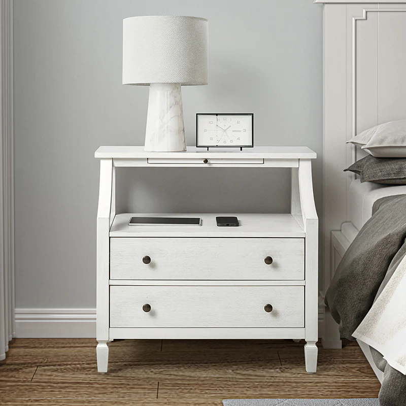 Ira 26" Tall Farmhouse Solid Wood End Table with Built-in Charging Outlets