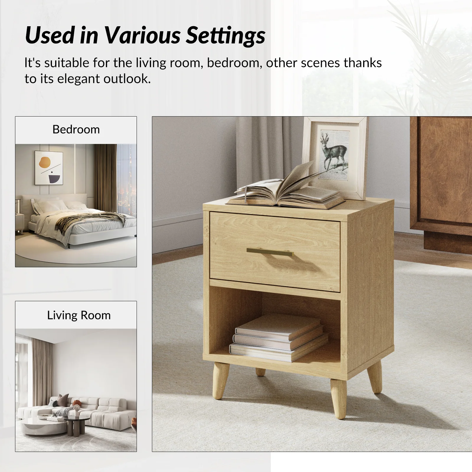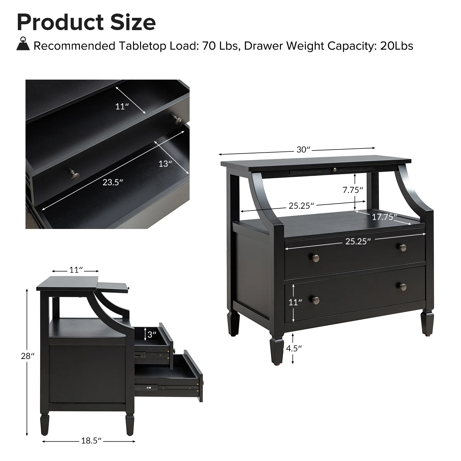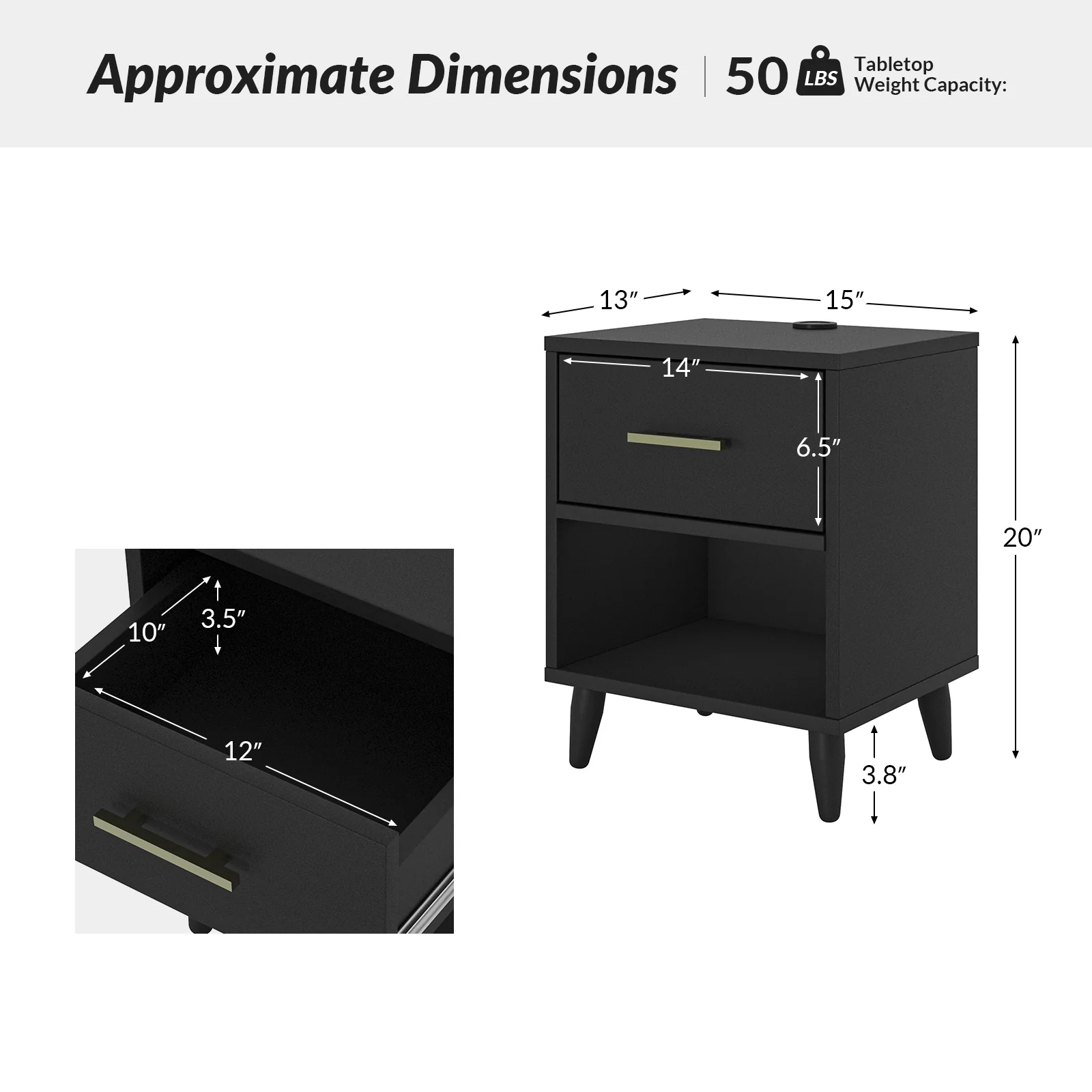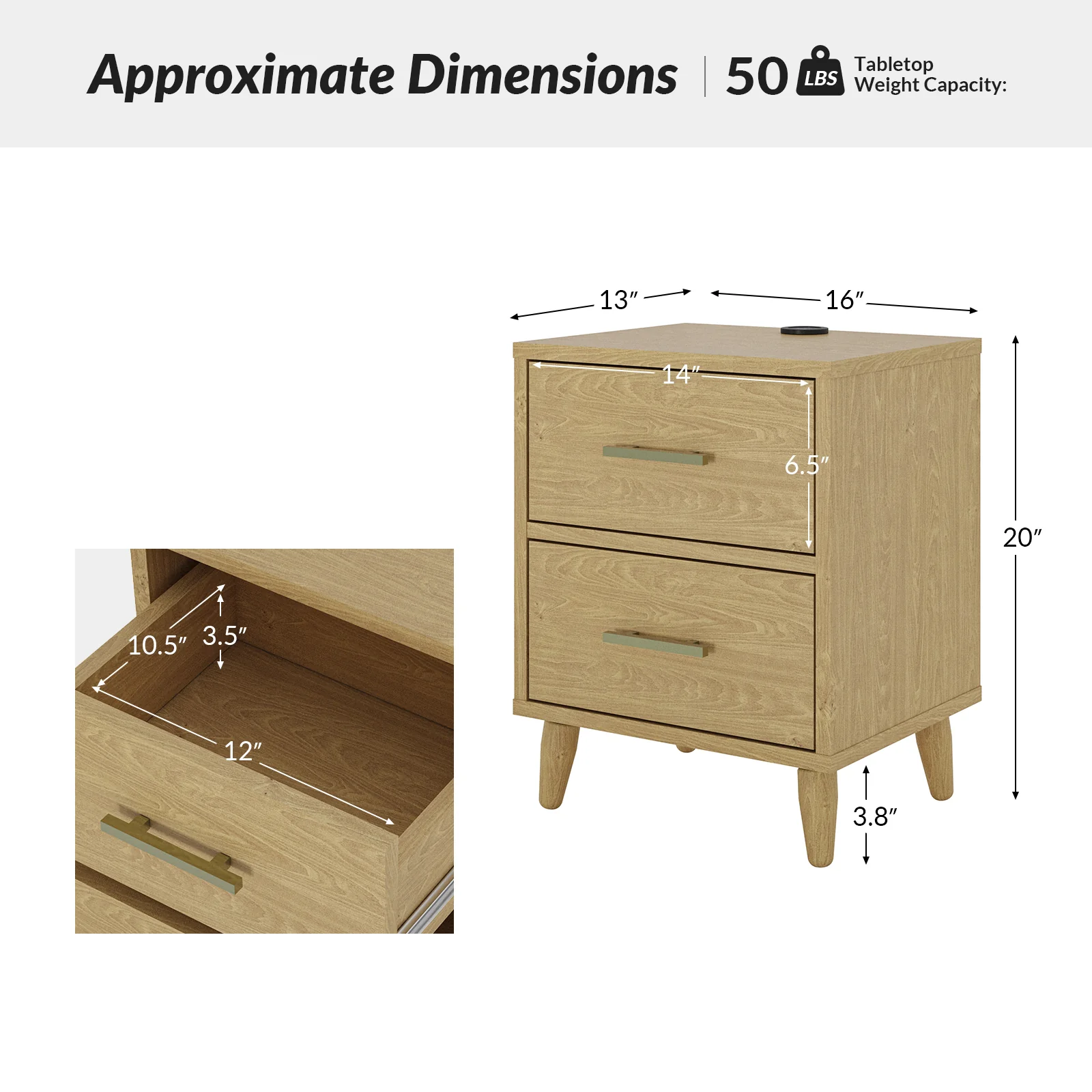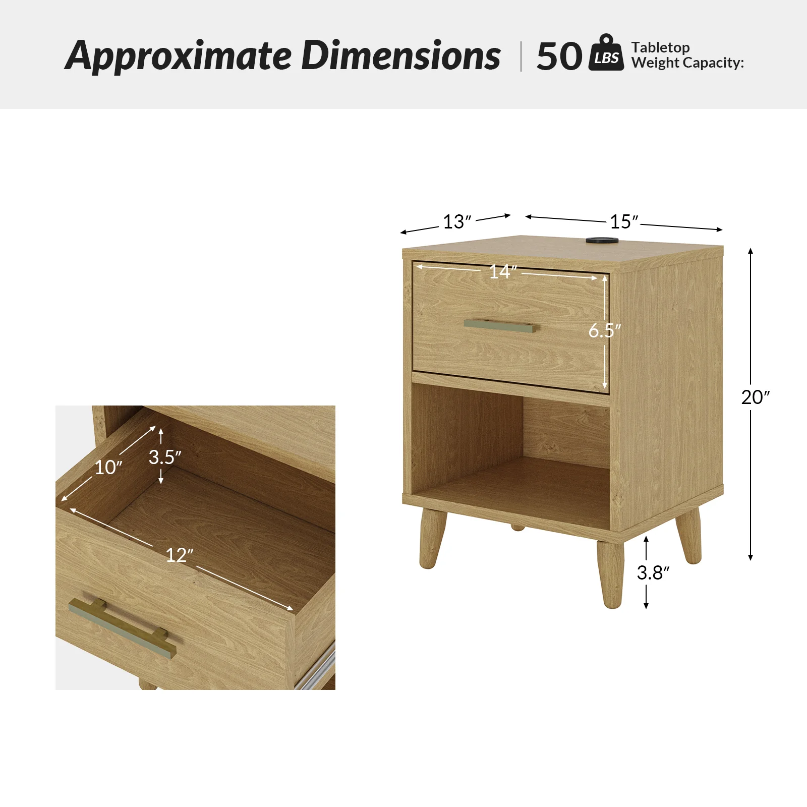 Ira 26" Tall Farmhouse Solid Wood End Table with Built-in Charging Outlets