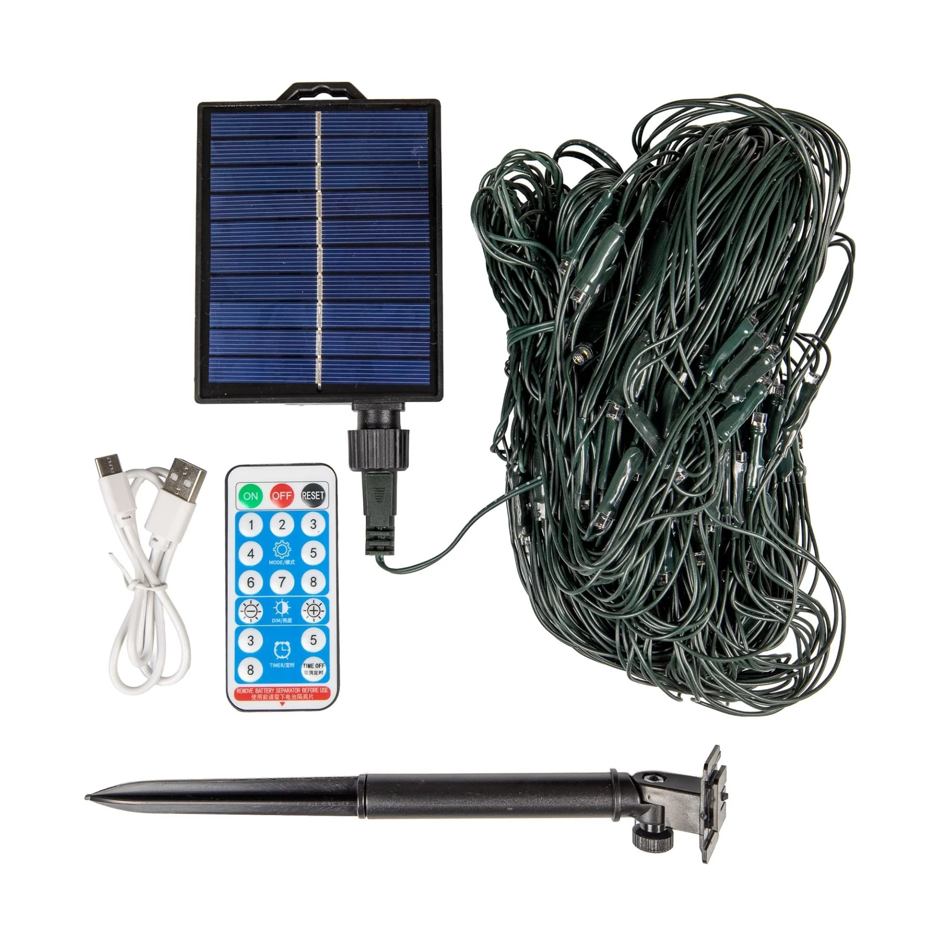 200 Light Warm White LED Solar Net Light, 8 Modes, Timer, Dimming, Remote Included - Warm White