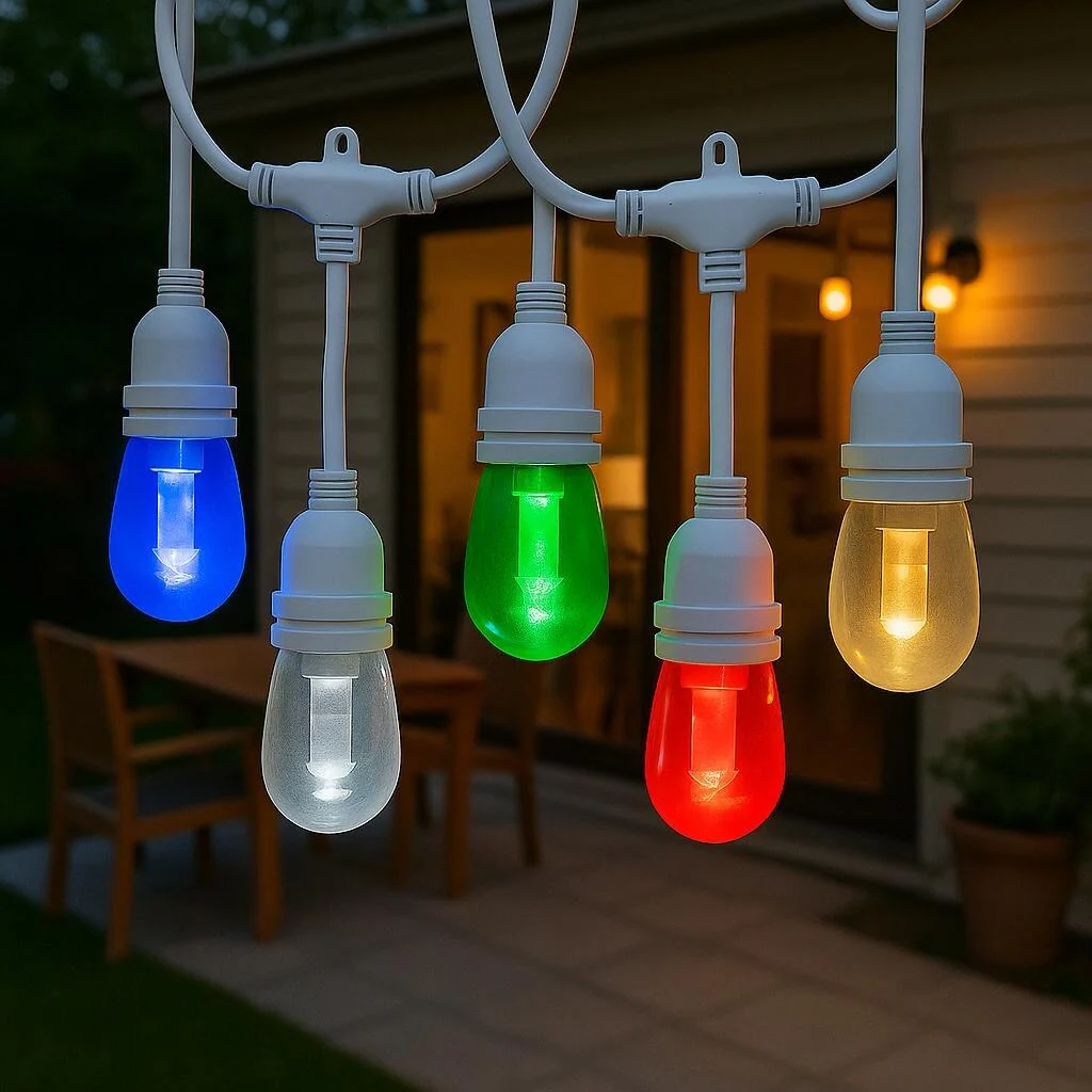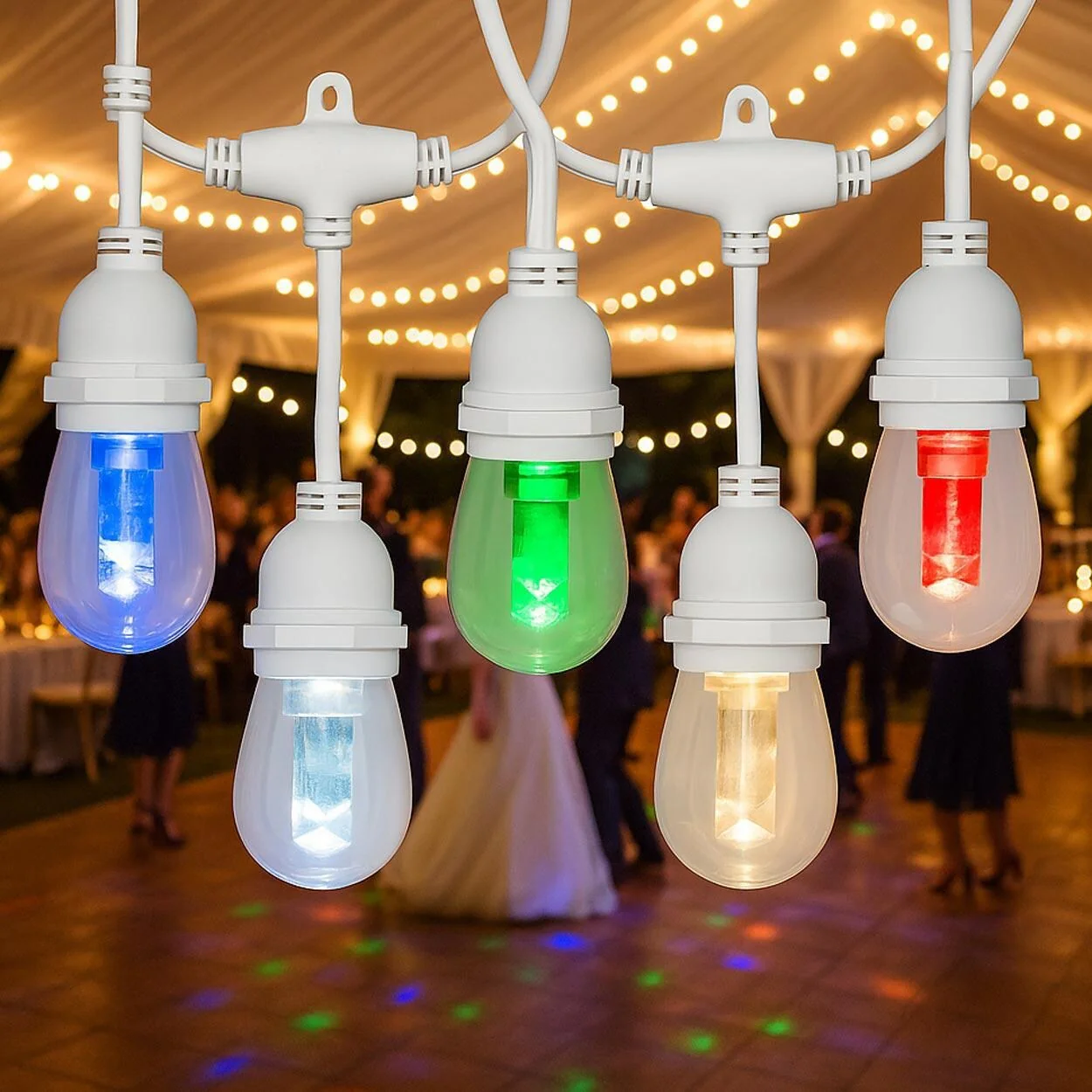 24FT S14 RGB+WW LED Color Changing Christmas String Light Set, White Wire - WHITE WIRE
