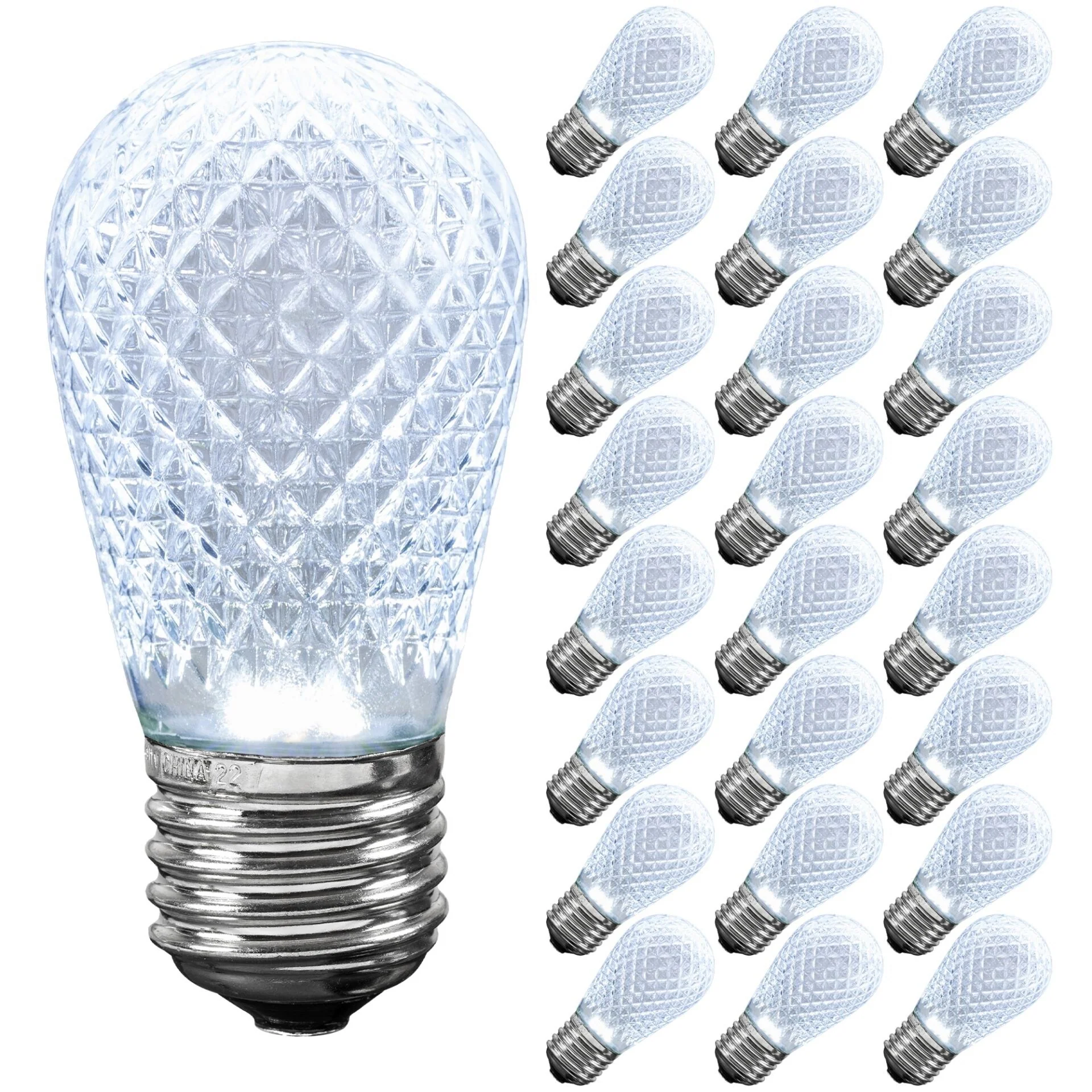 25 Pack LED S14 Faceted Outdoor Patio Edison Replacement Bulbs, E26 Base