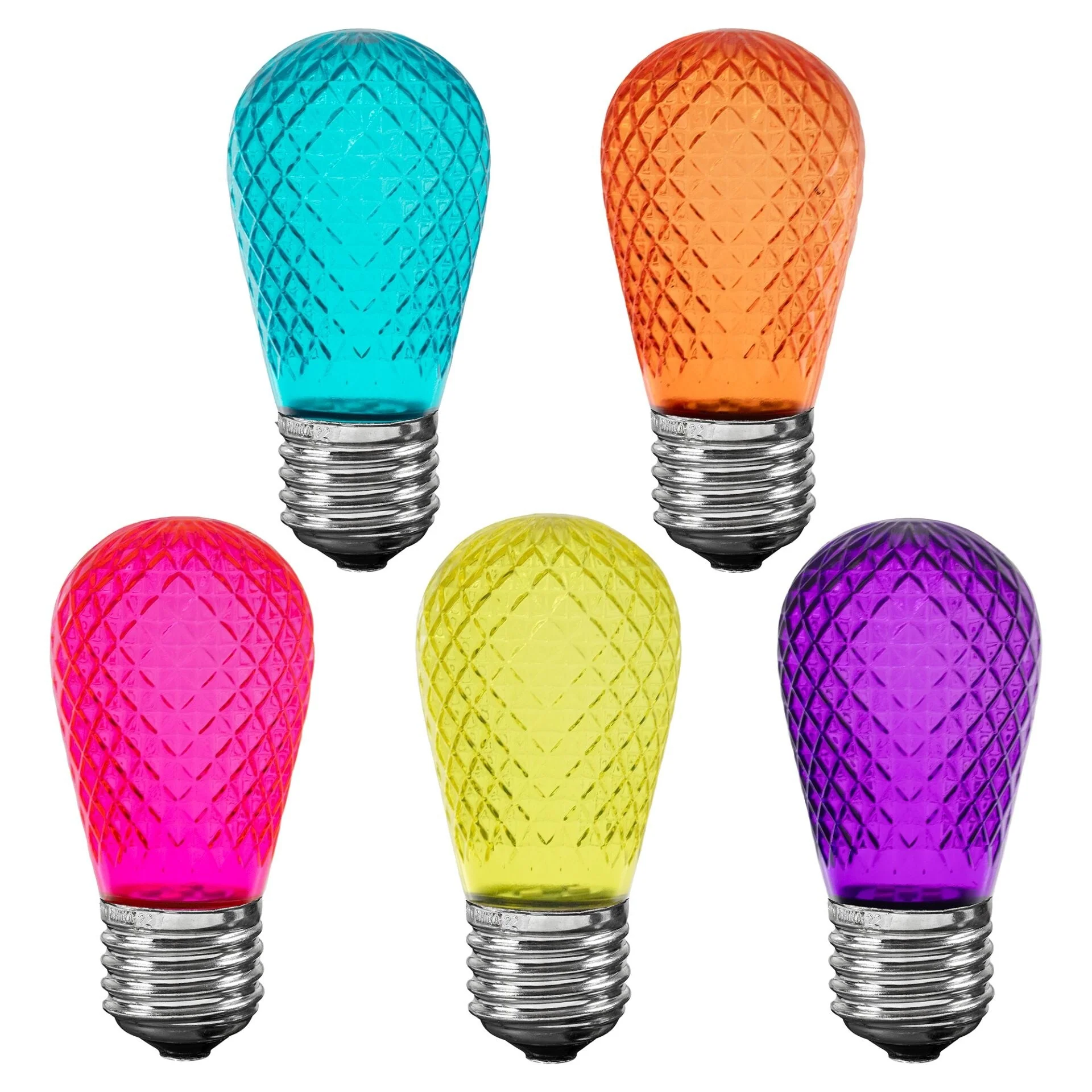 25 Pack LED S14 Faceted Outdoor Patio Edison Replacement Bulbs, Modern Multicolor - Modern Multicolor