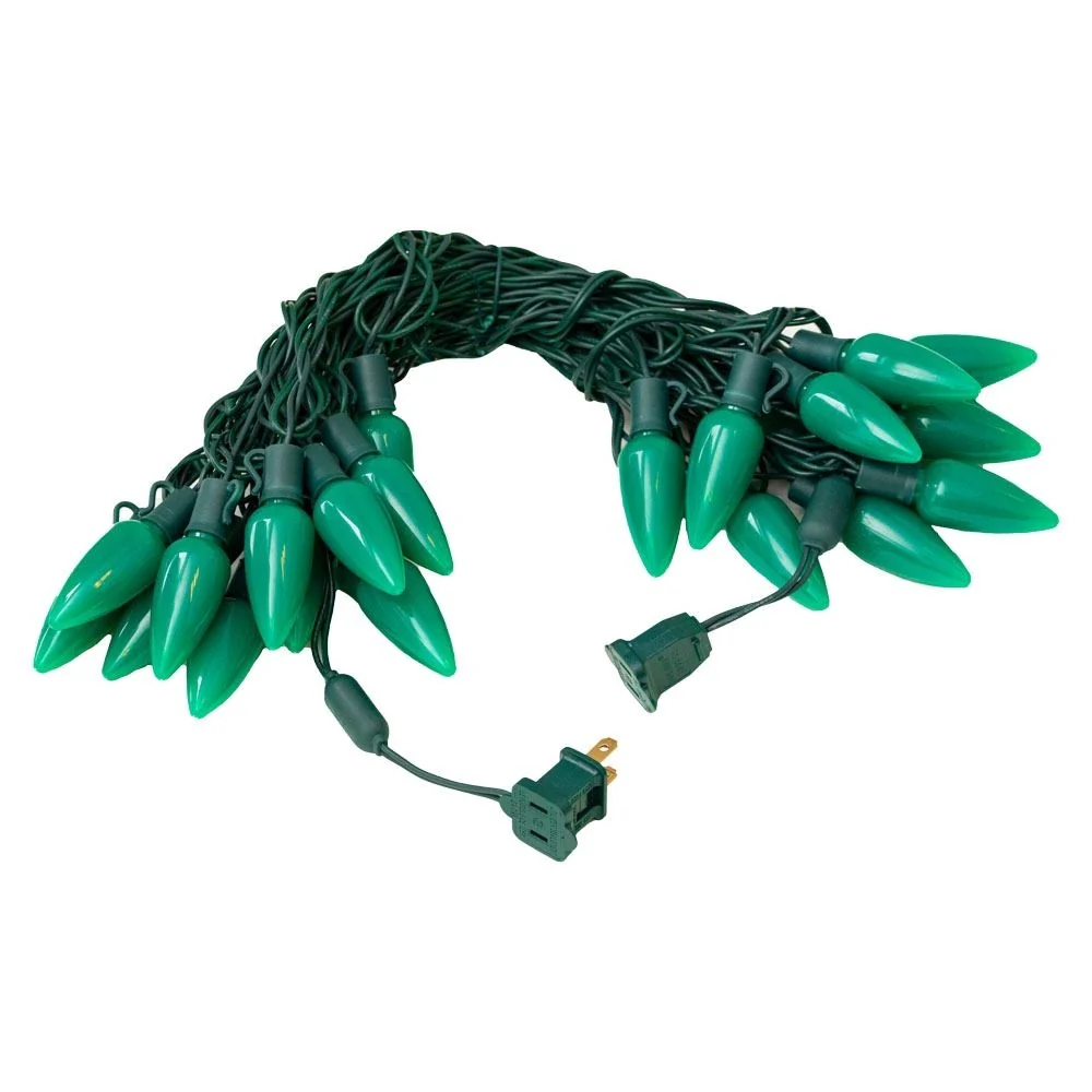 25 Foot C9 LED Ceramic Outdoor Christmas String Light Set, Green, Green Wire