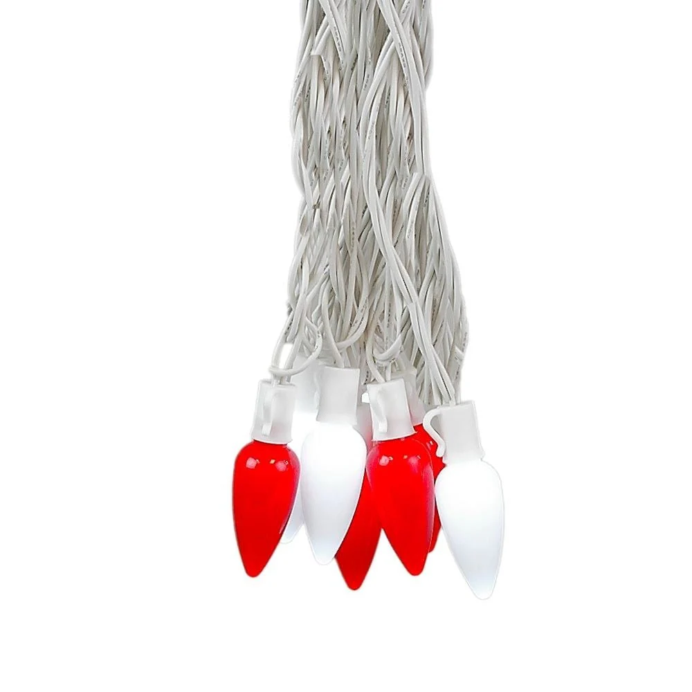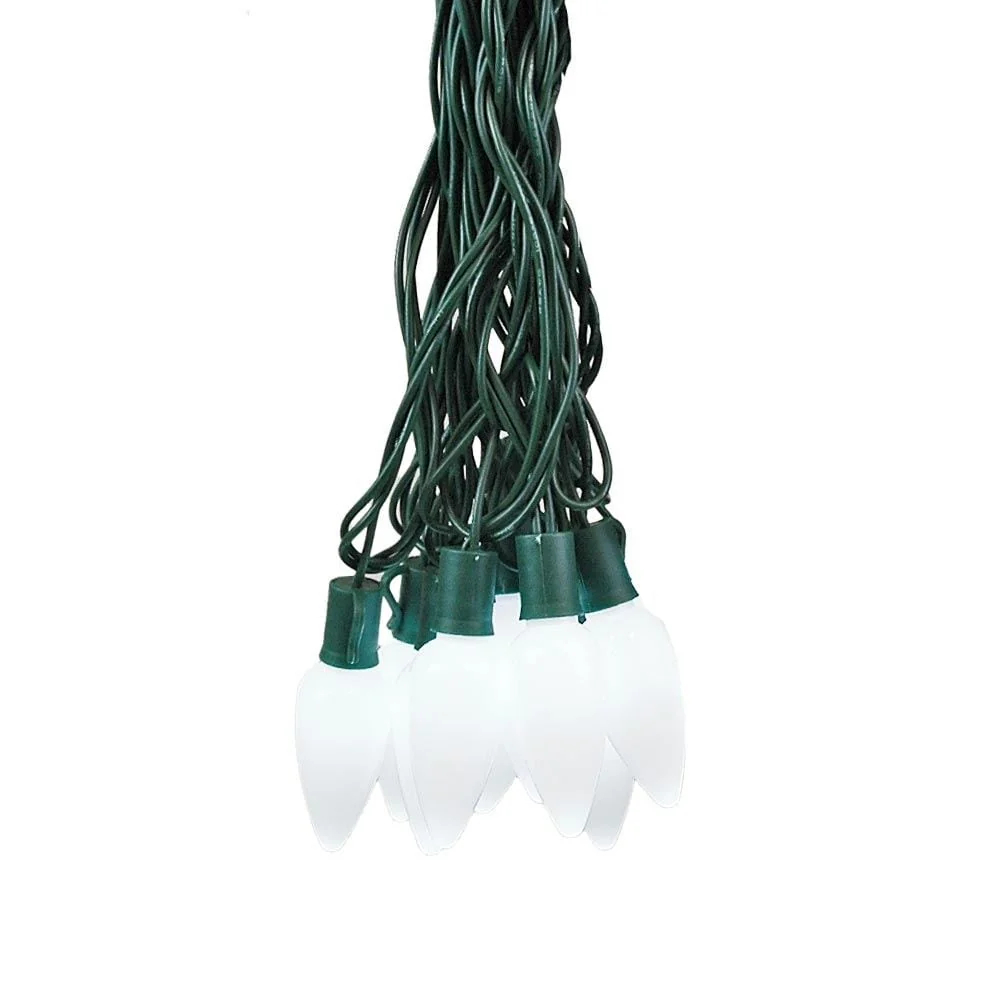 25 Foot C7 LED Ceramic Outdoor Christmas String Light Set, Multicolor, Green Wire