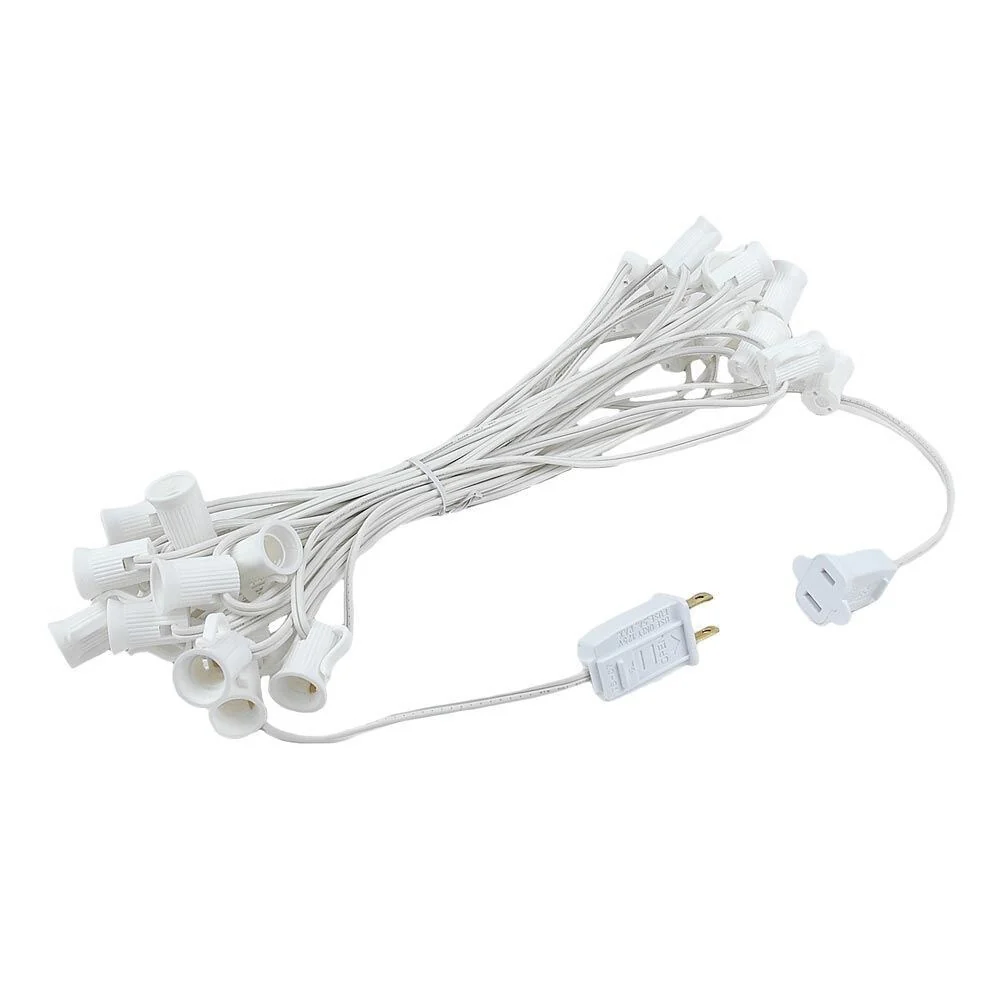 25 Foot C7 Outdoor Patio Christmas Stringer, C7/E12 Base, 12" Space, Green Wire - Small