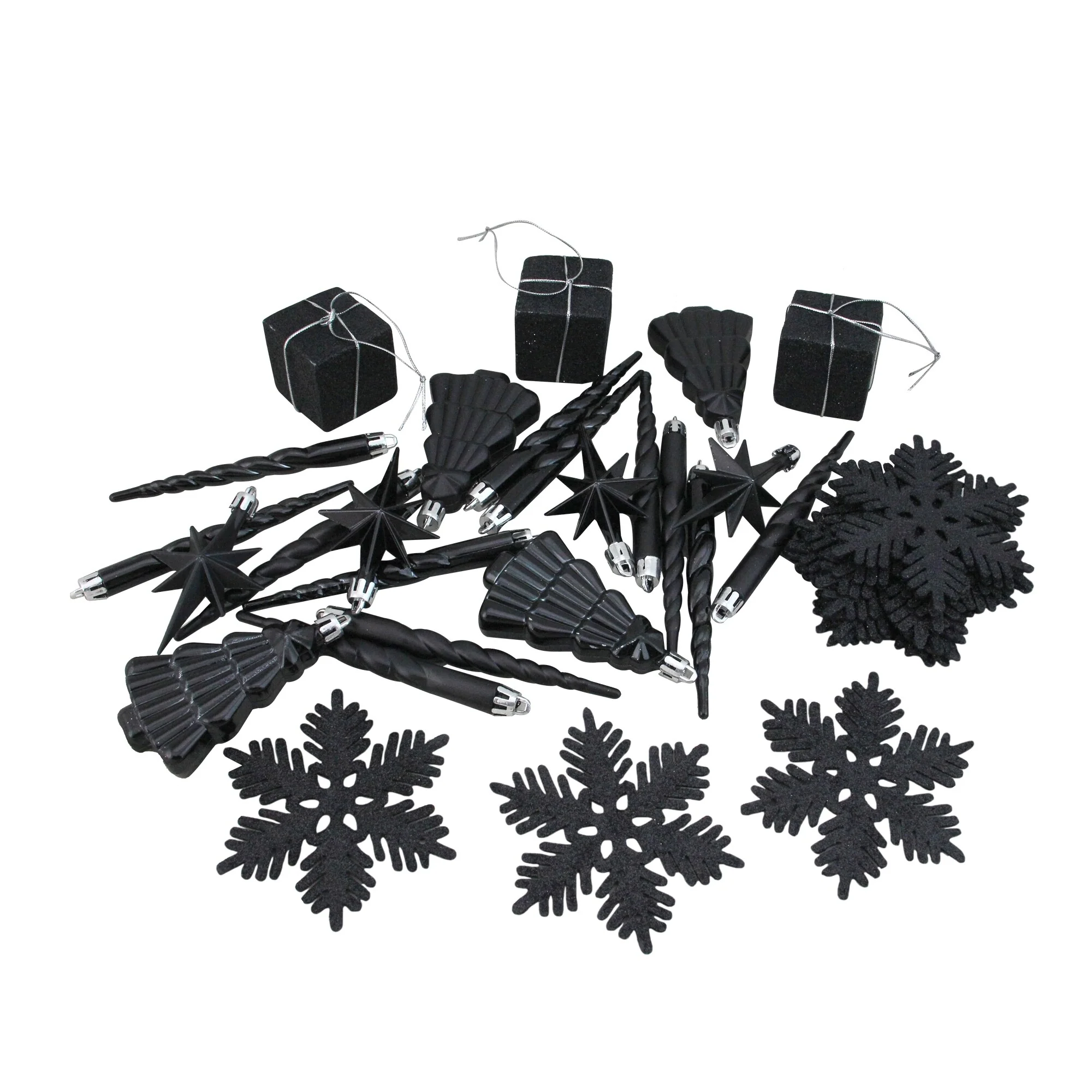 125ct Jet Black Shatterproof 4-Finish Christmas Ornaments 5.5" (140mm).