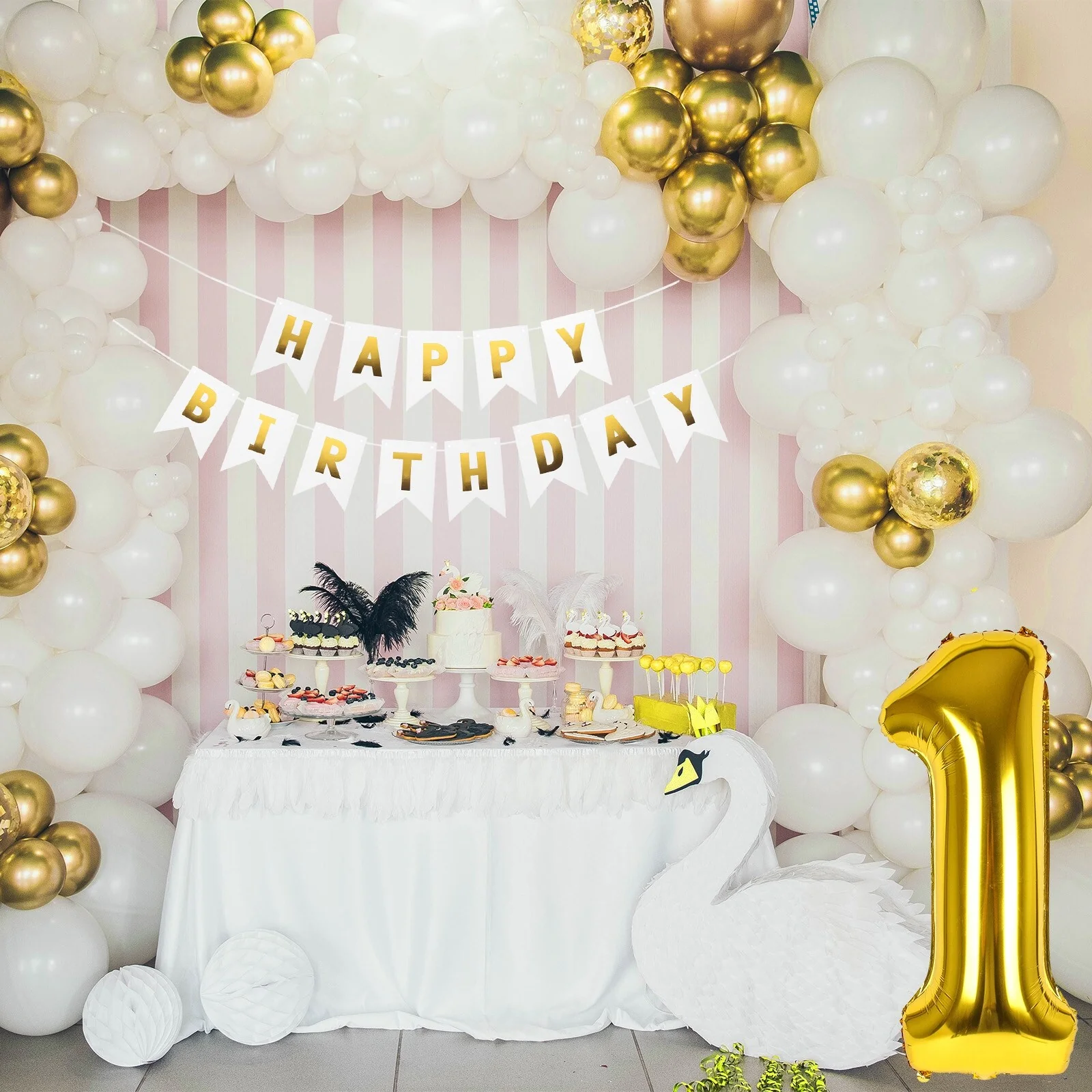 1st Birthday Decorations, 40 Inch Gold Number 1 Balloon for One Year Old Decor - Gold Tone