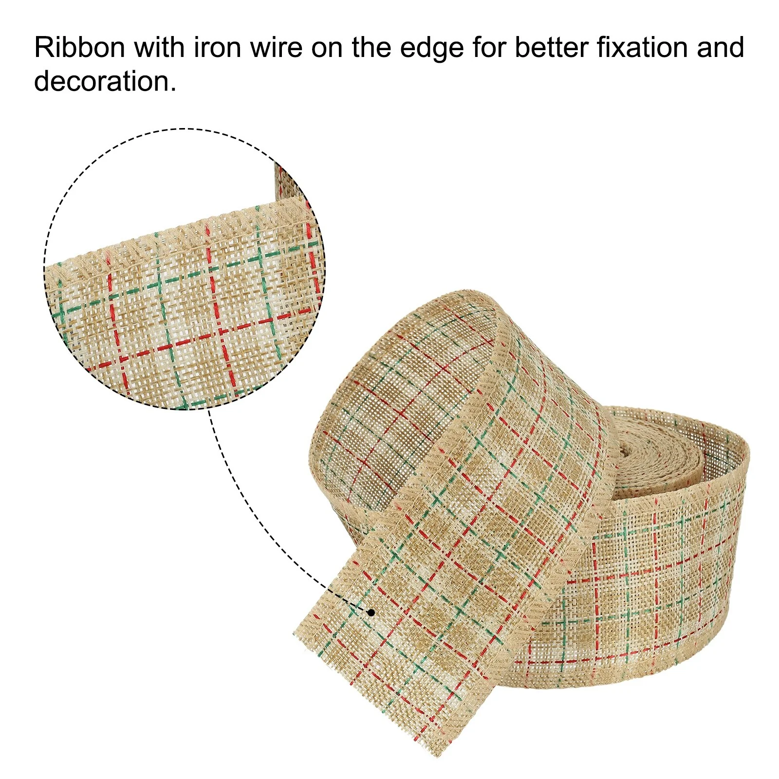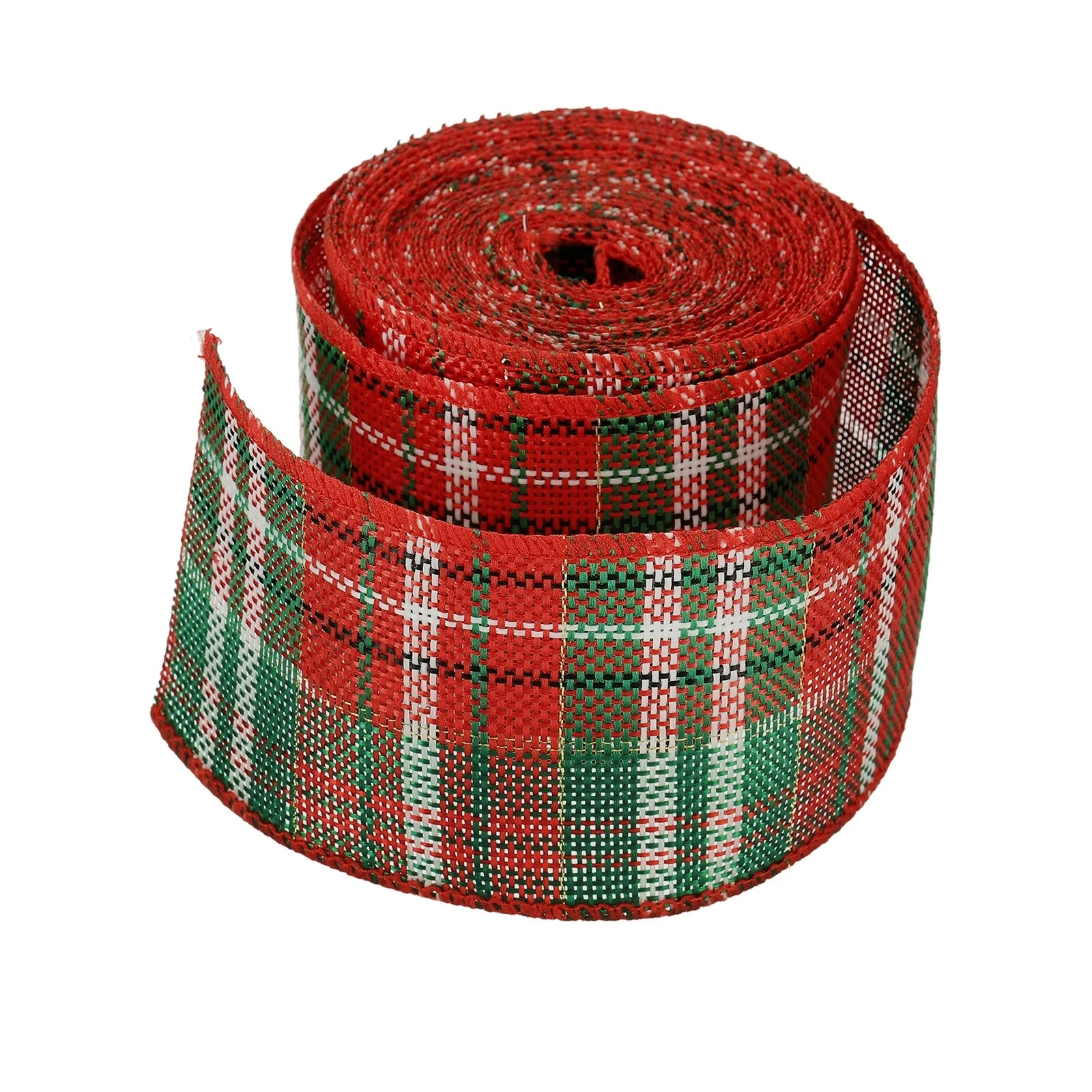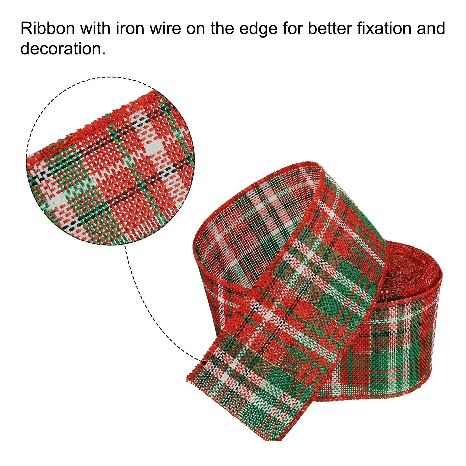 2.36 Inch Wide 6.56 Yards Gingham Ribbon Wired Edge, Green Red White - 2.36 inch x 6.56 Yard (W*L)