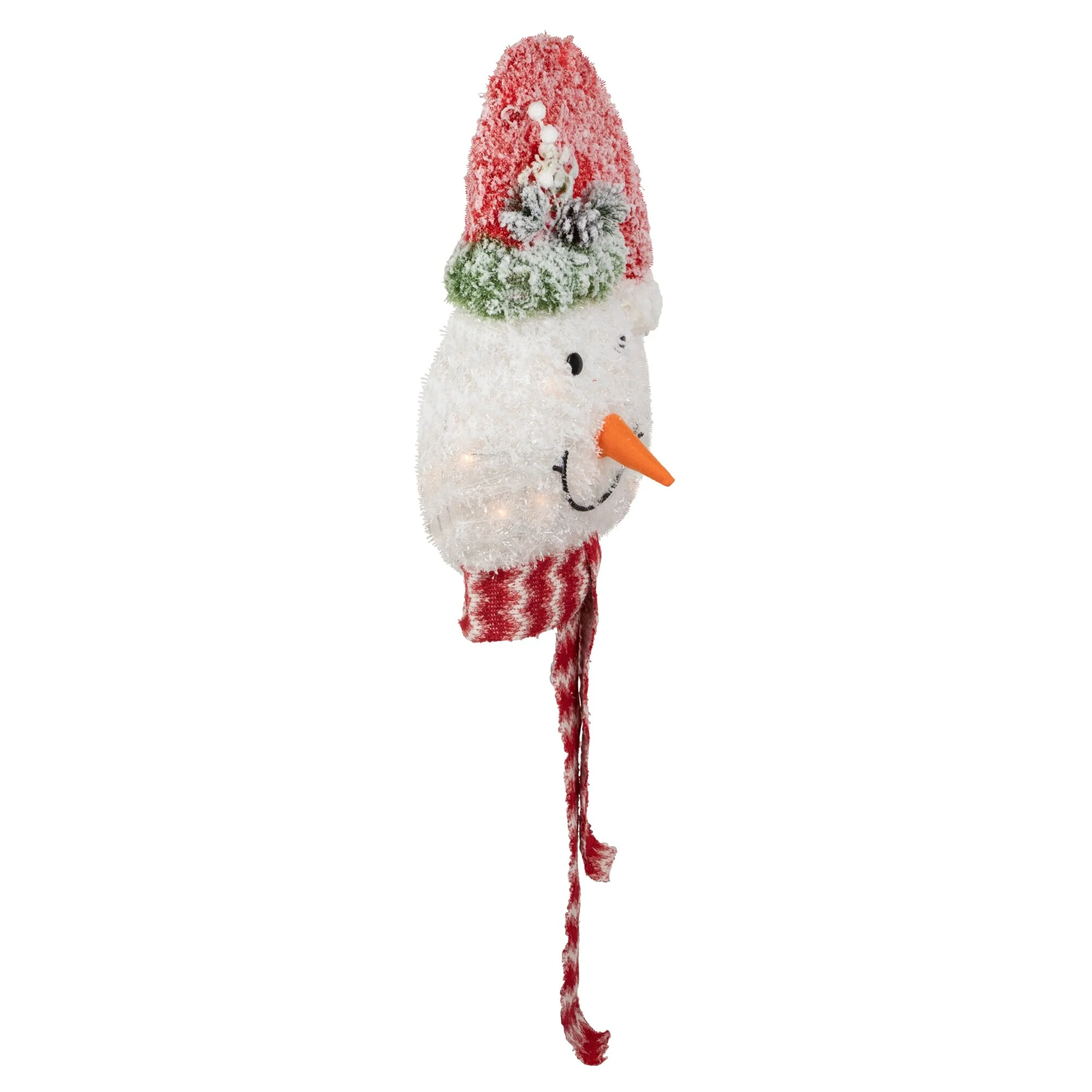 22" Lighted Snowman Wearing a Red Frosted Hat with Pine Christmas Tree Topper