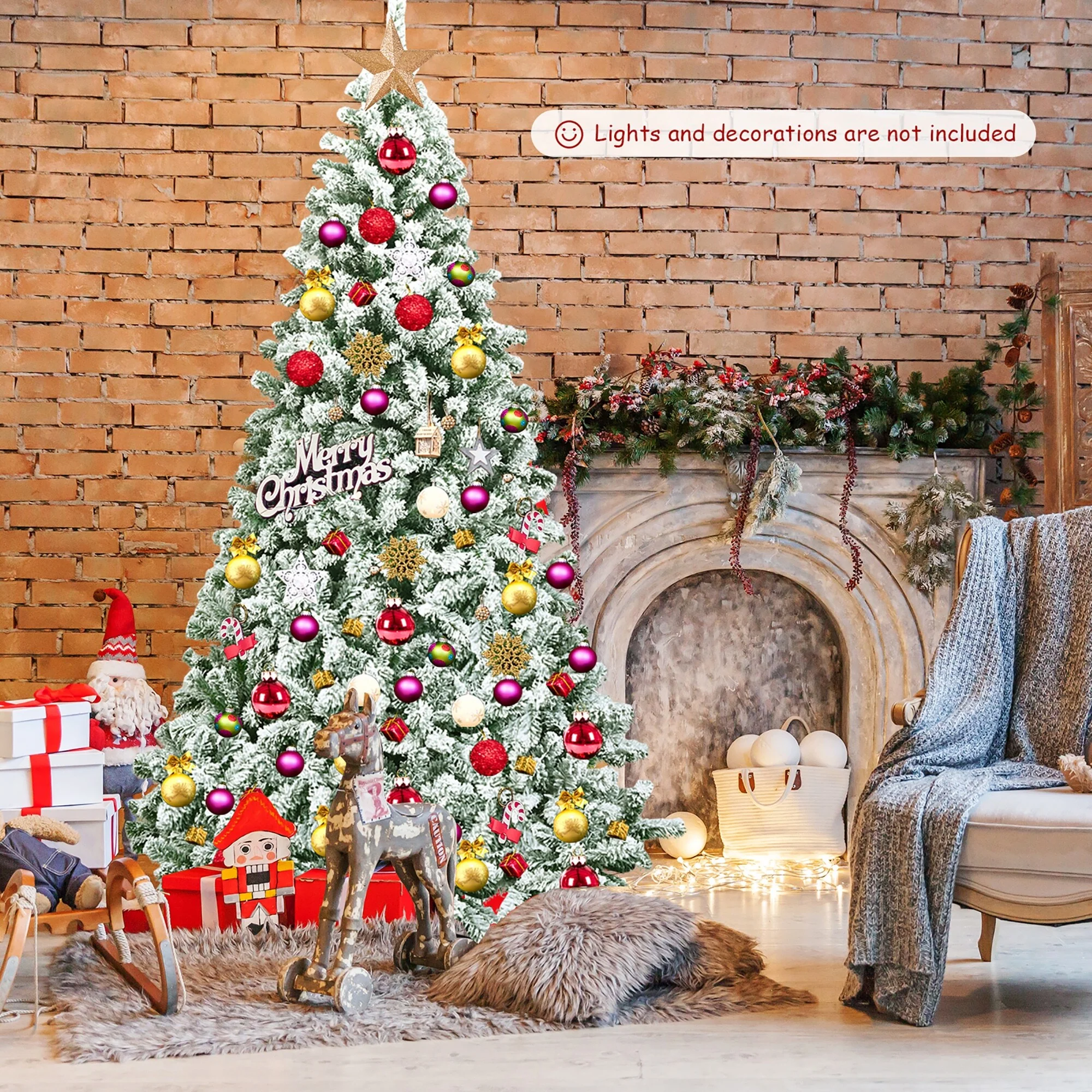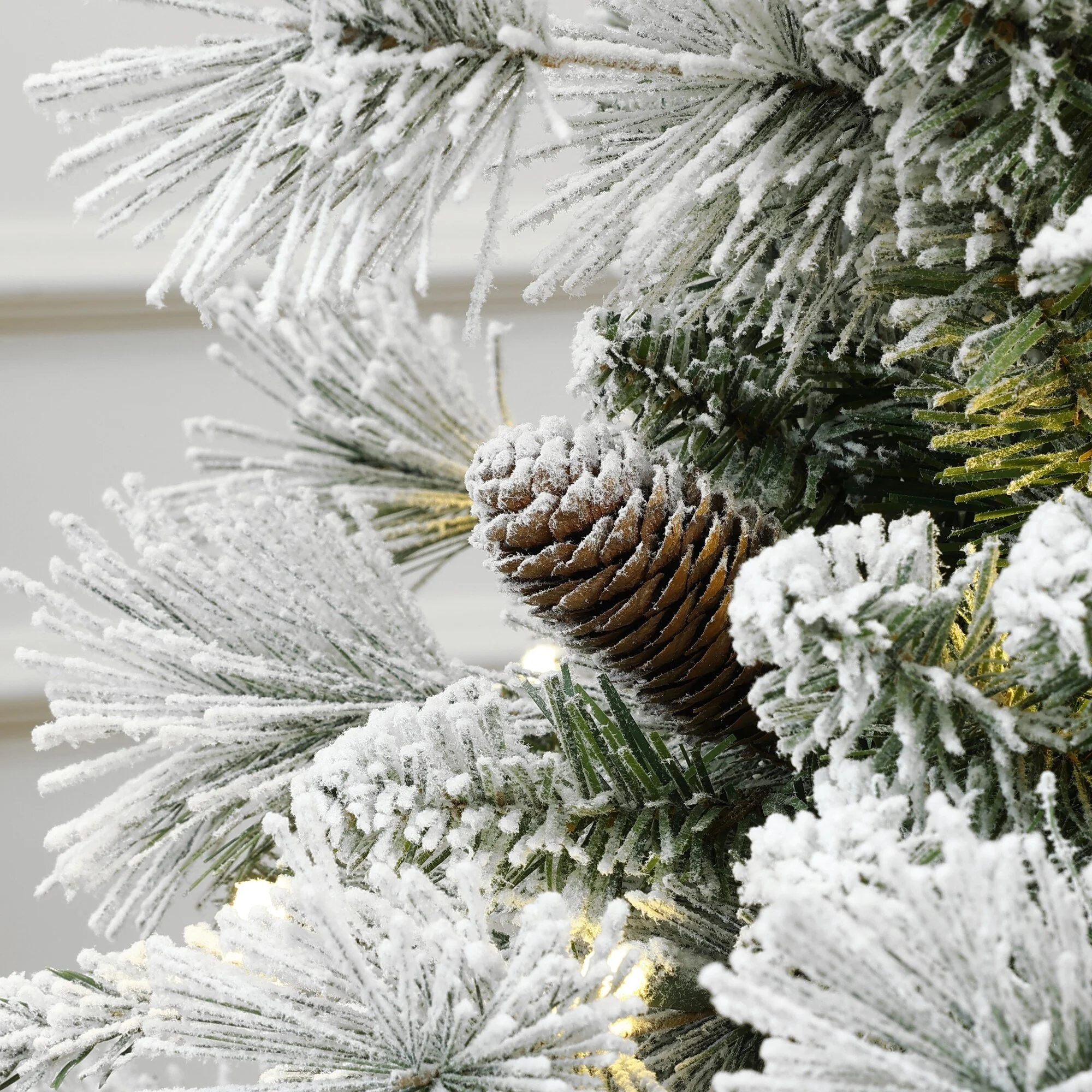 4.5FT Flocked Christmas Tree with 250 UL Lights and 24 Natural Pine Cones-Snowy PVC Tips, 498 Tips, Hinged Structure