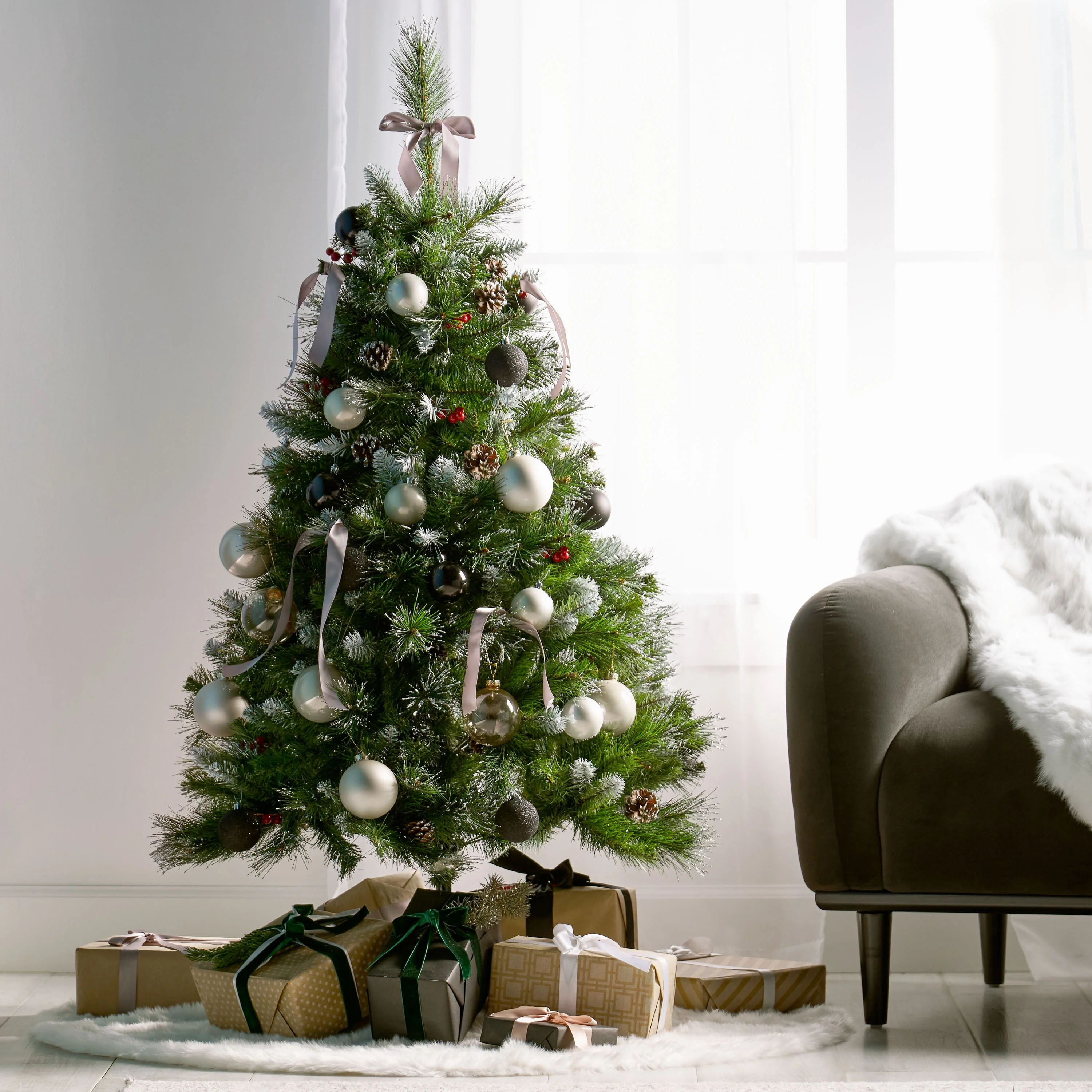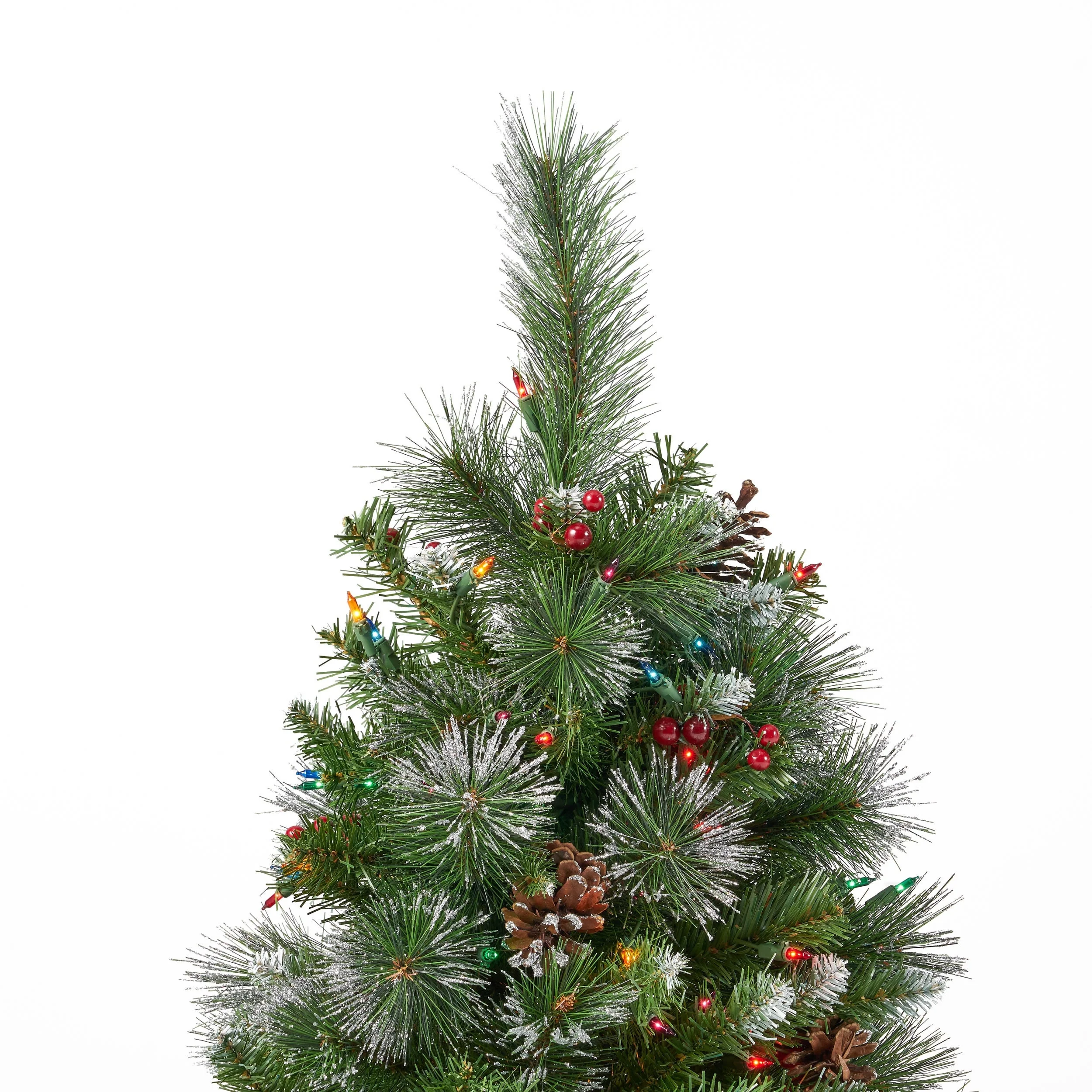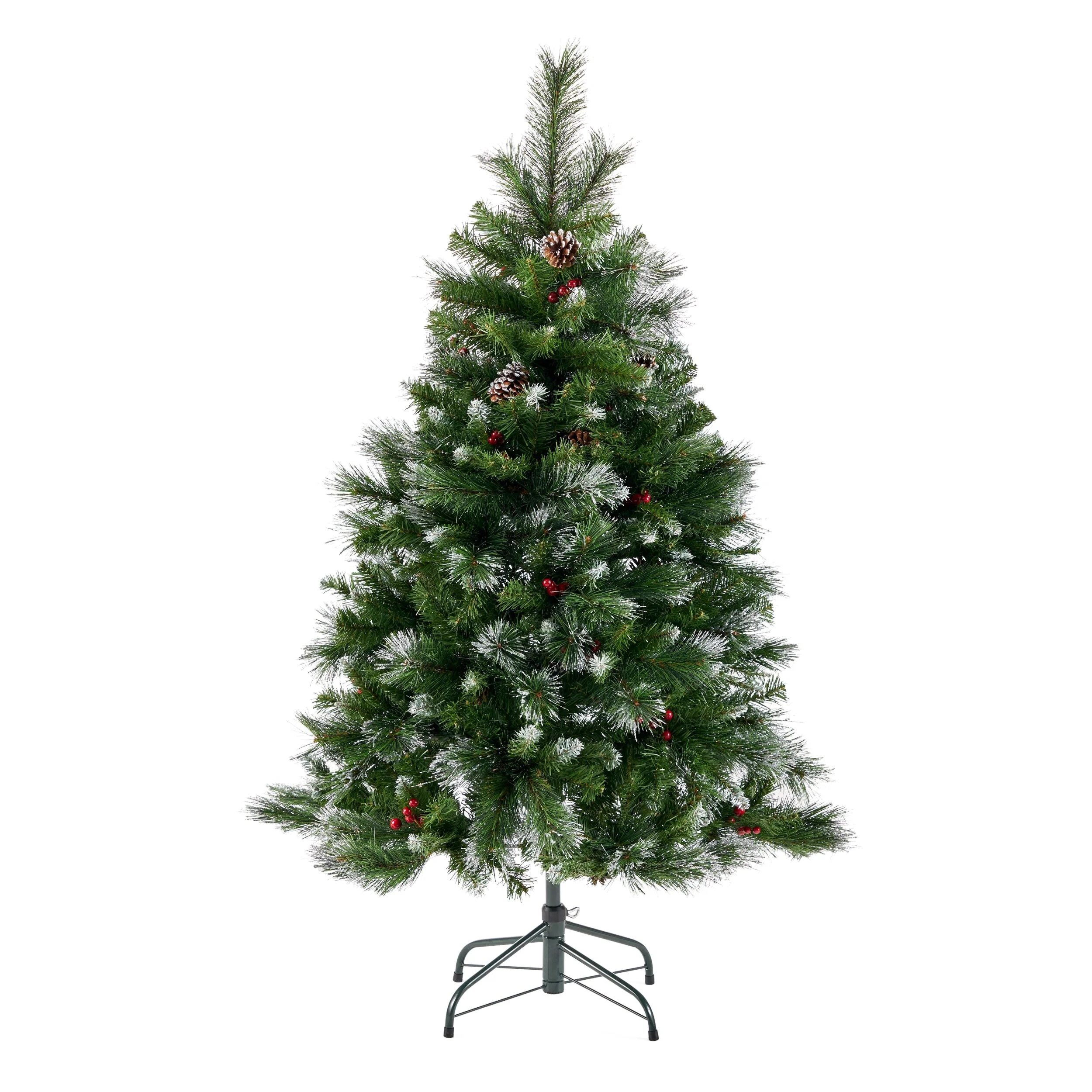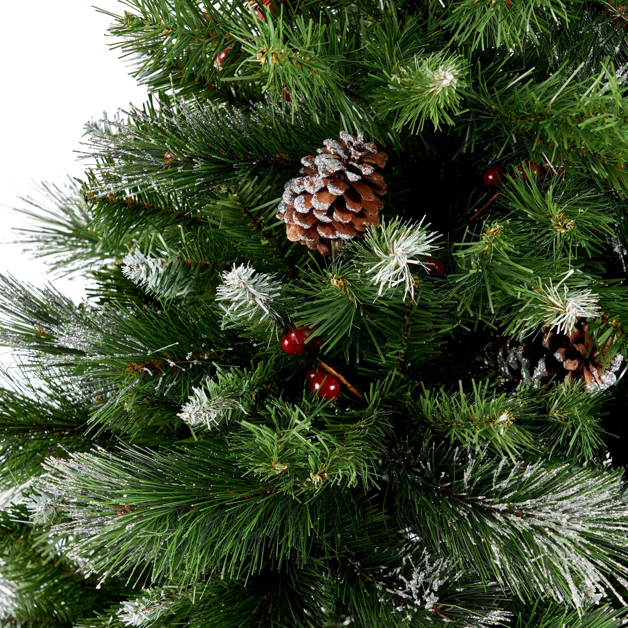 4.5-ft Spruce Pre-Lit or Unlit Artificial Christmas Tree with Glitter Branches Red Berries Pinecones by Christopher Knight Home