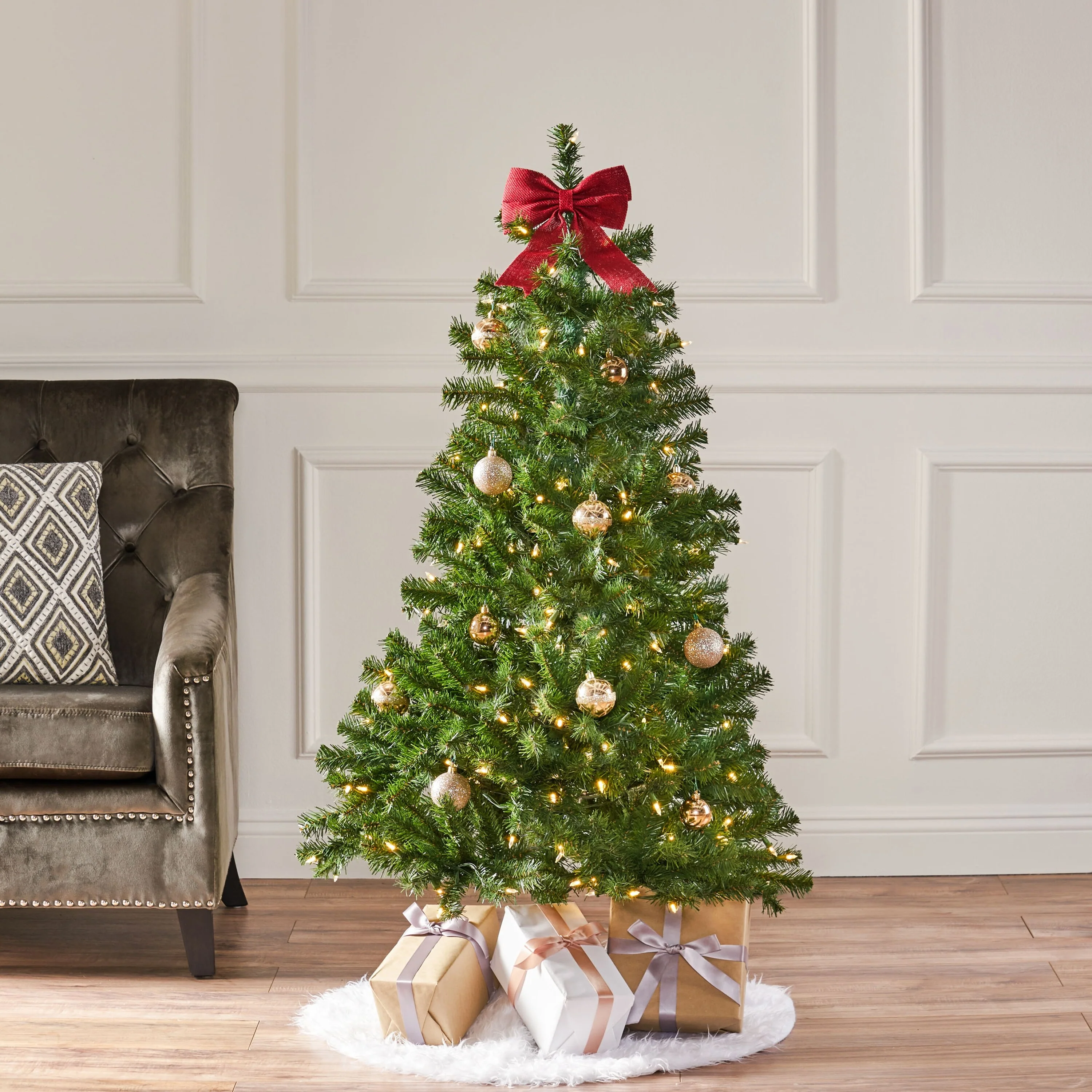 4.5FT Pre-Lit Christmas Tree with 200 Clear LED Lights, Sturdy Metal Stand, and Easy Assembly