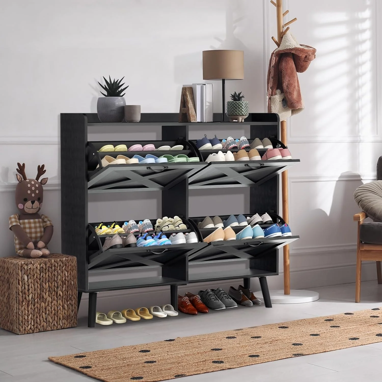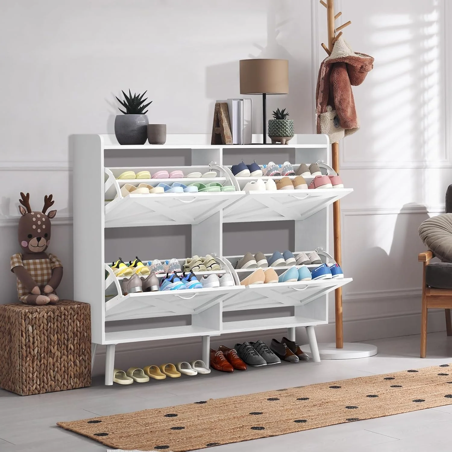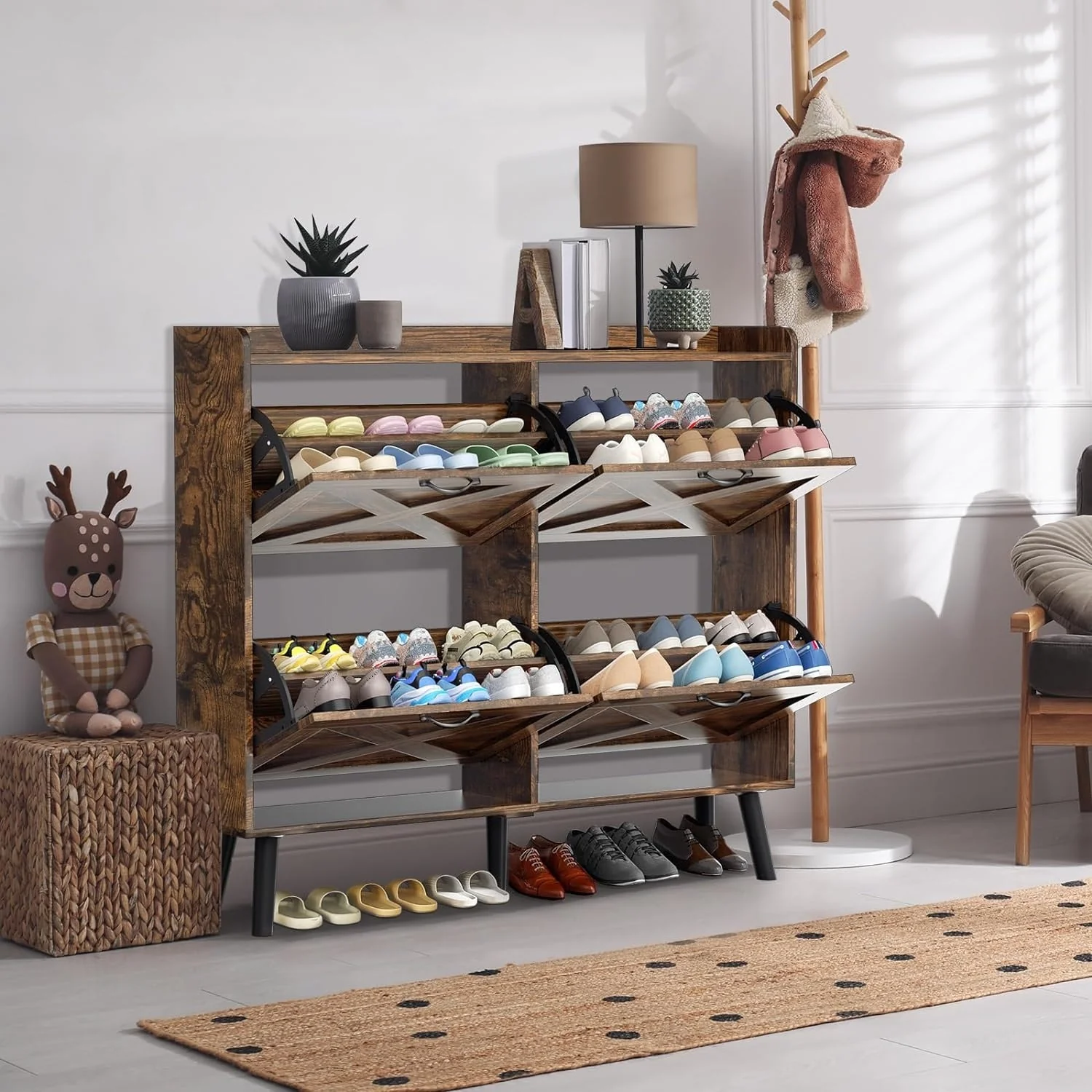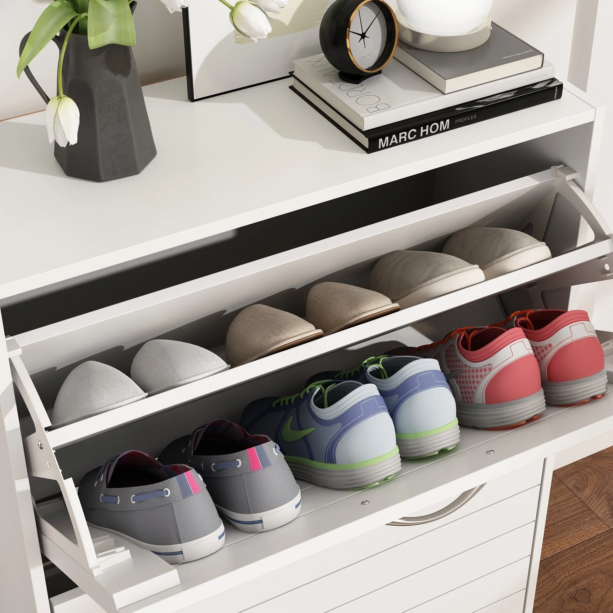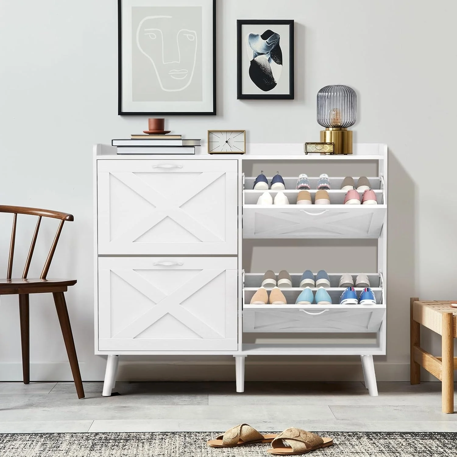 24 Pair Shoe Storage Cabinet Wood Shoe Rack Organizer with 4 Flip Drawers for Entryway