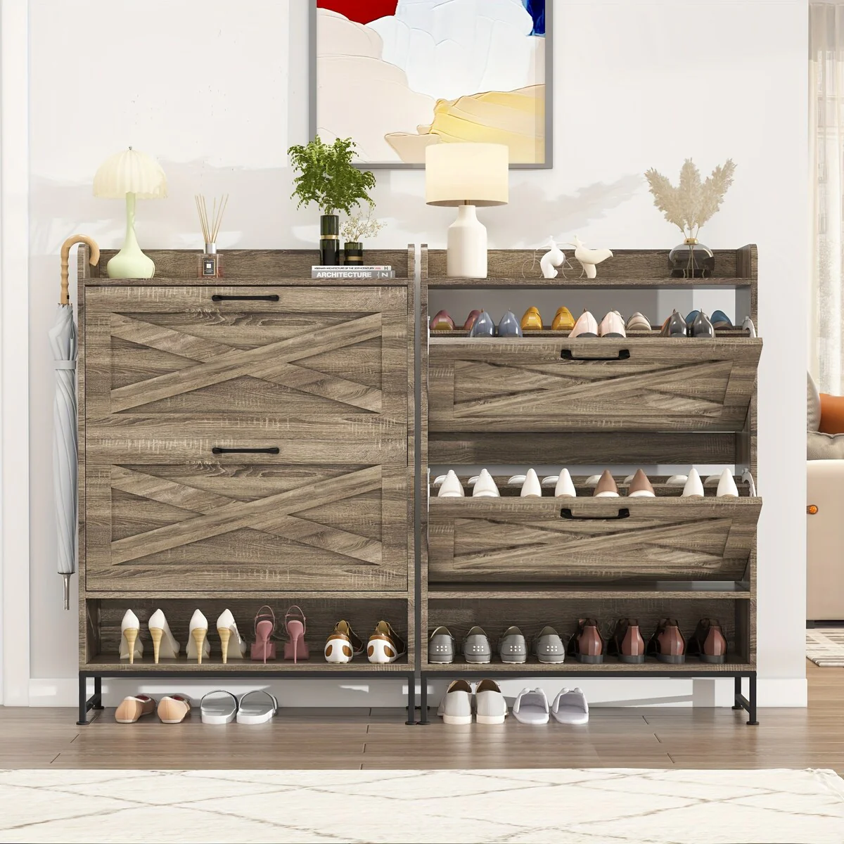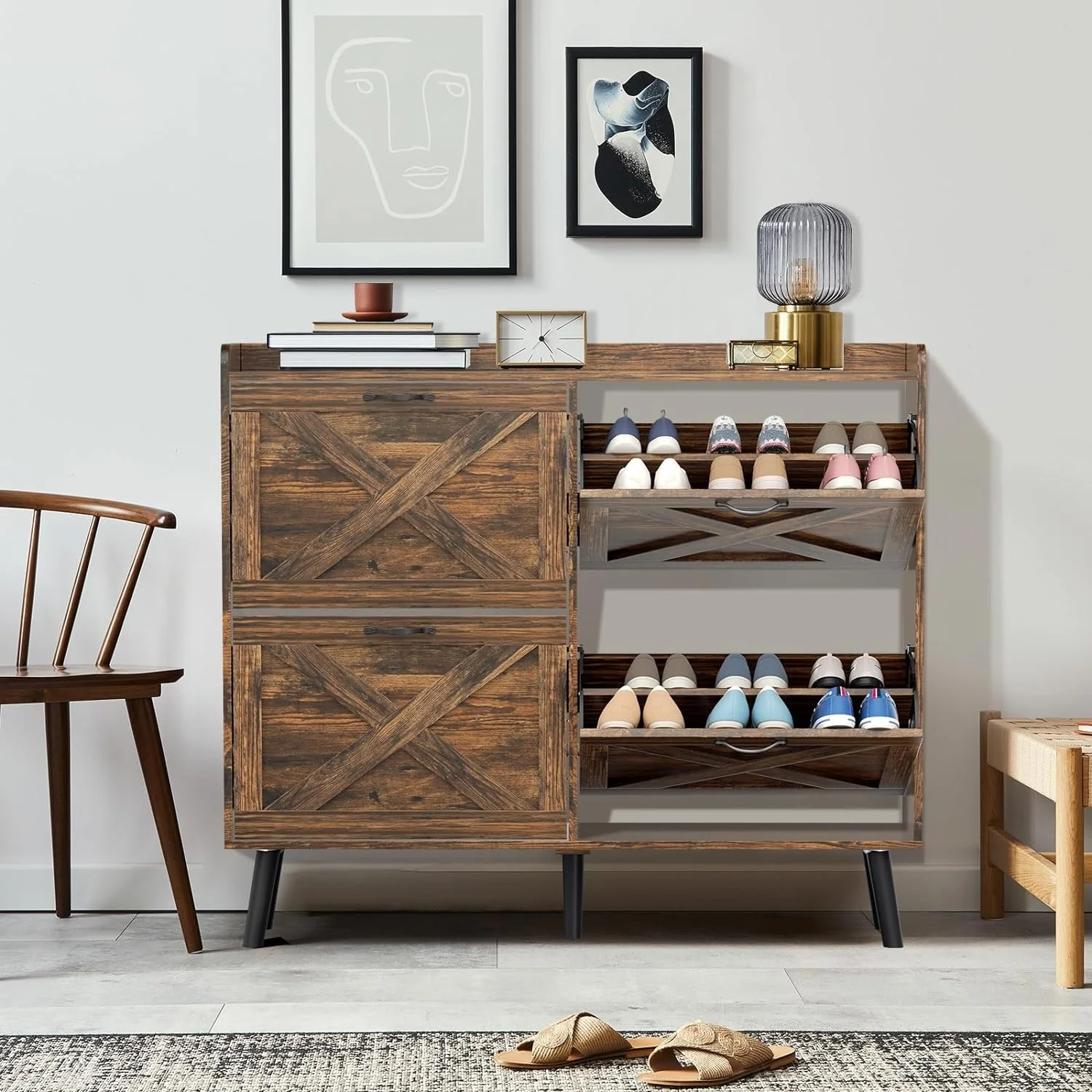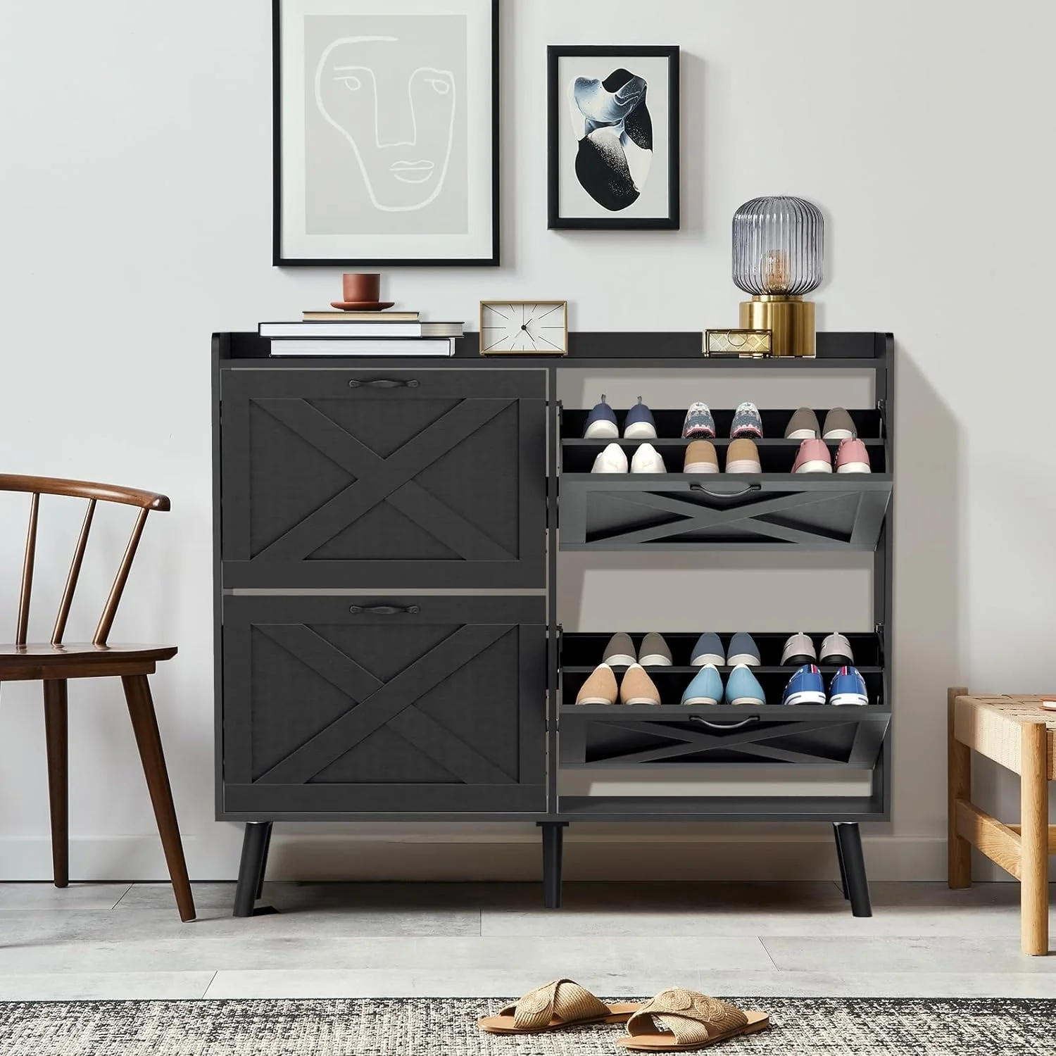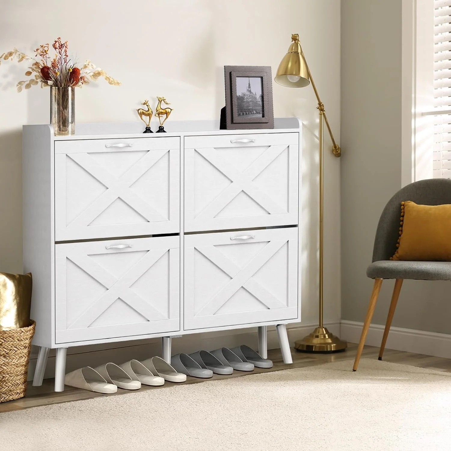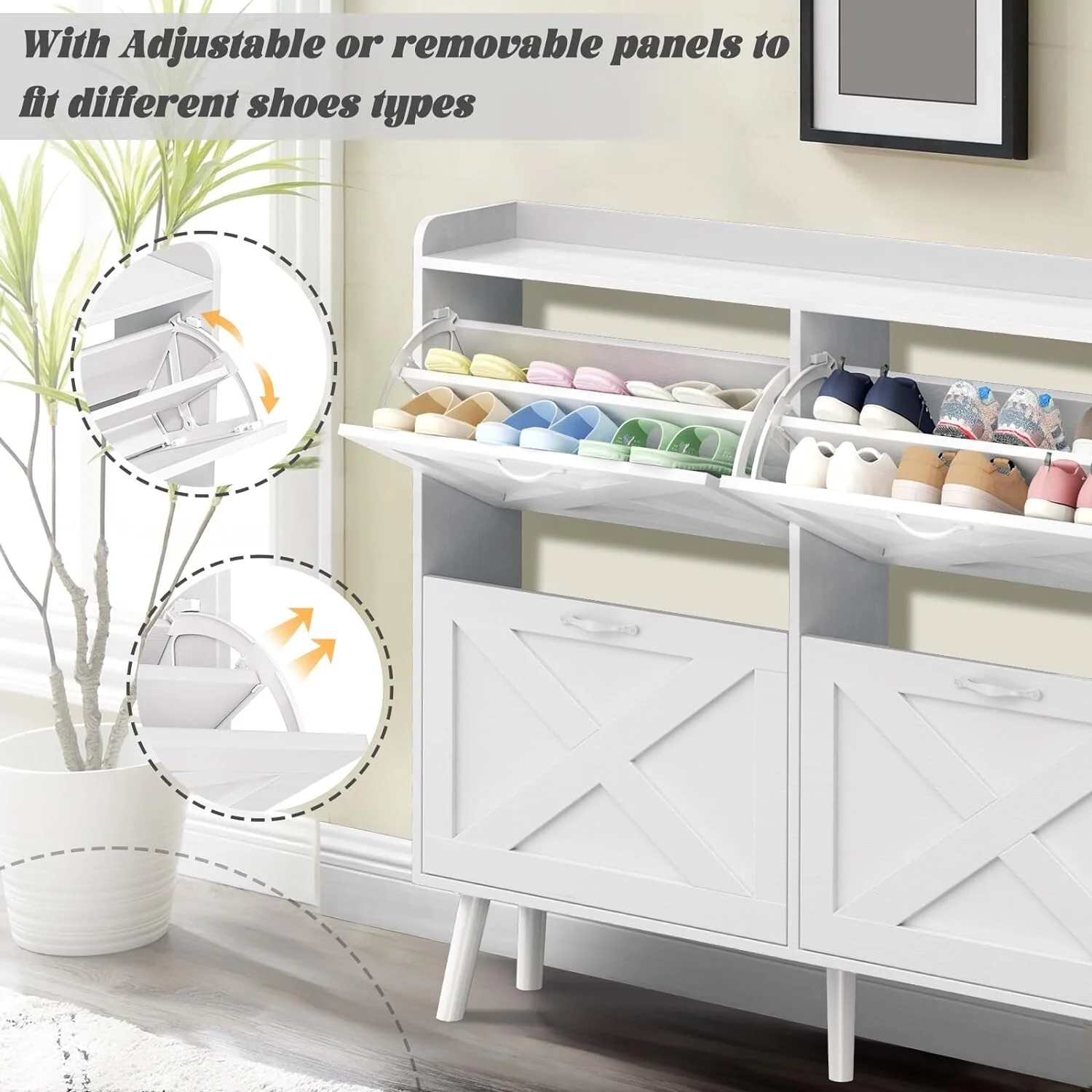 24 Pair Shoe Storage Cabinet Wood Shoe Rack Organizer with 4 Flip Drawers for Entryway