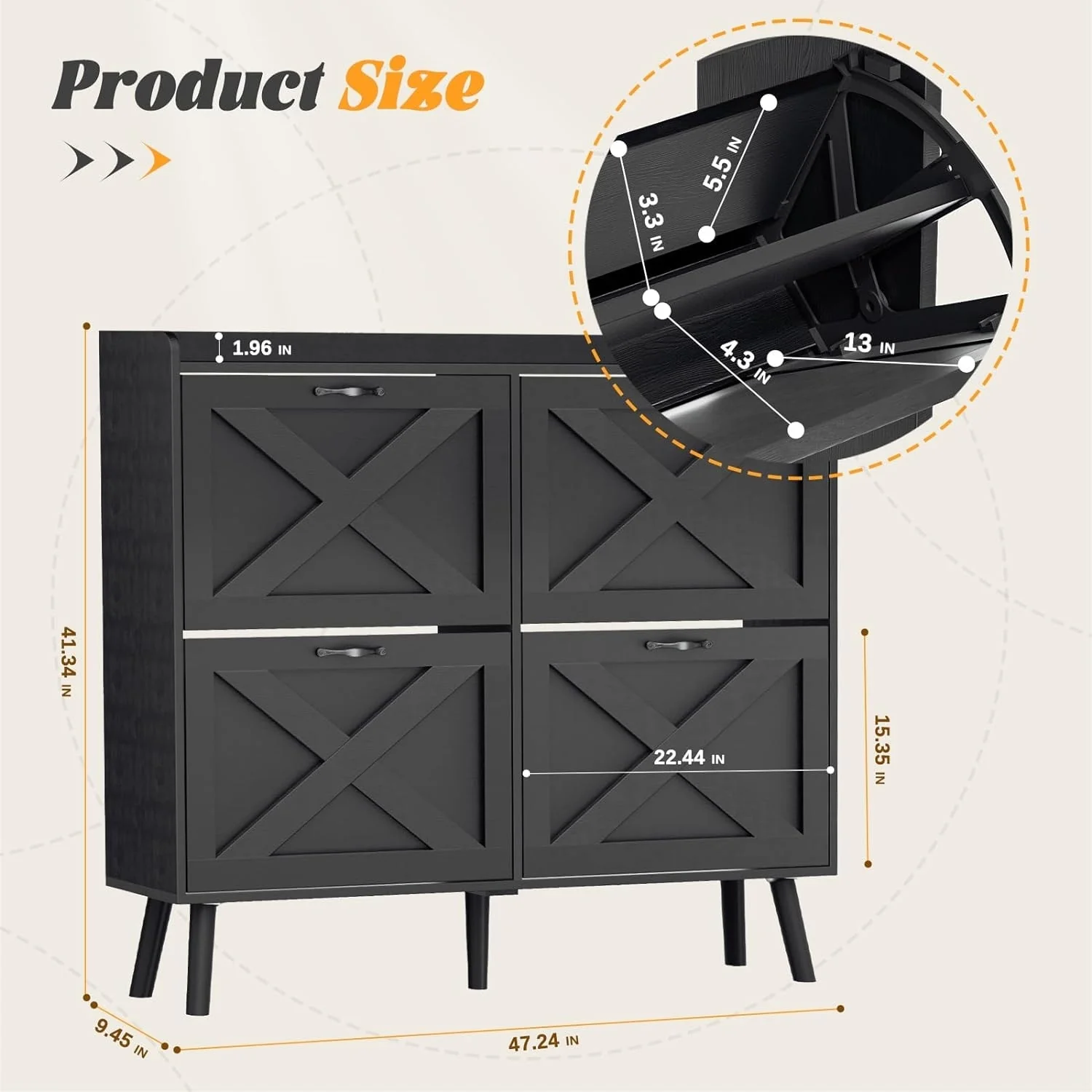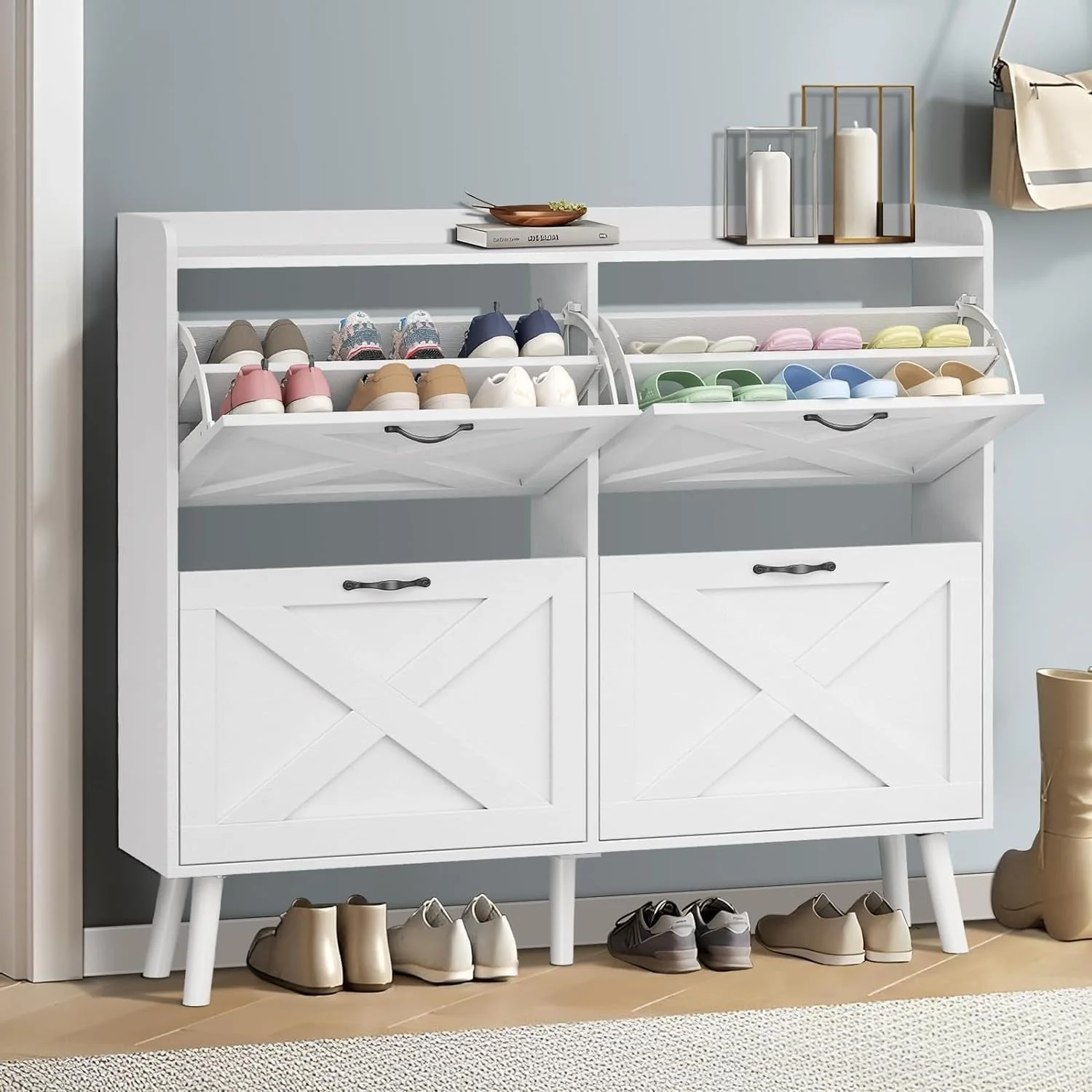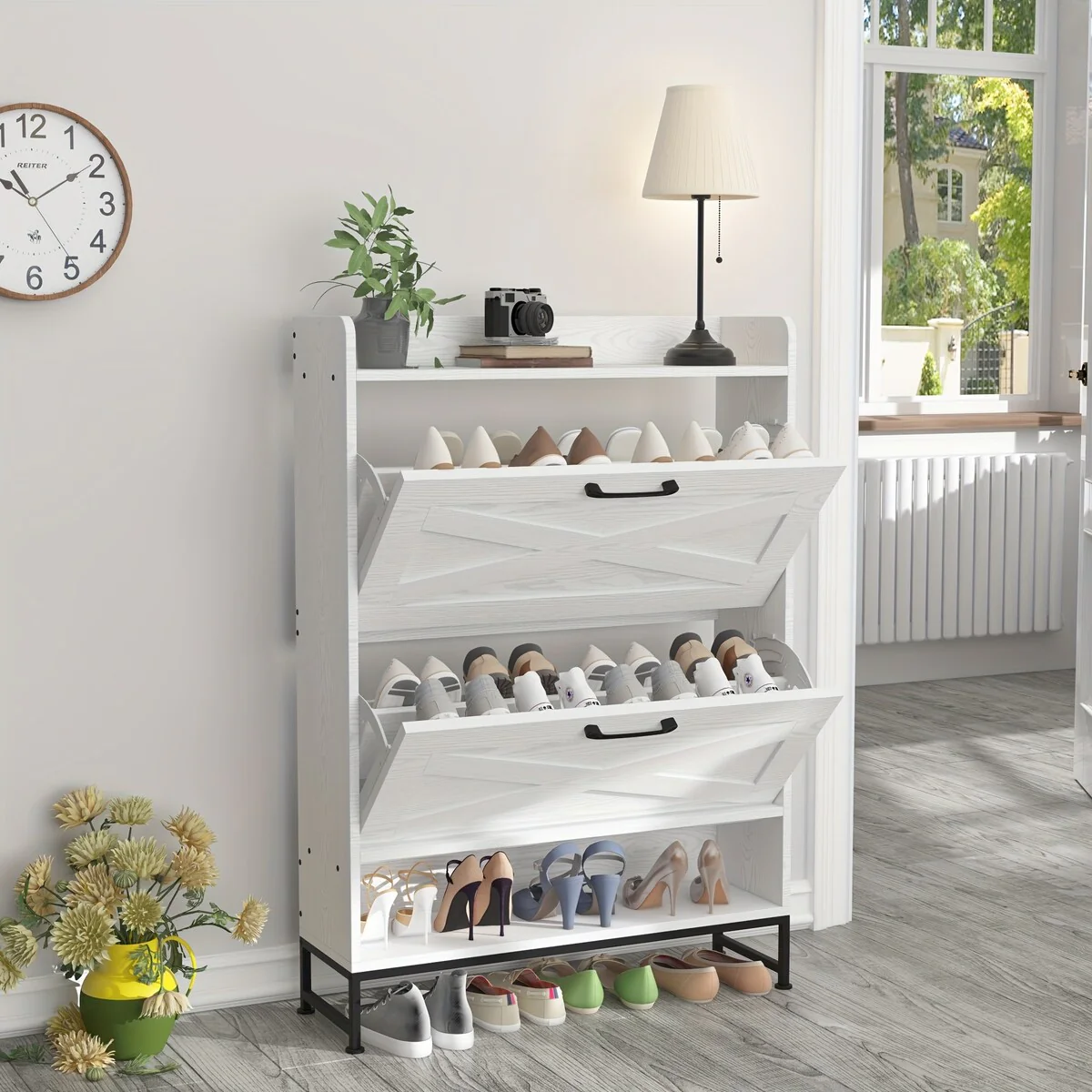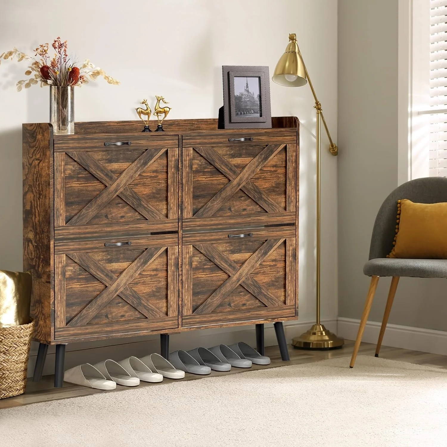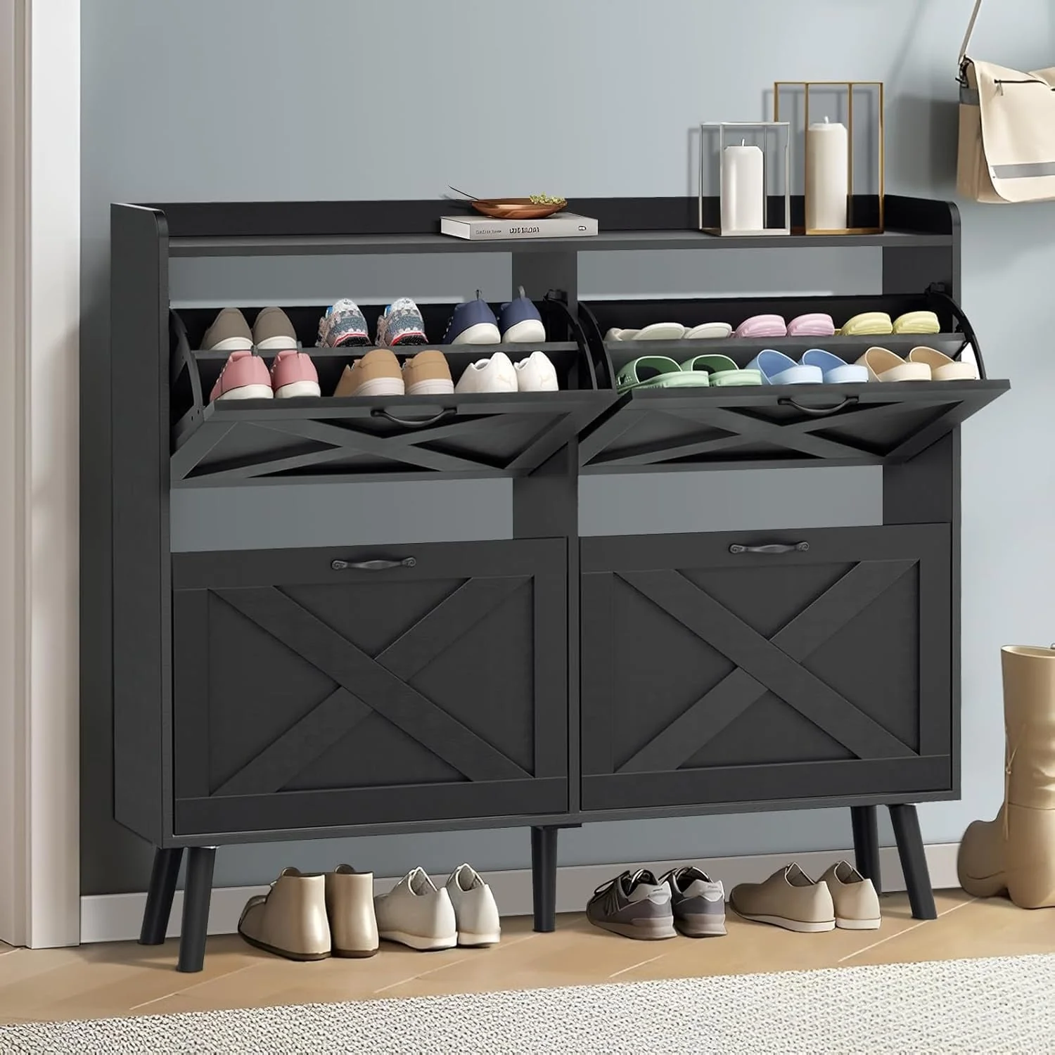 24 Pair Shoe Storage Cabinet Wood Shoe Rack Organizer with 4 Flip Drawers for Entryway