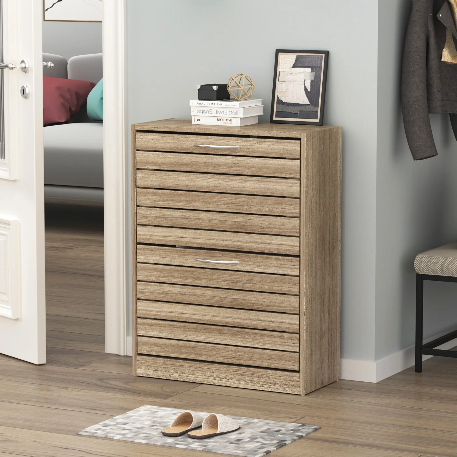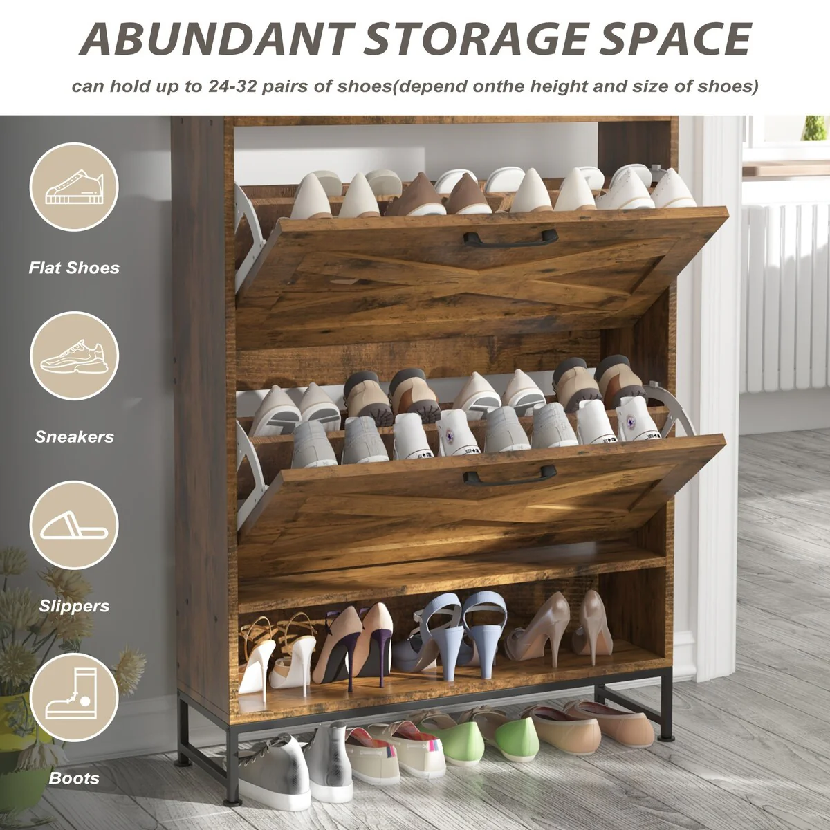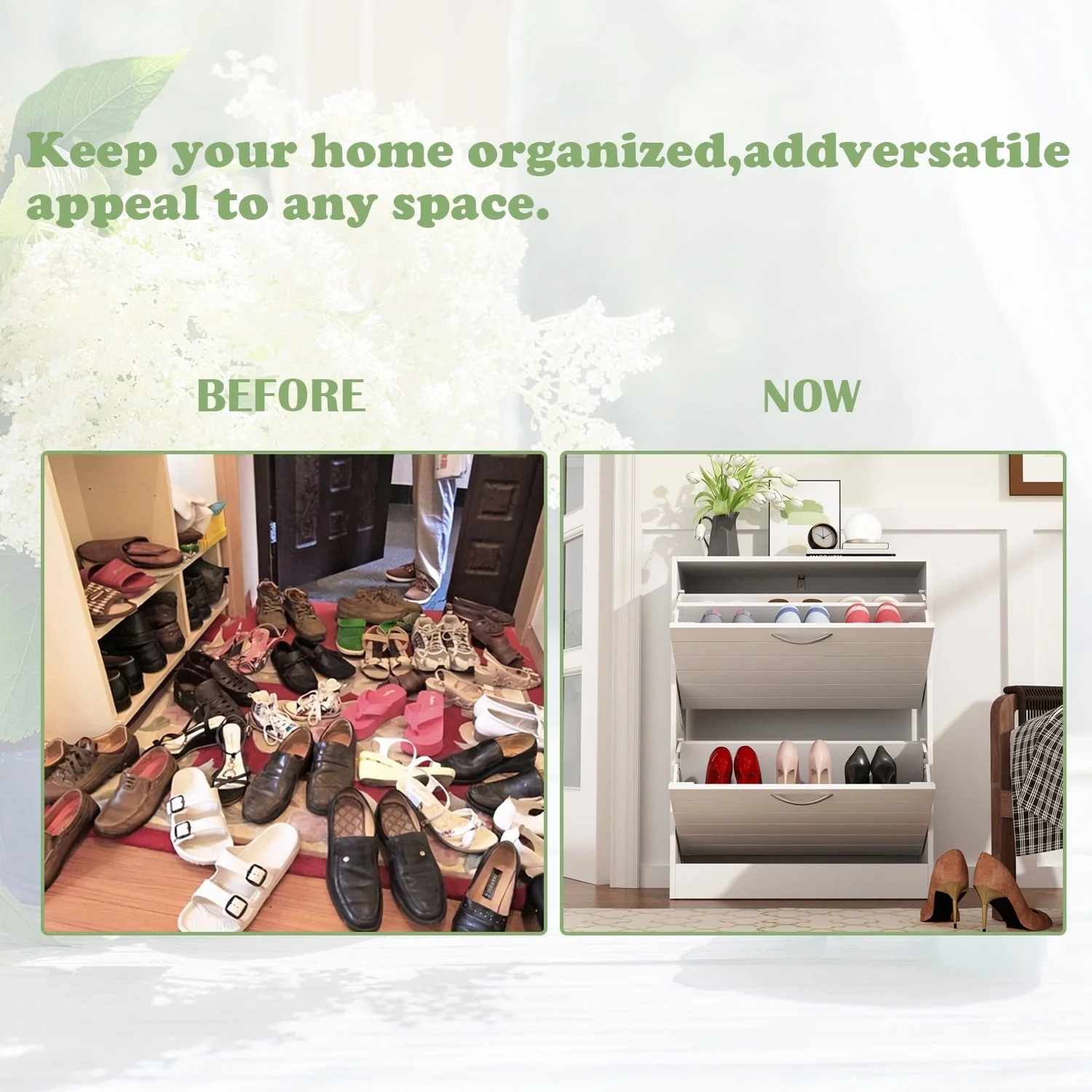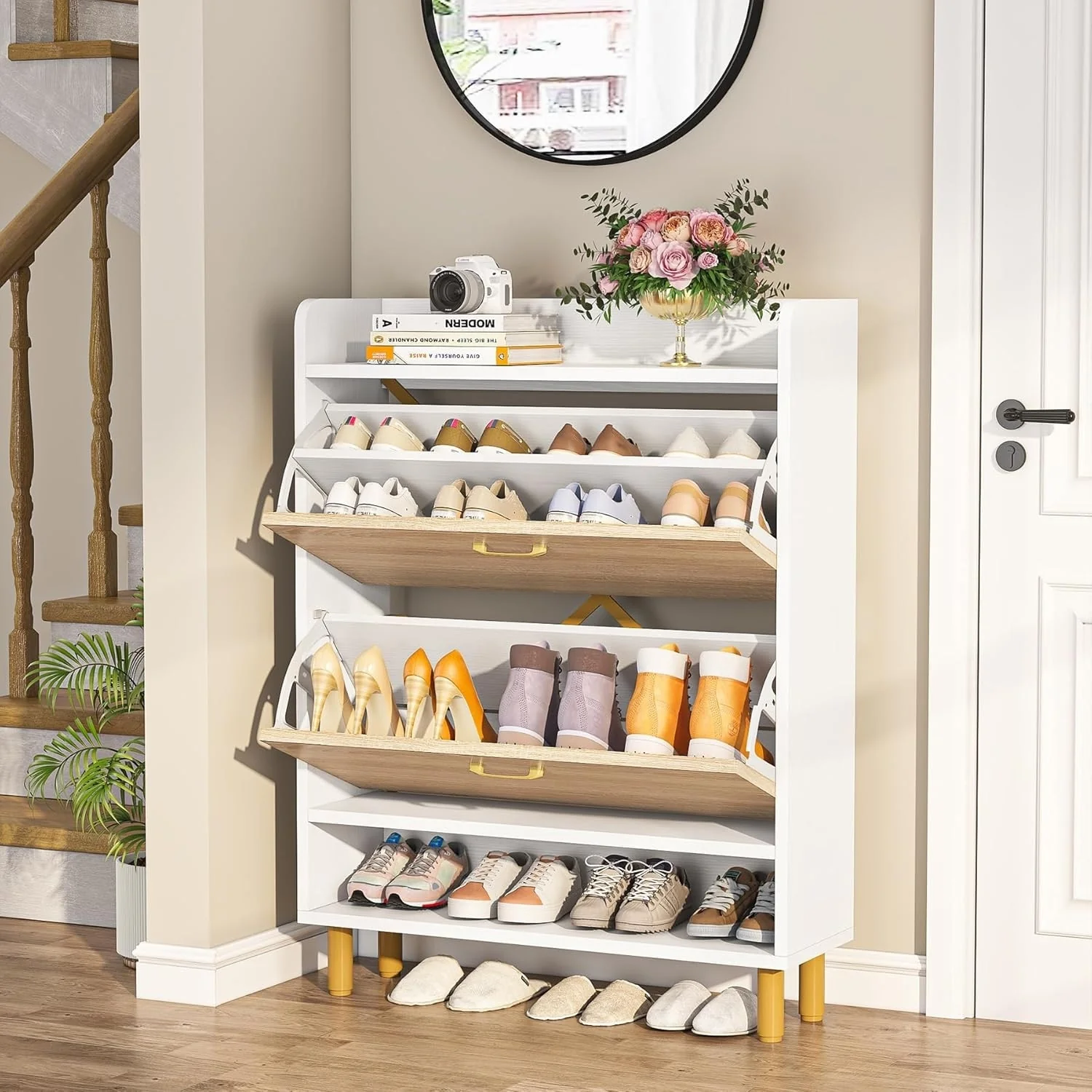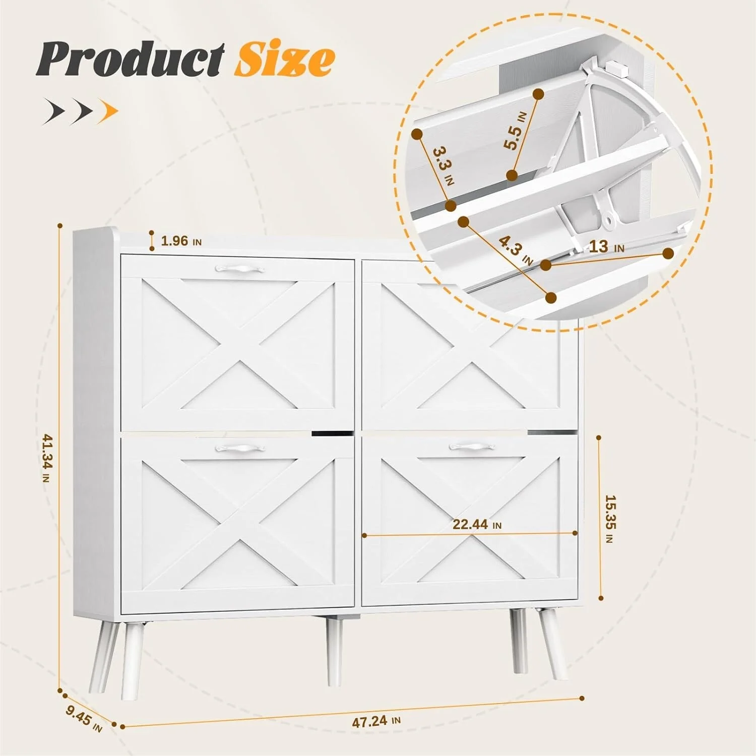 24 Pair Shoe Storage Cabinet Wood Shoe Rack Organizer with 4 Flip Drawers for Entryway