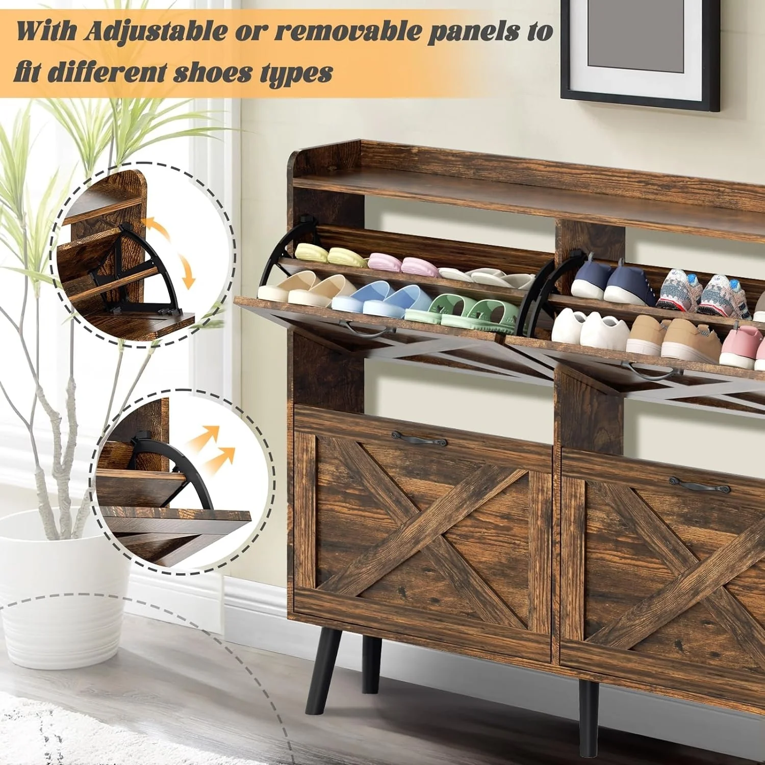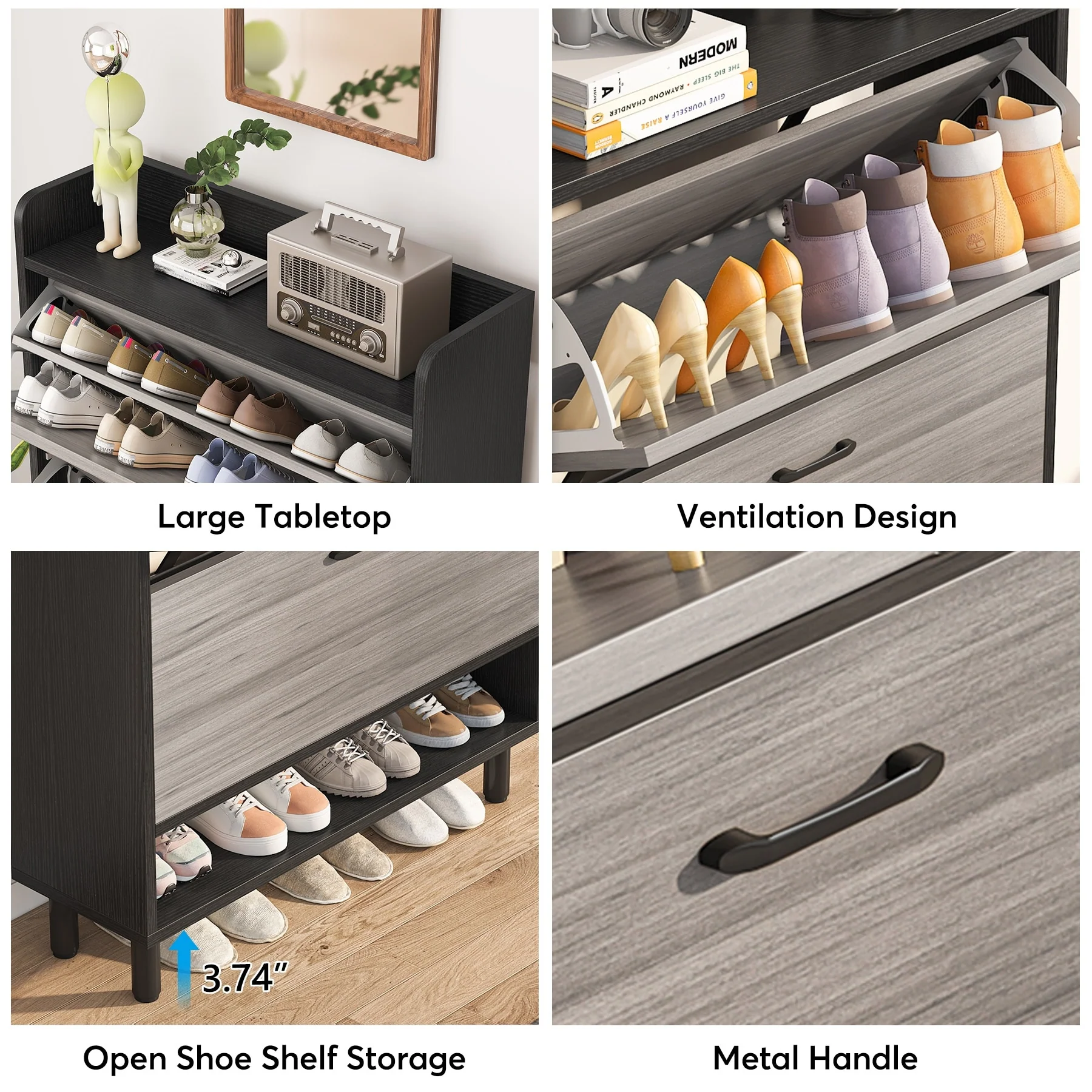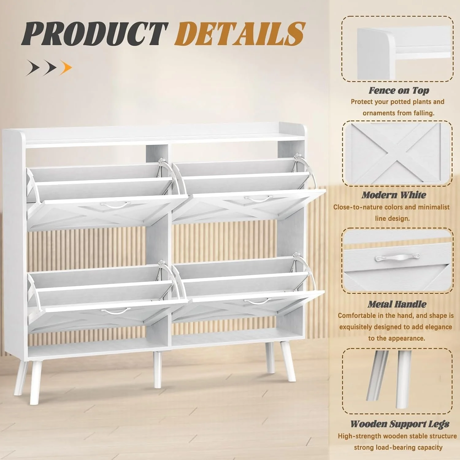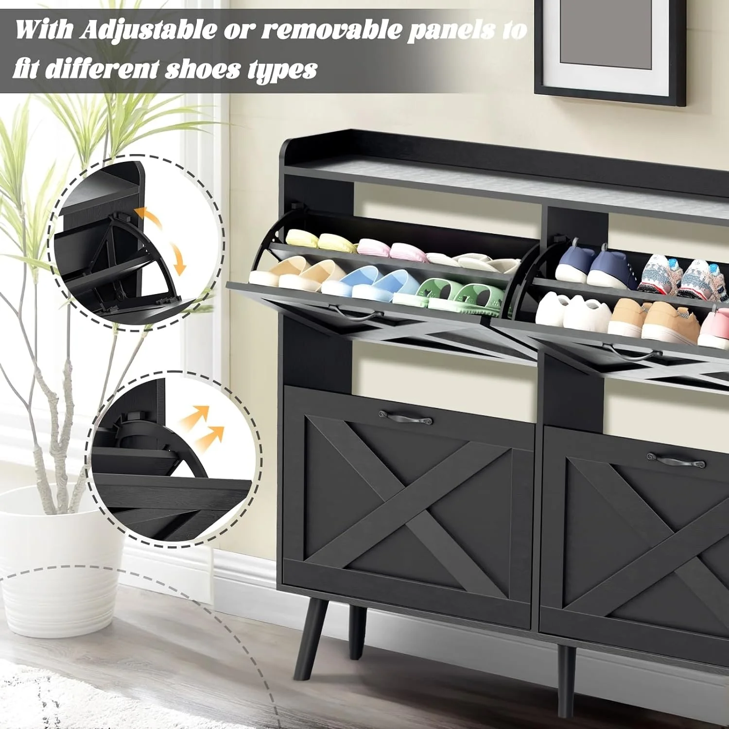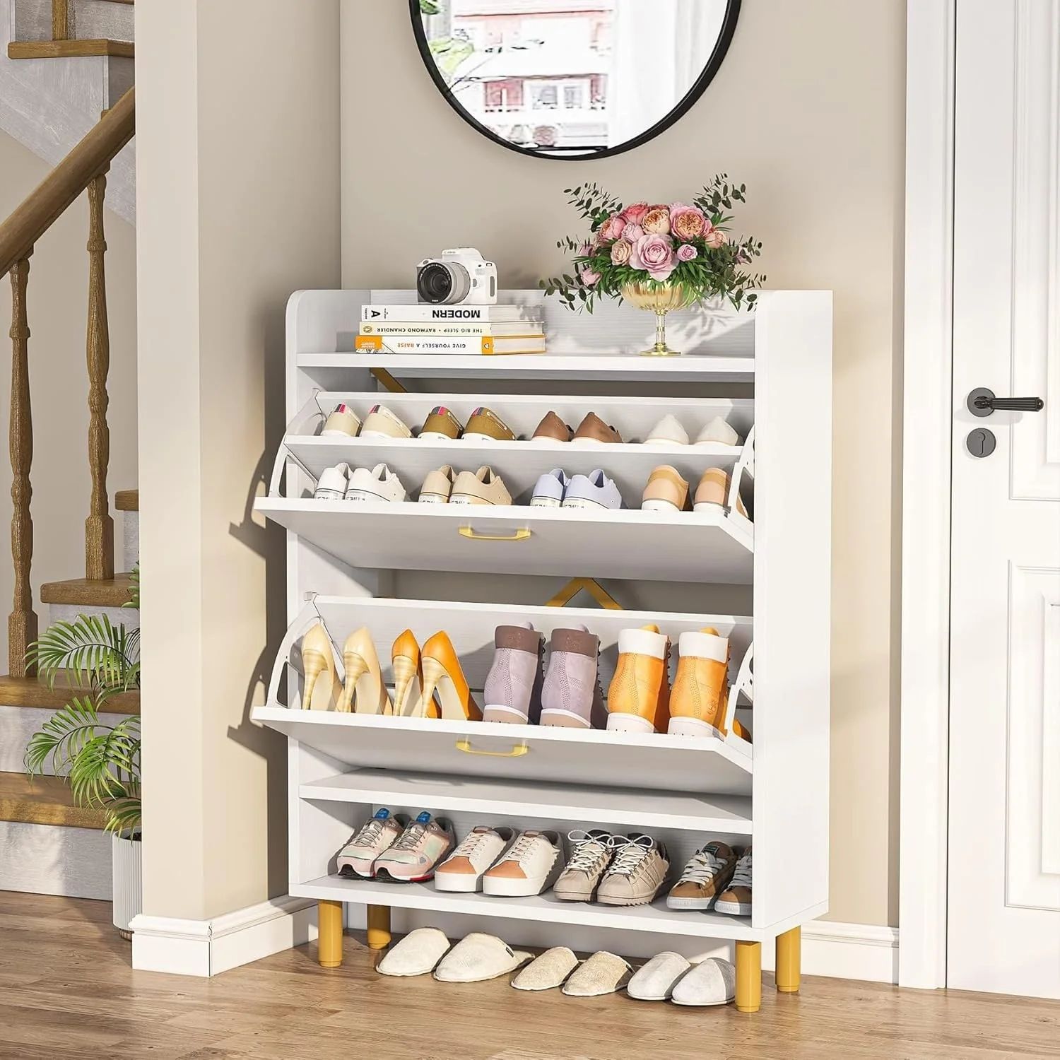 24 Pair Shoe Storage Cabinet Wood Shoe Rack Organizer with 4 Flip Drawers for Entryway
