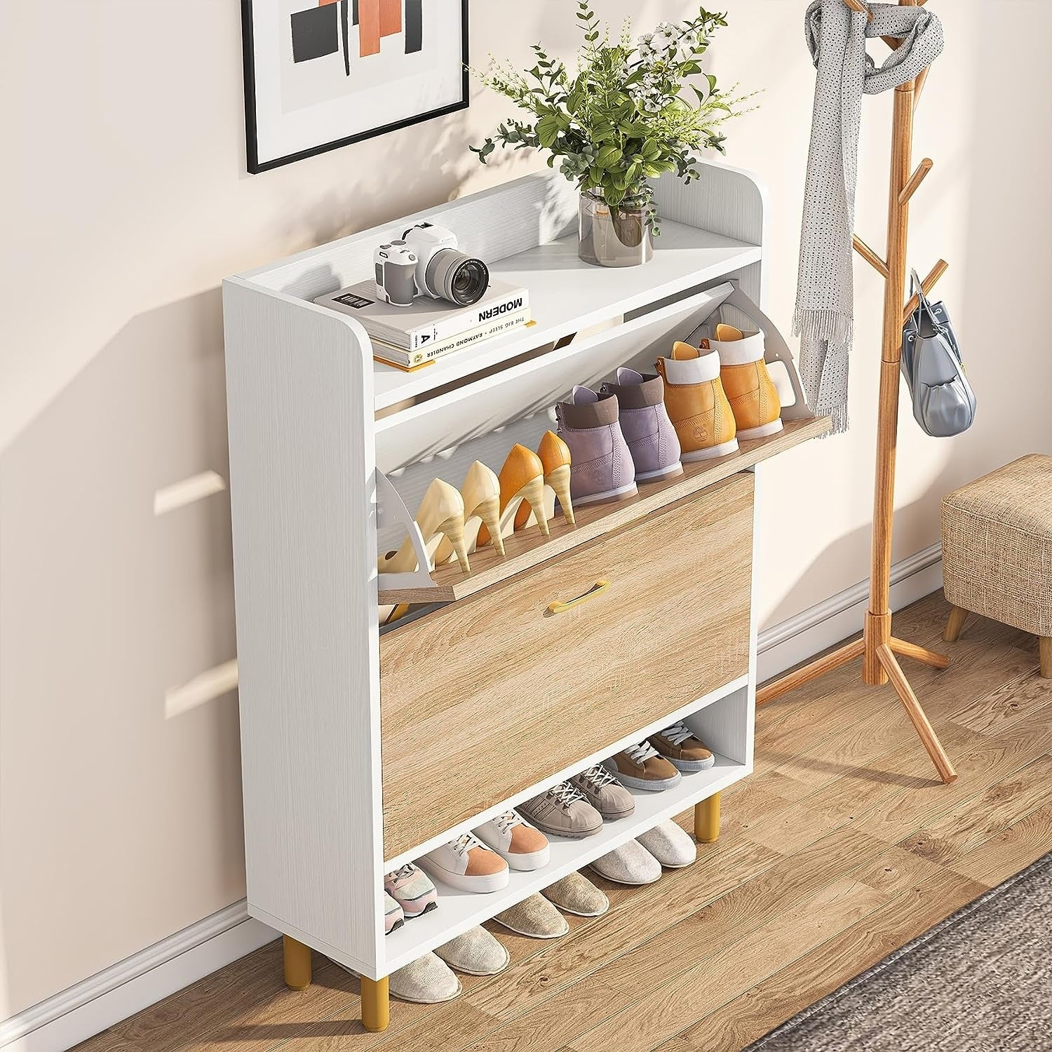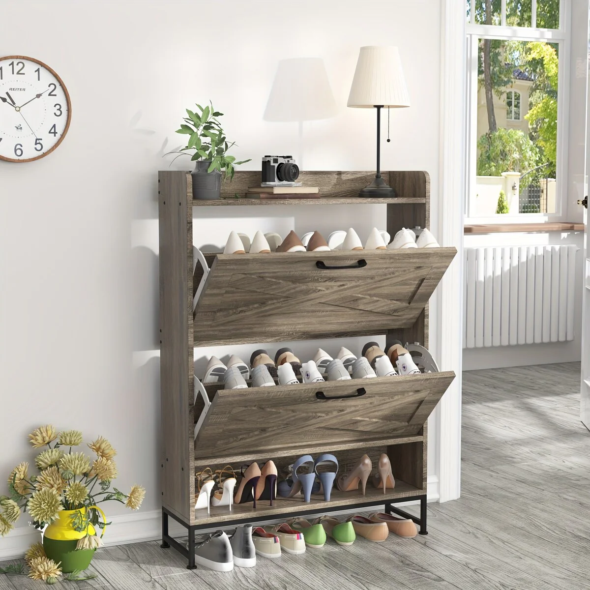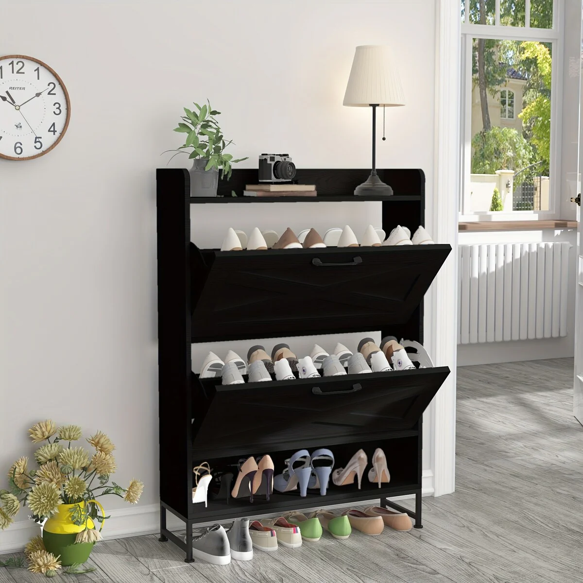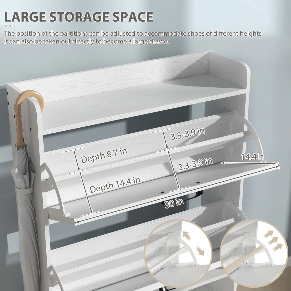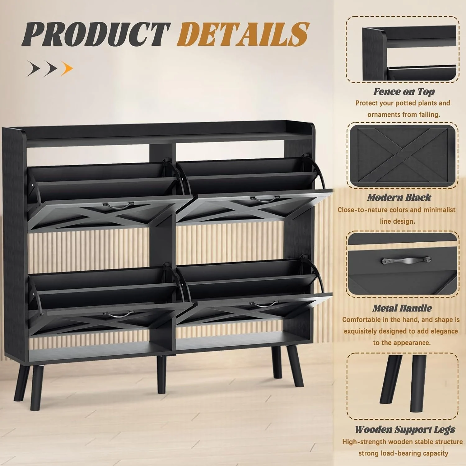 24 Pair Shoe Storage Cabinet Wood Shoe Rack Organizer with 4 Flip Drawers for Entryway
