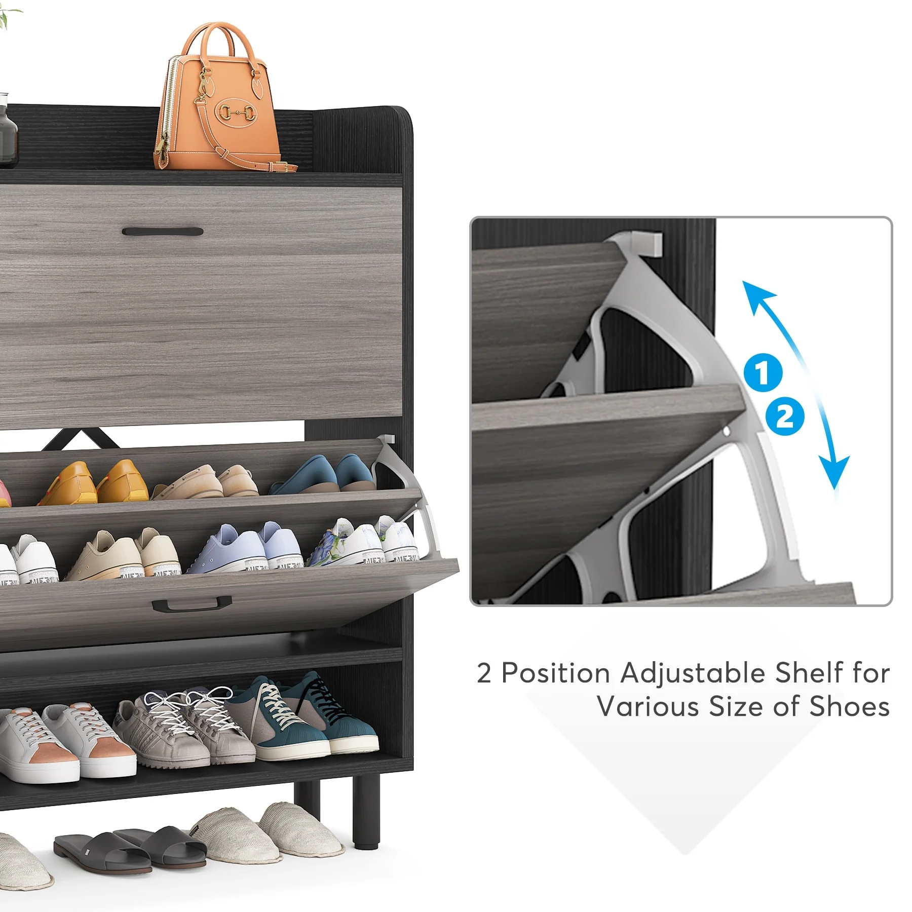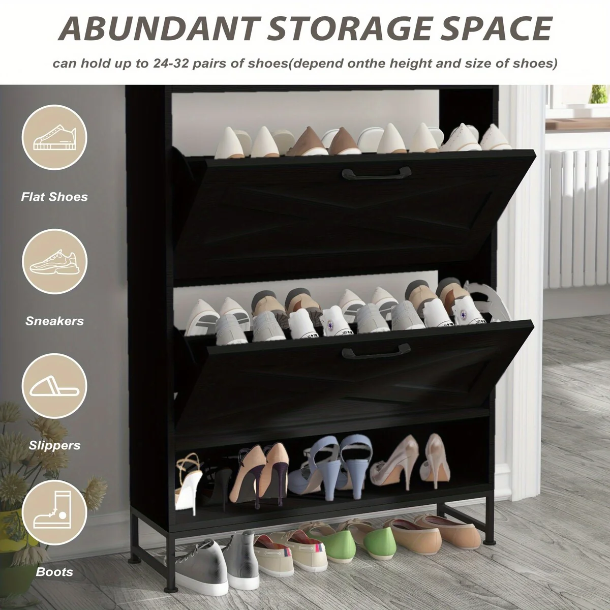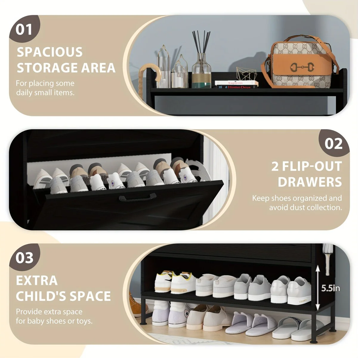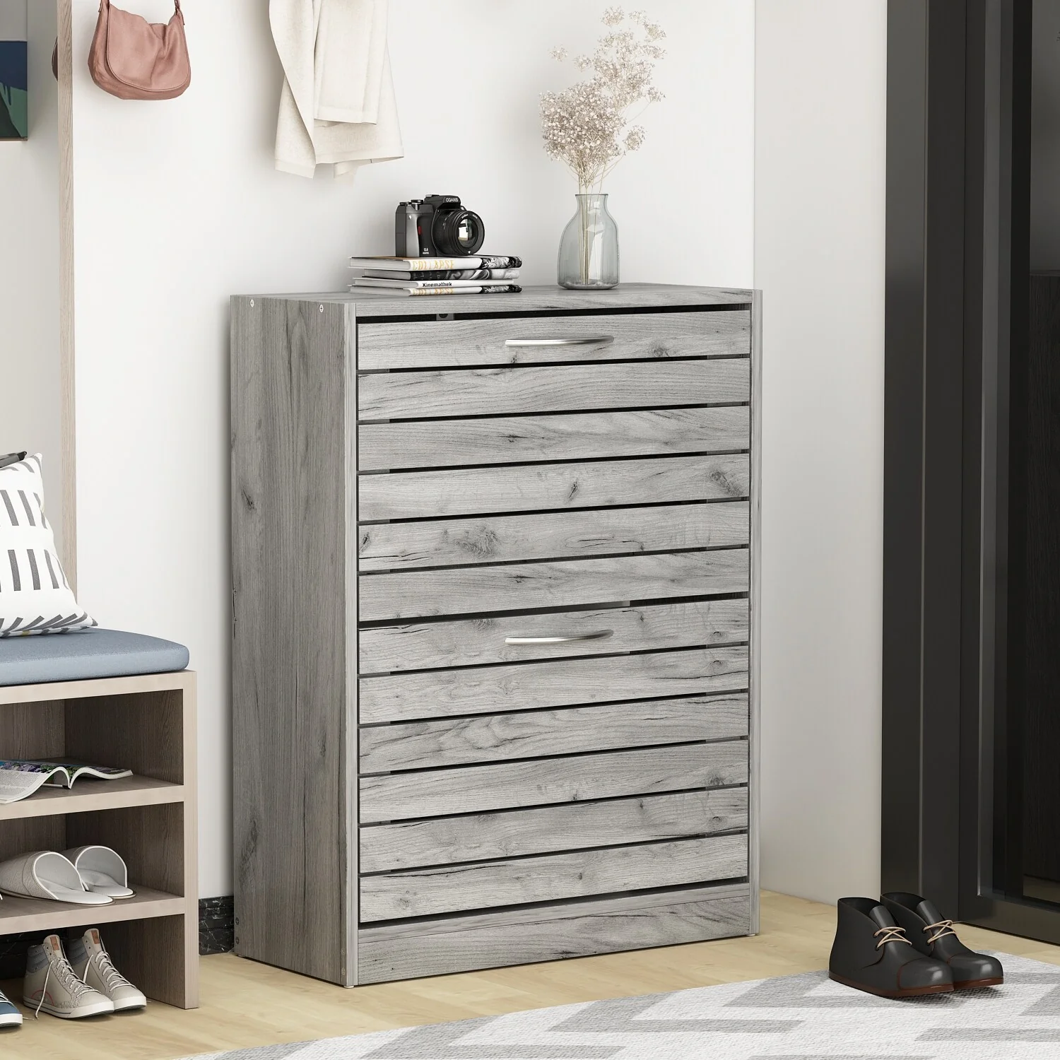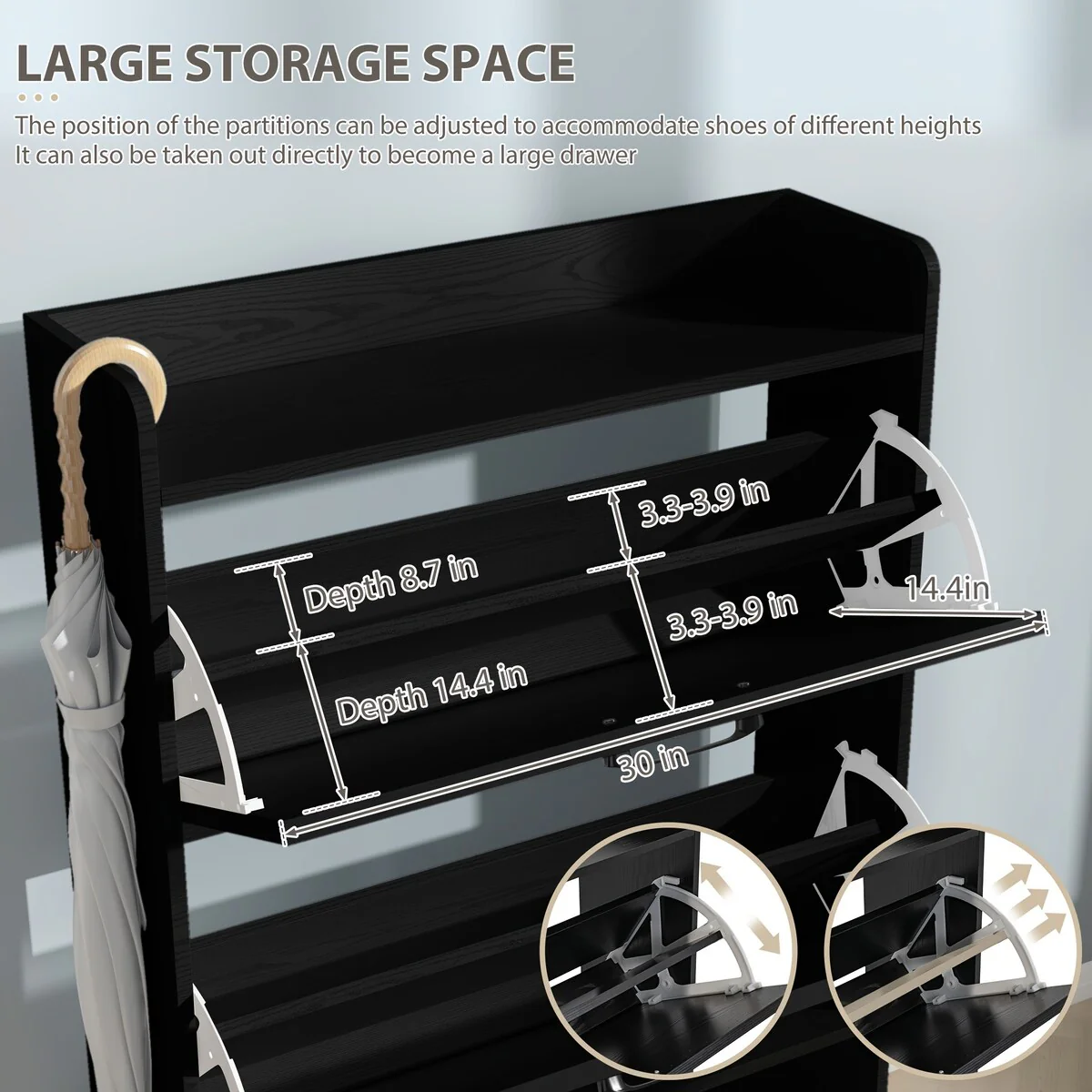 24 Pair Shoe Storage Cabinet Wood Shoe Rack Organizer with 4 Flip Drawers for Entryway