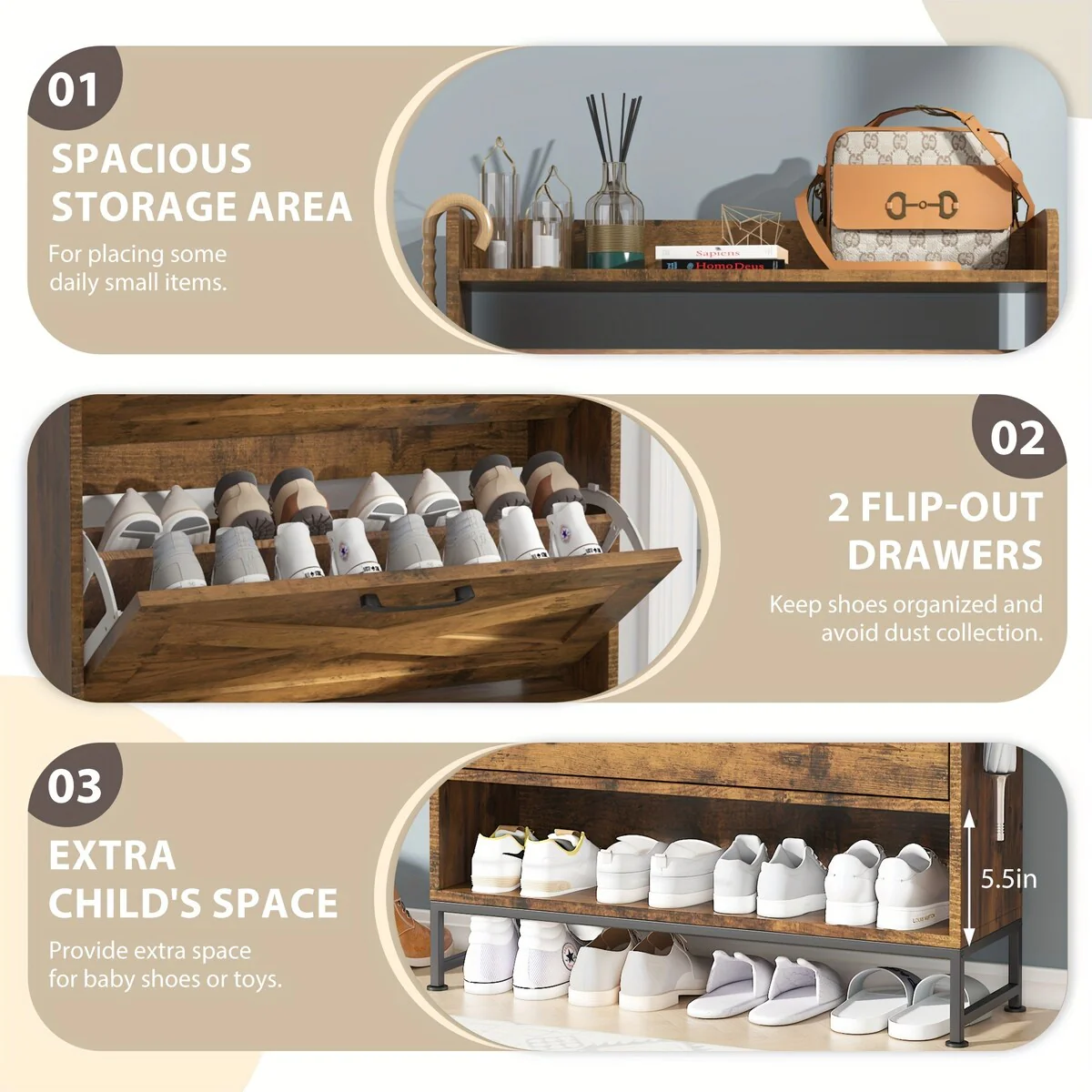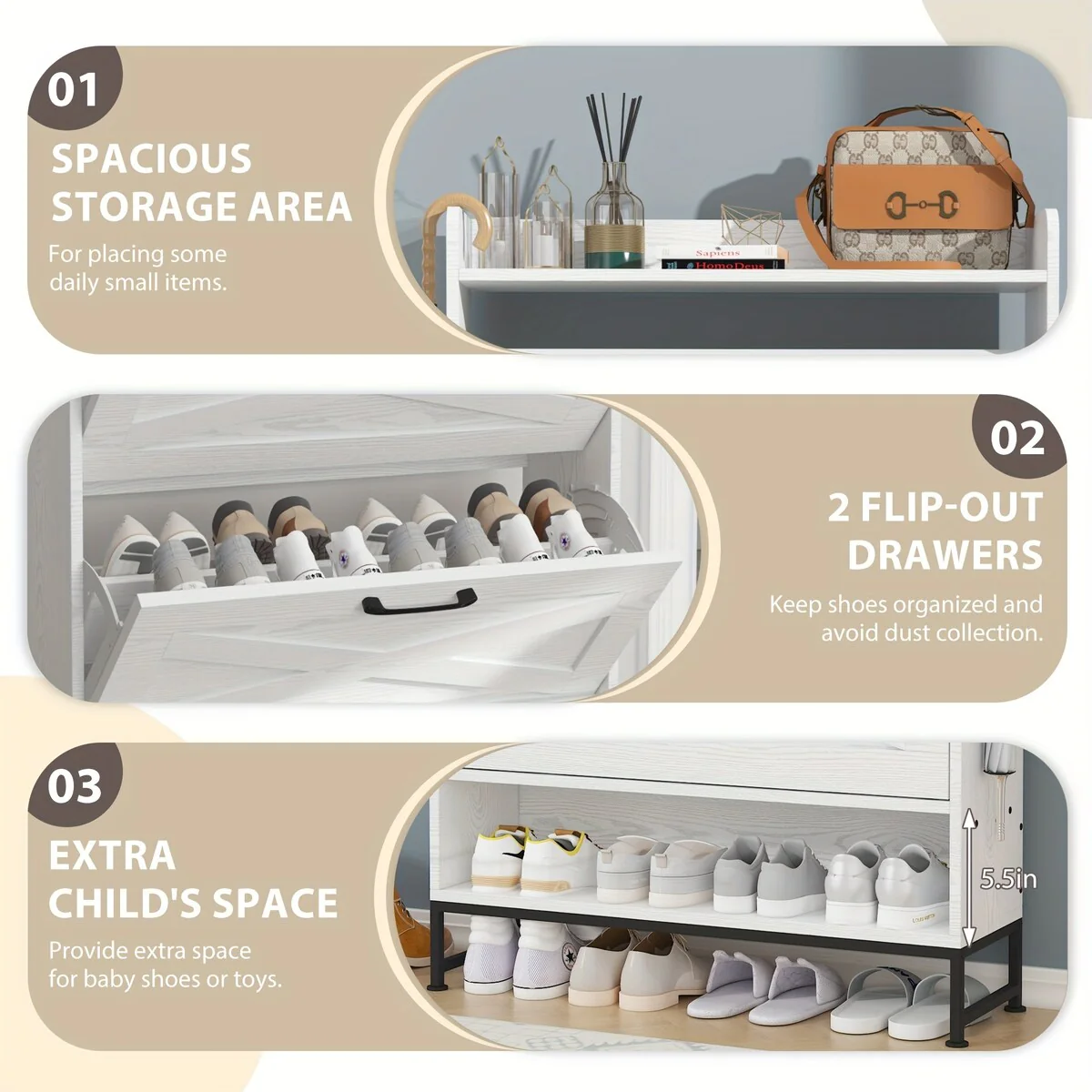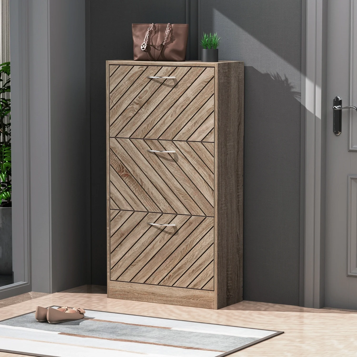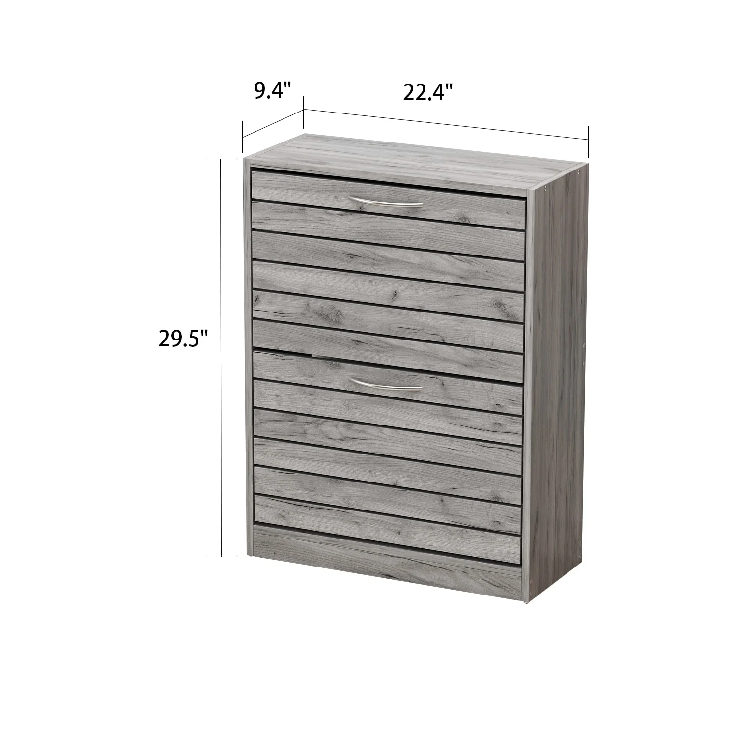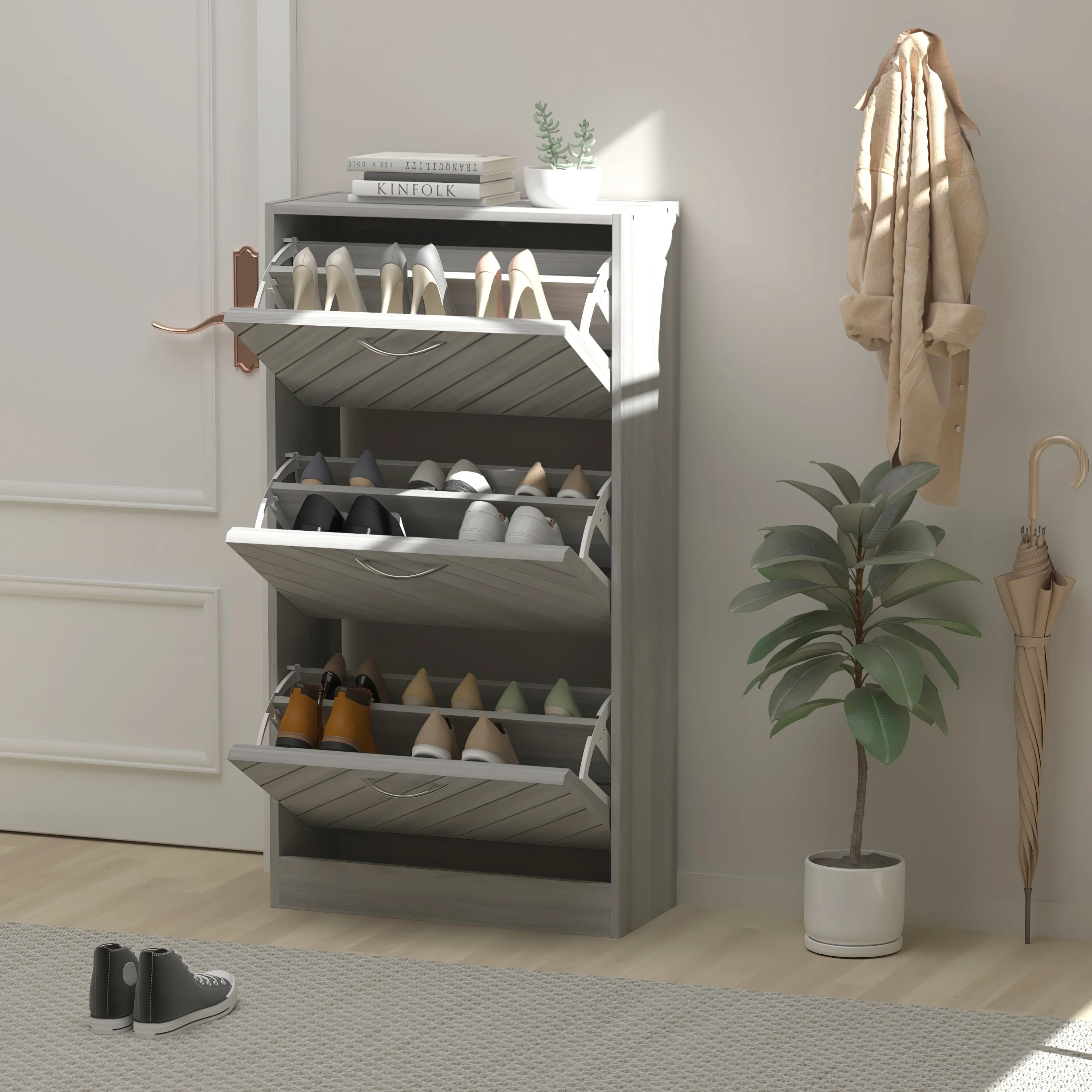 24 Pair Shoe Storage Cabinet Wood Shoe Rack Organizer with 4 Flip Drawers for Entryway