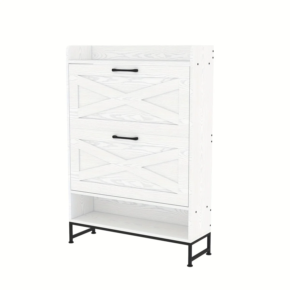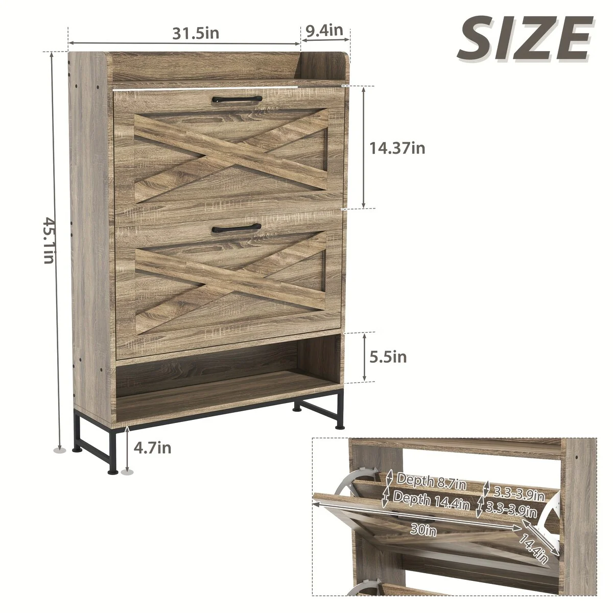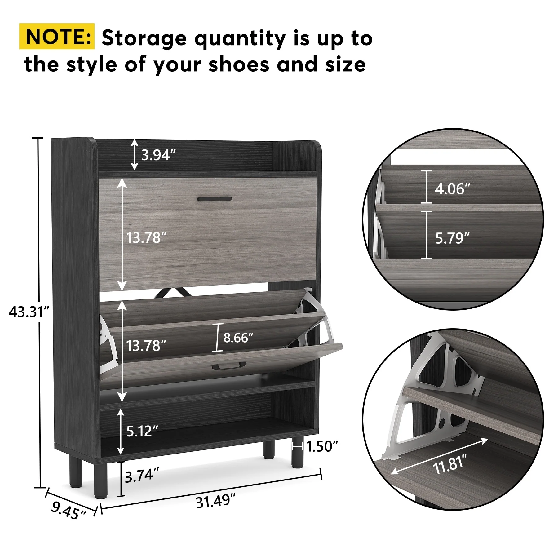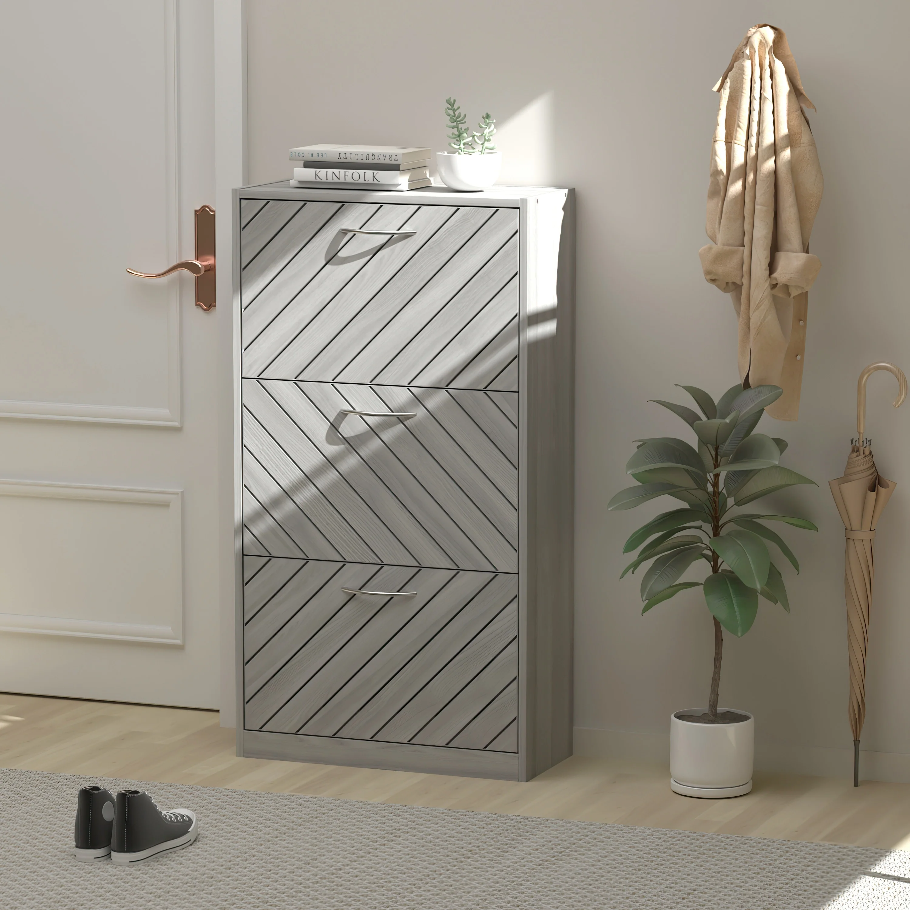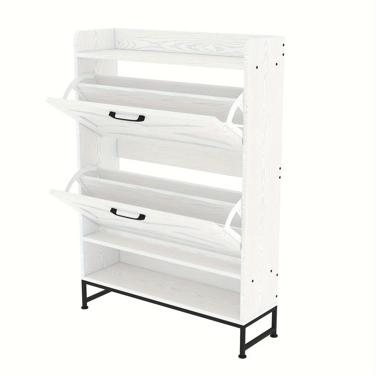 24 Pair Shoe Storage Cabinet Wood Shoe Rack Organizer with 4 Flip Drawers for Entryway