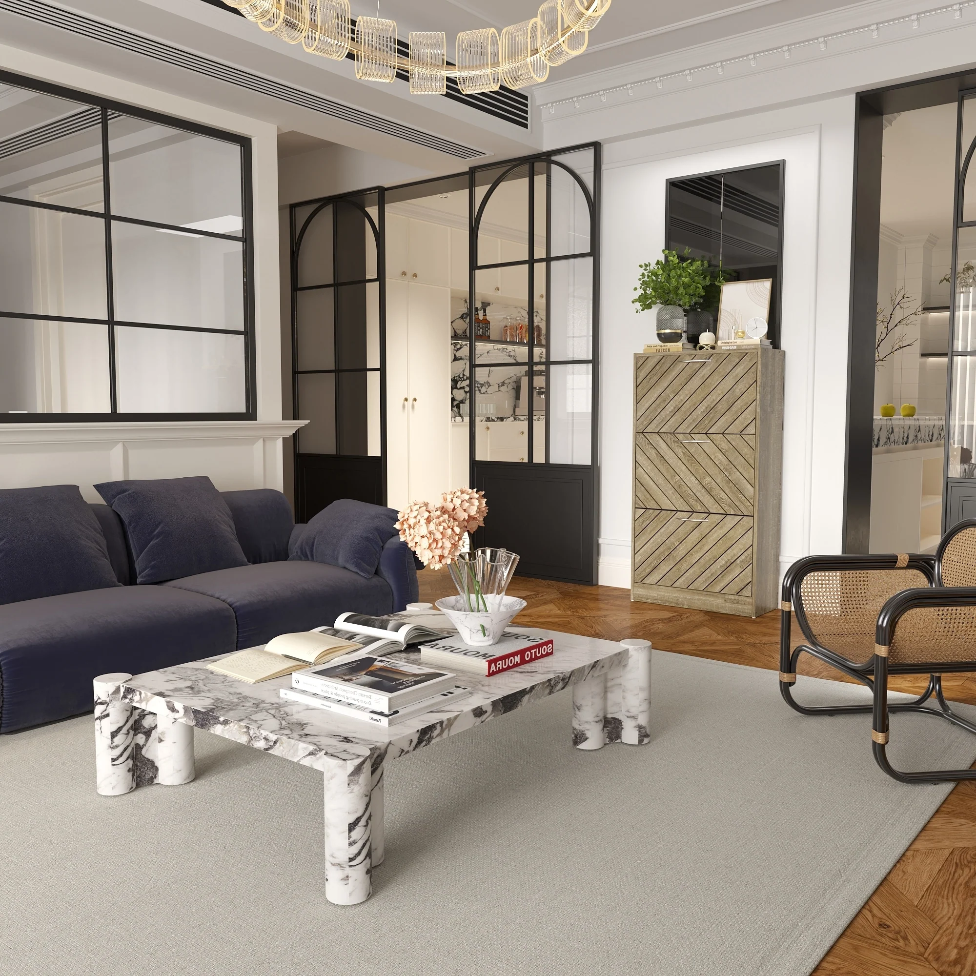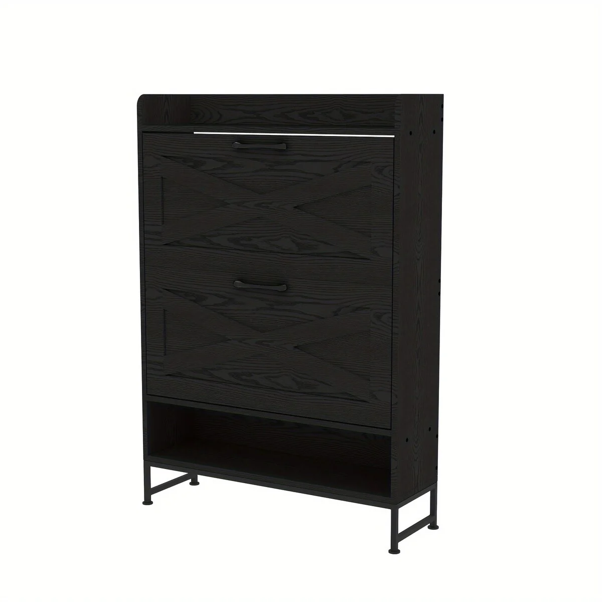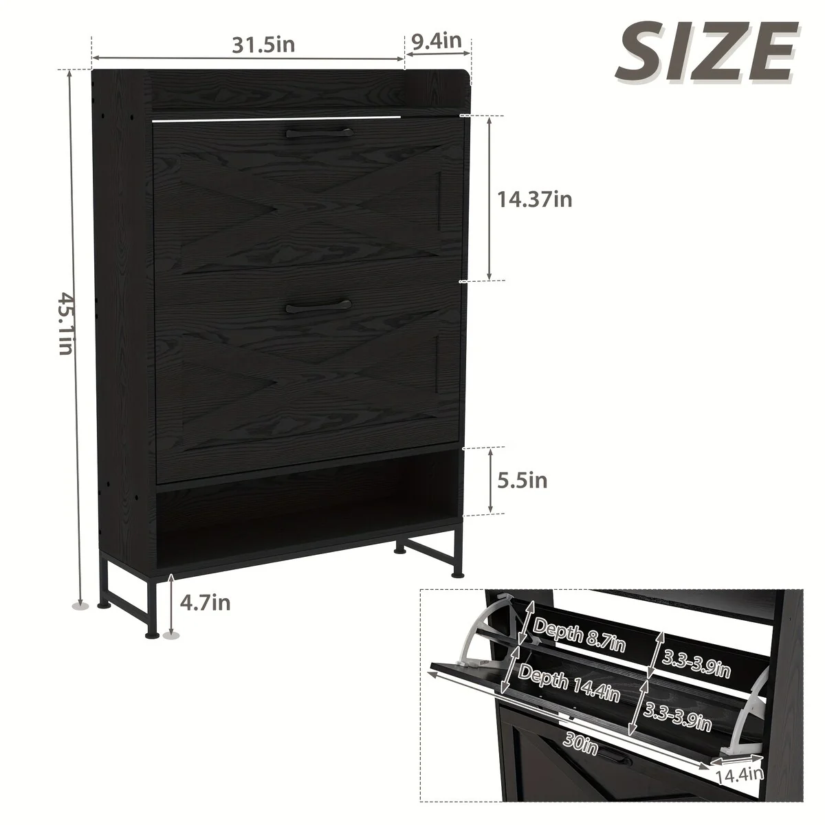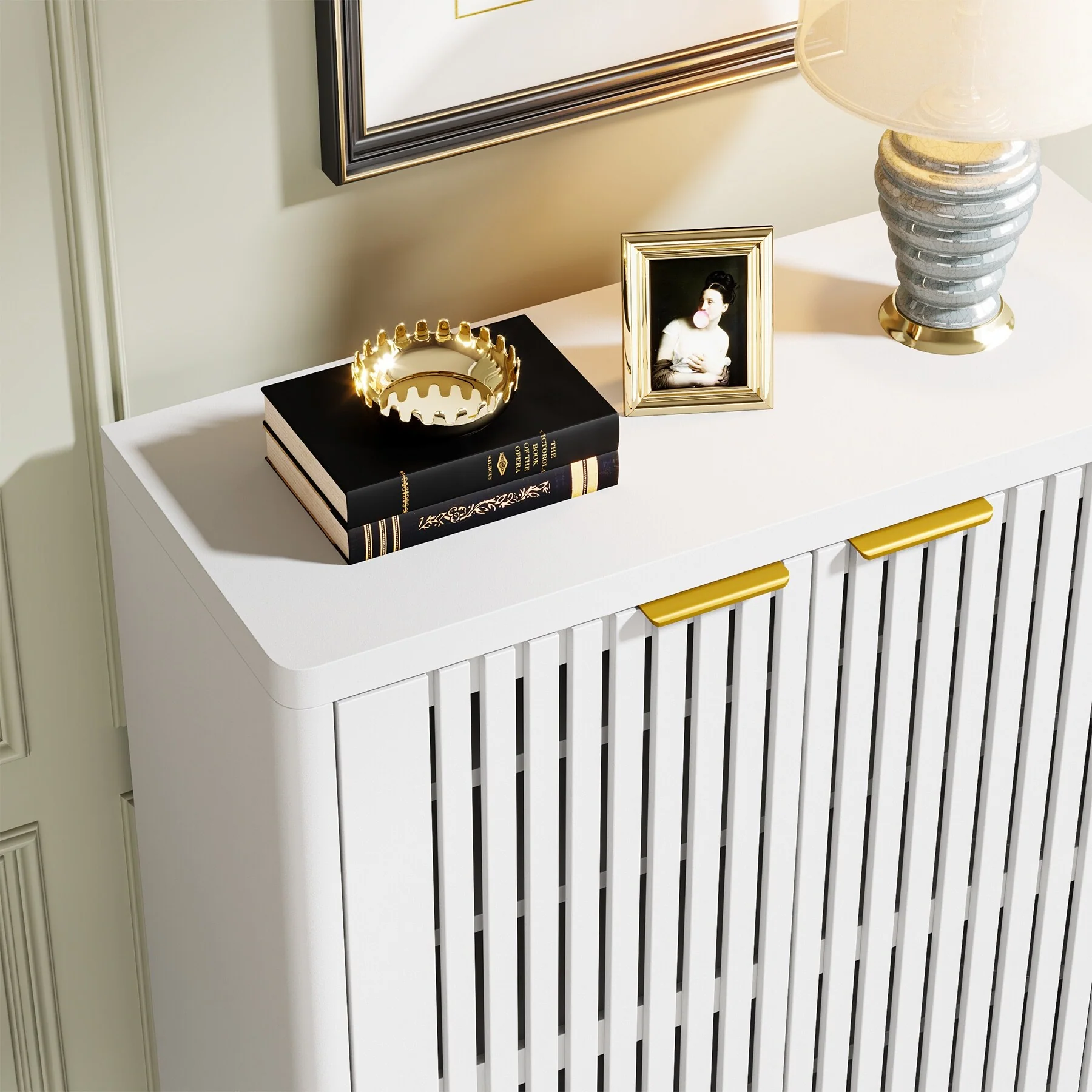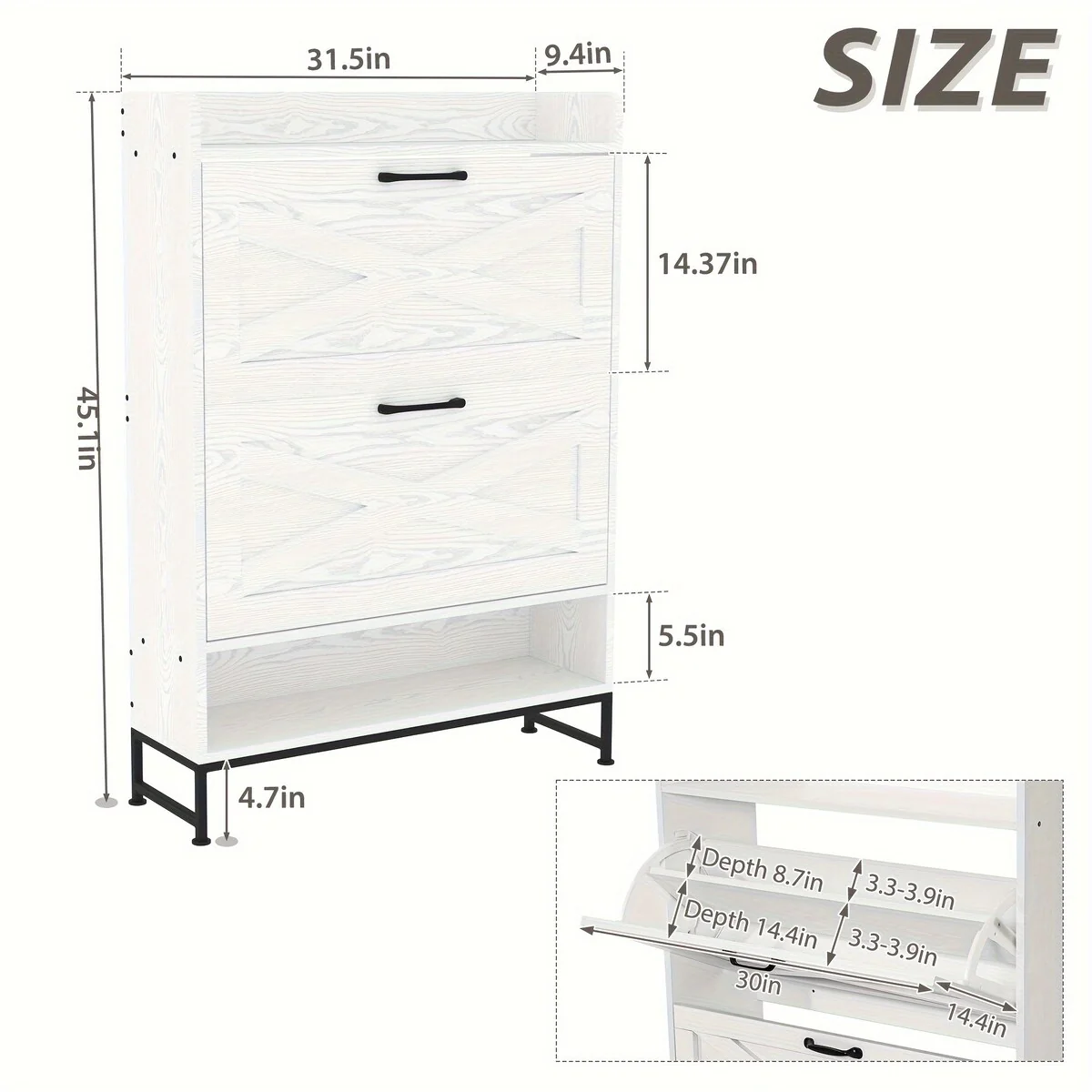 24 Pair Shoe Storage Cabinet Wood Shoe Rack Organizer with 4 Flip Drawers for Entryway