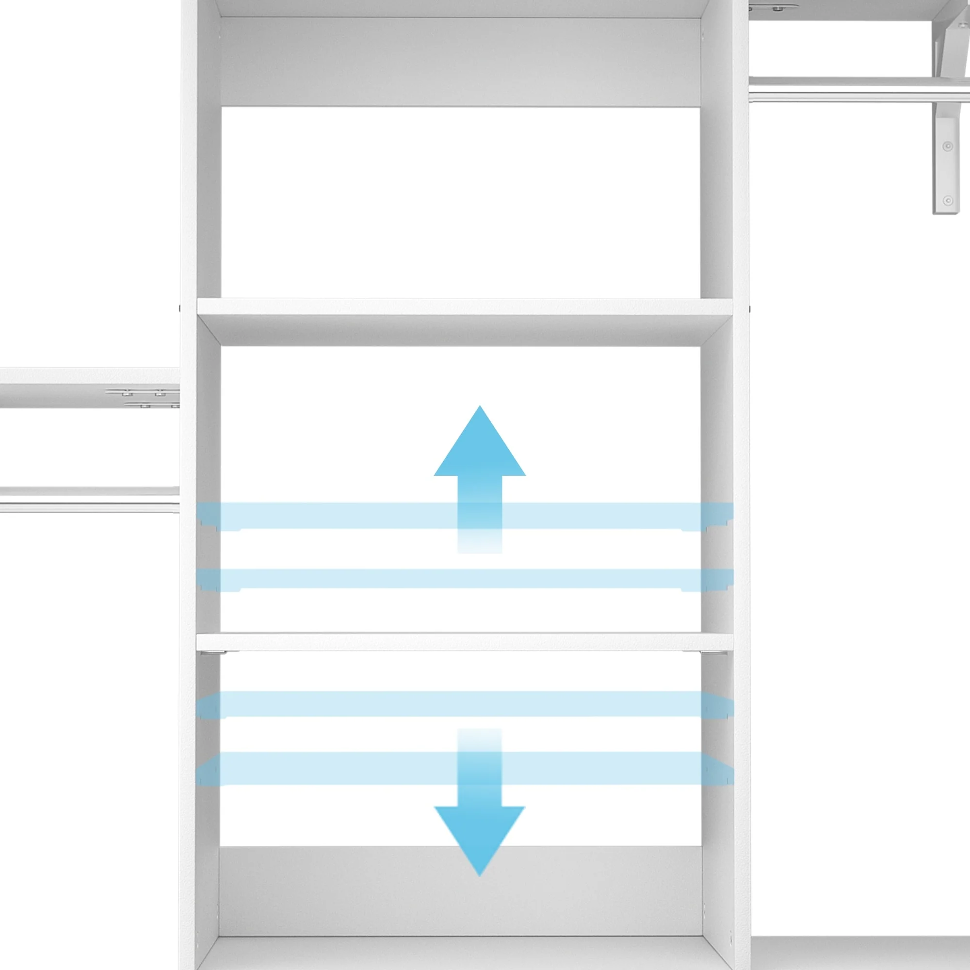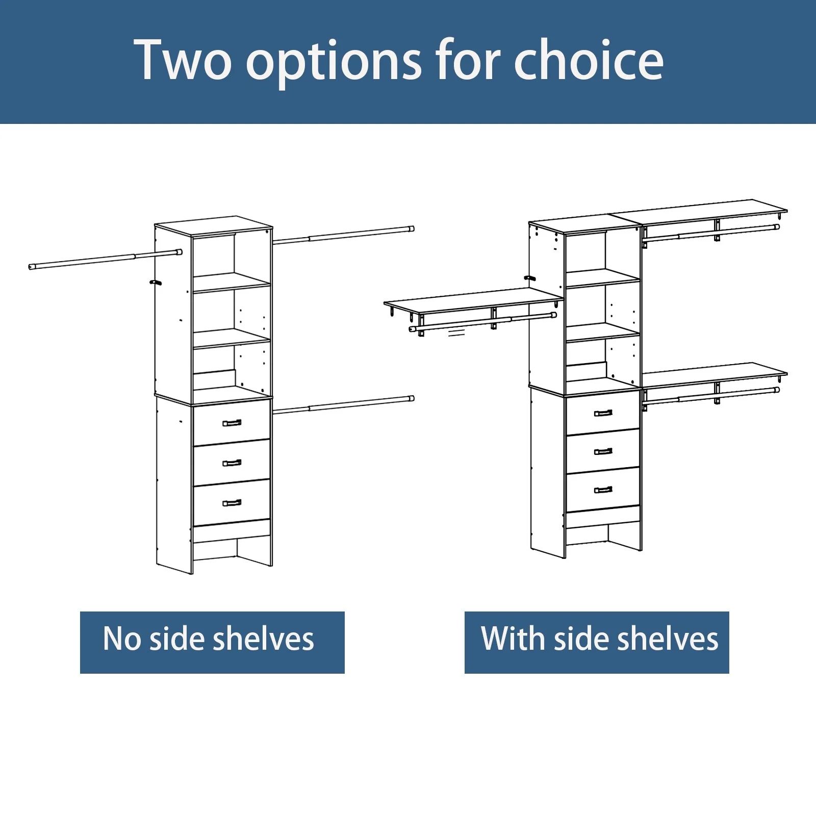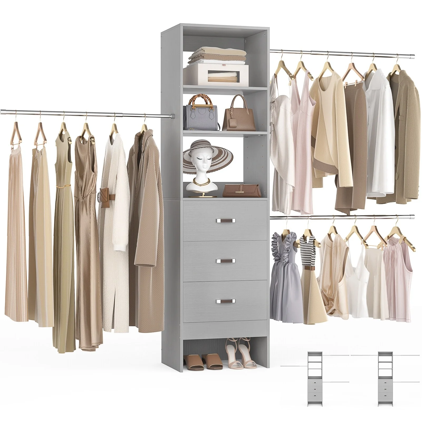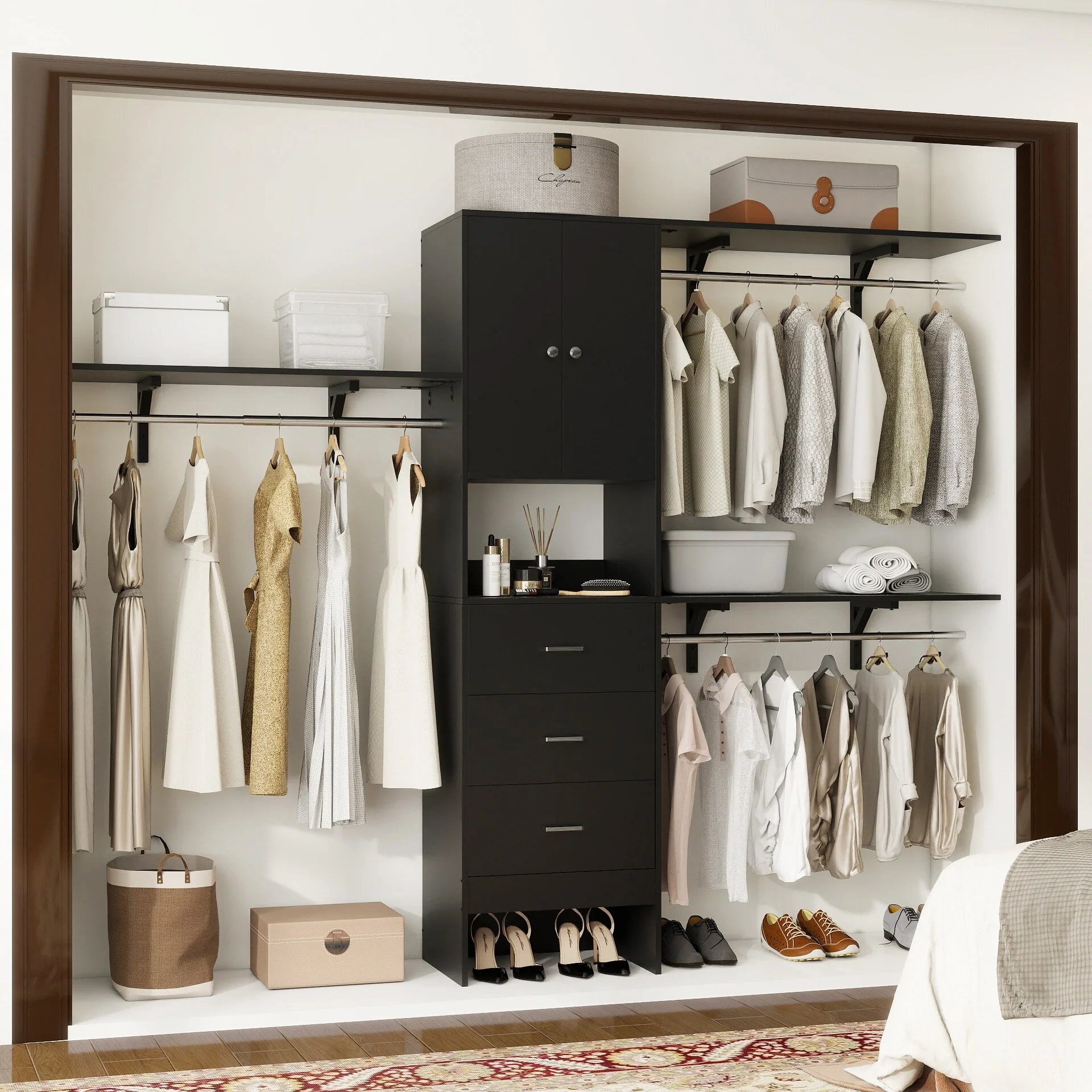 20.5-96'' W Closet Organizer System with Extendable Hanging Rods and Drawers and Tower Shelves