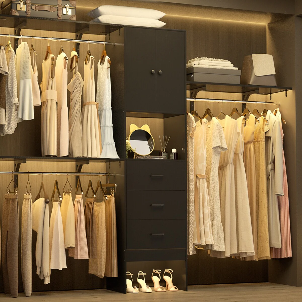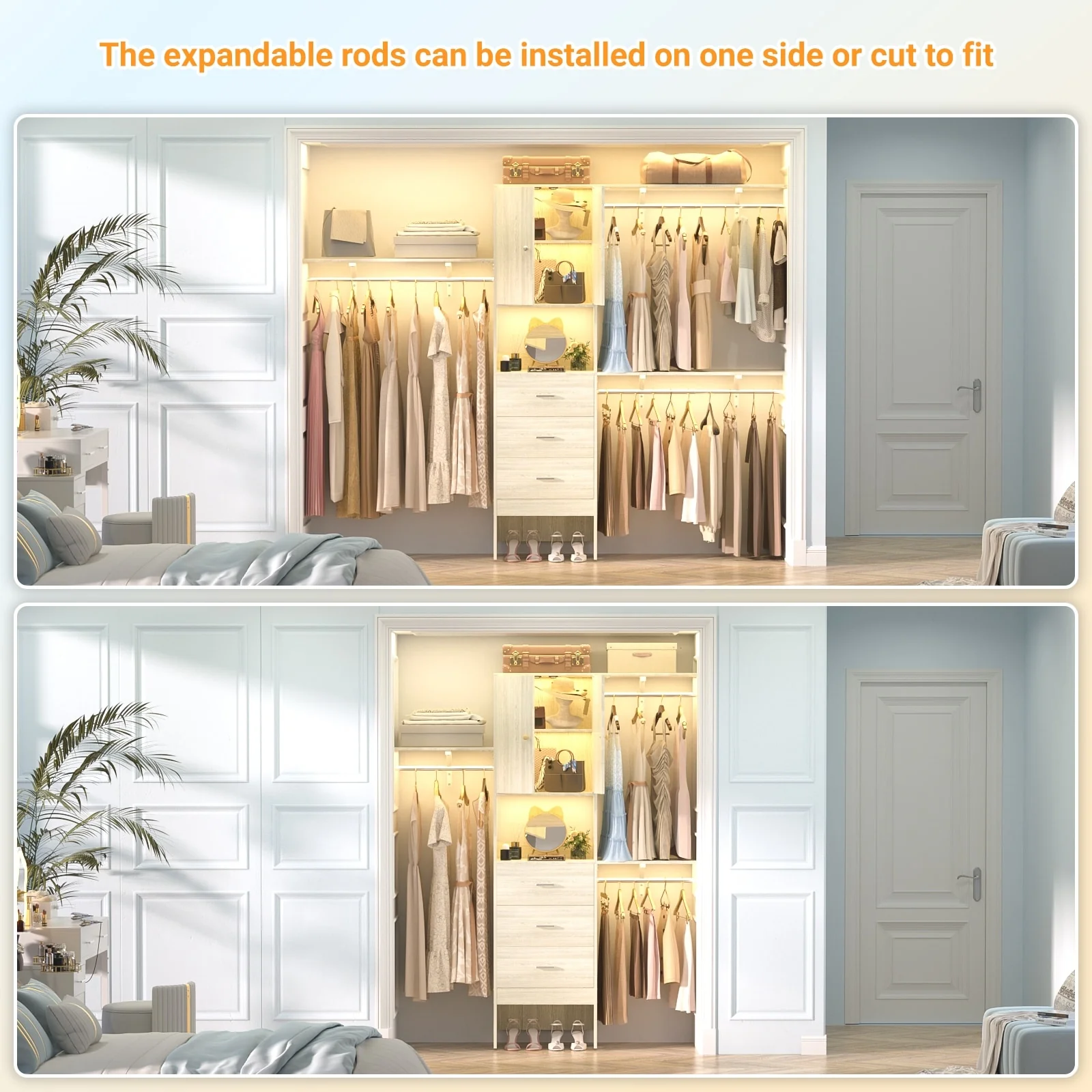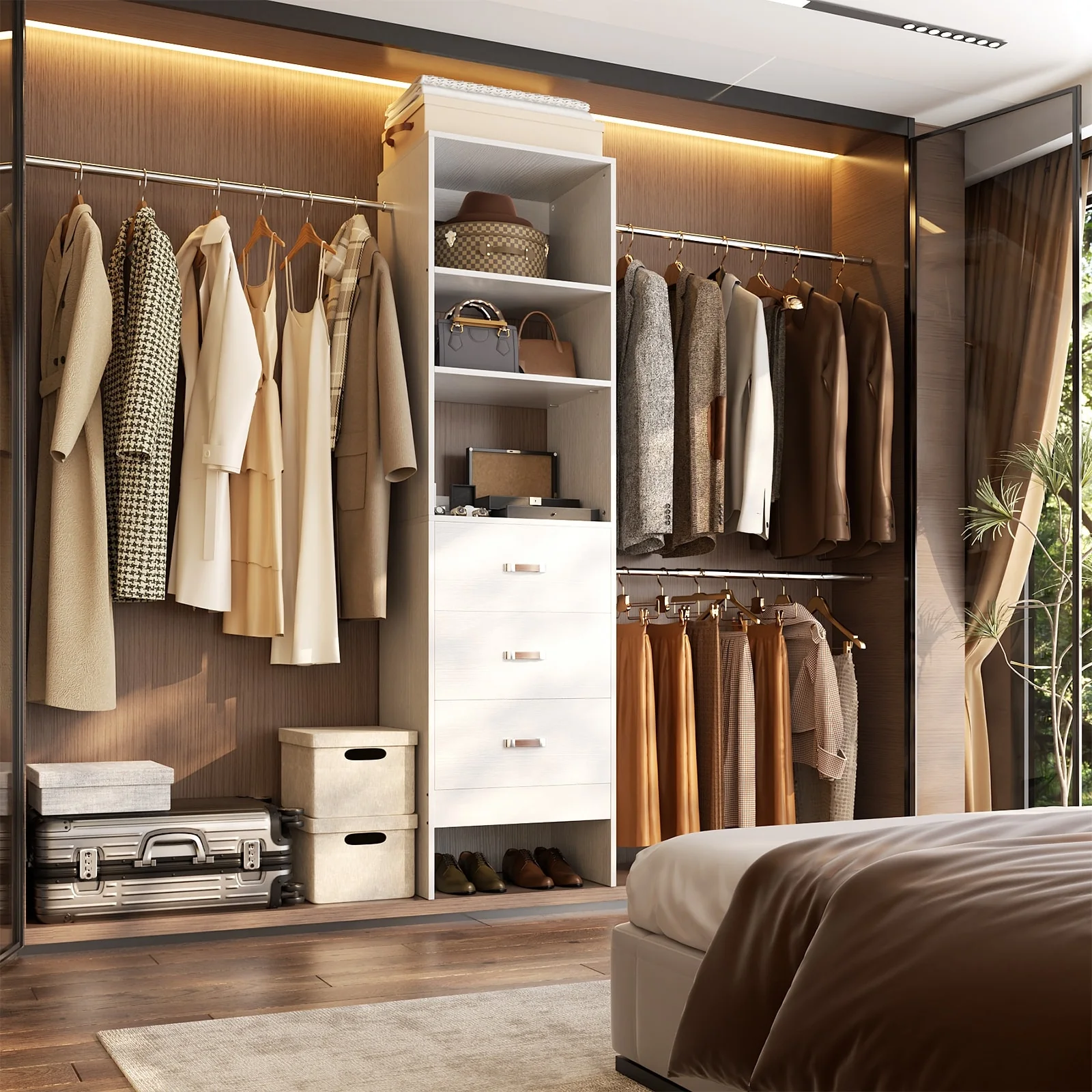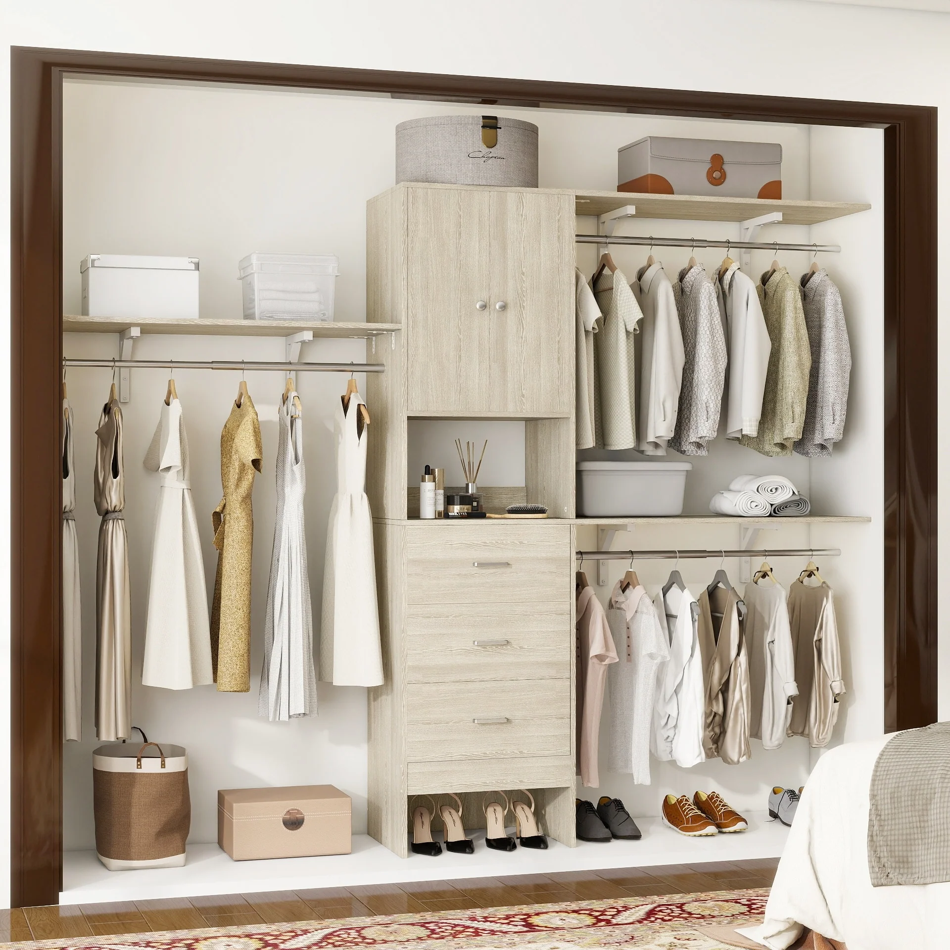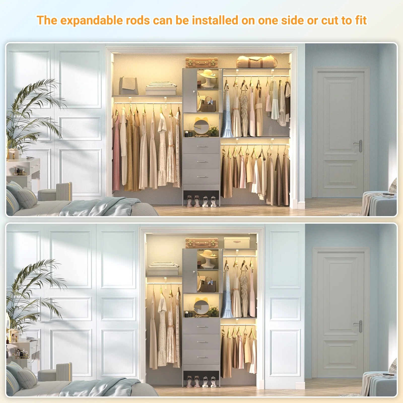 20.5-96'' W Closet Organizer System with Extendable Hanging Rods and Drawers and Tower Shelves