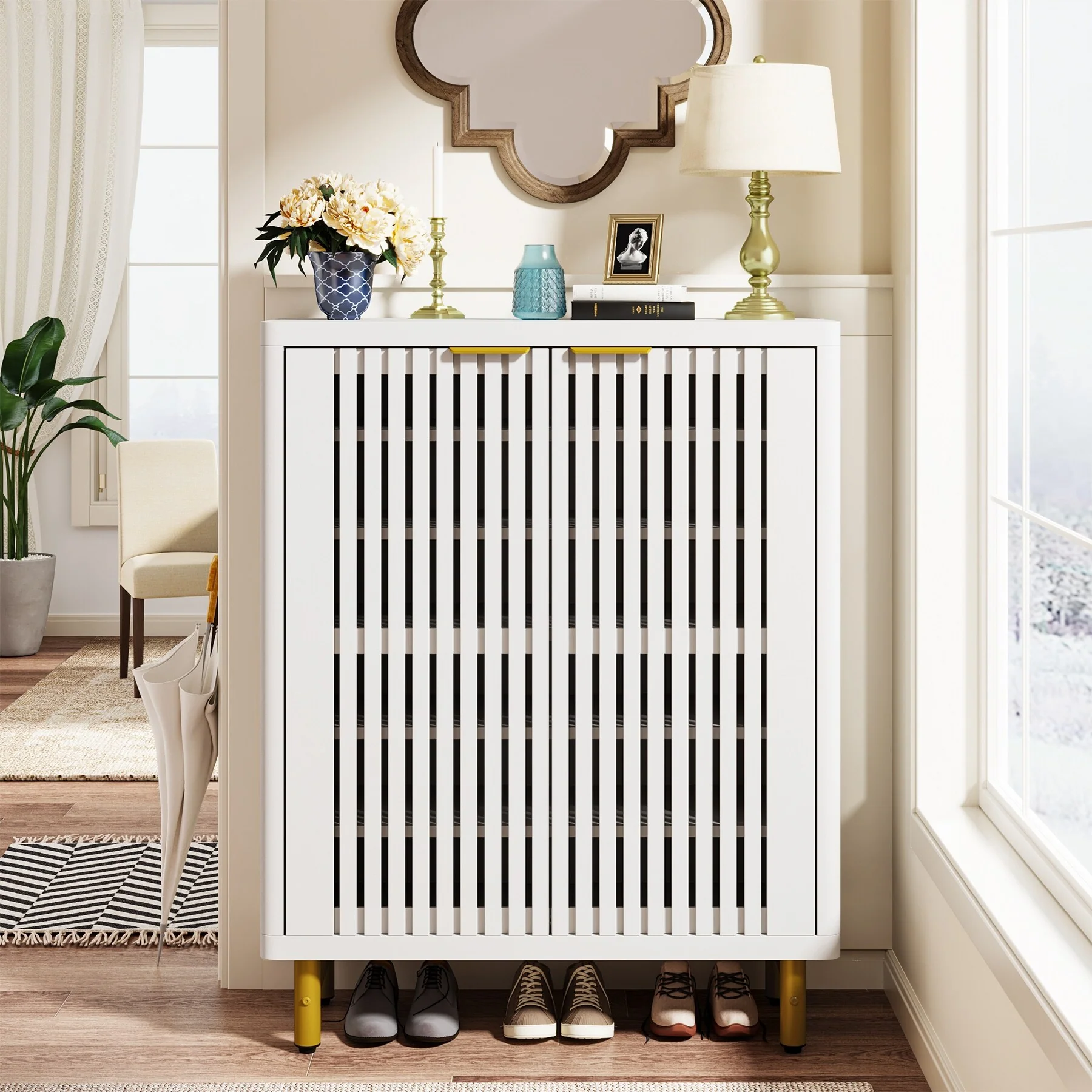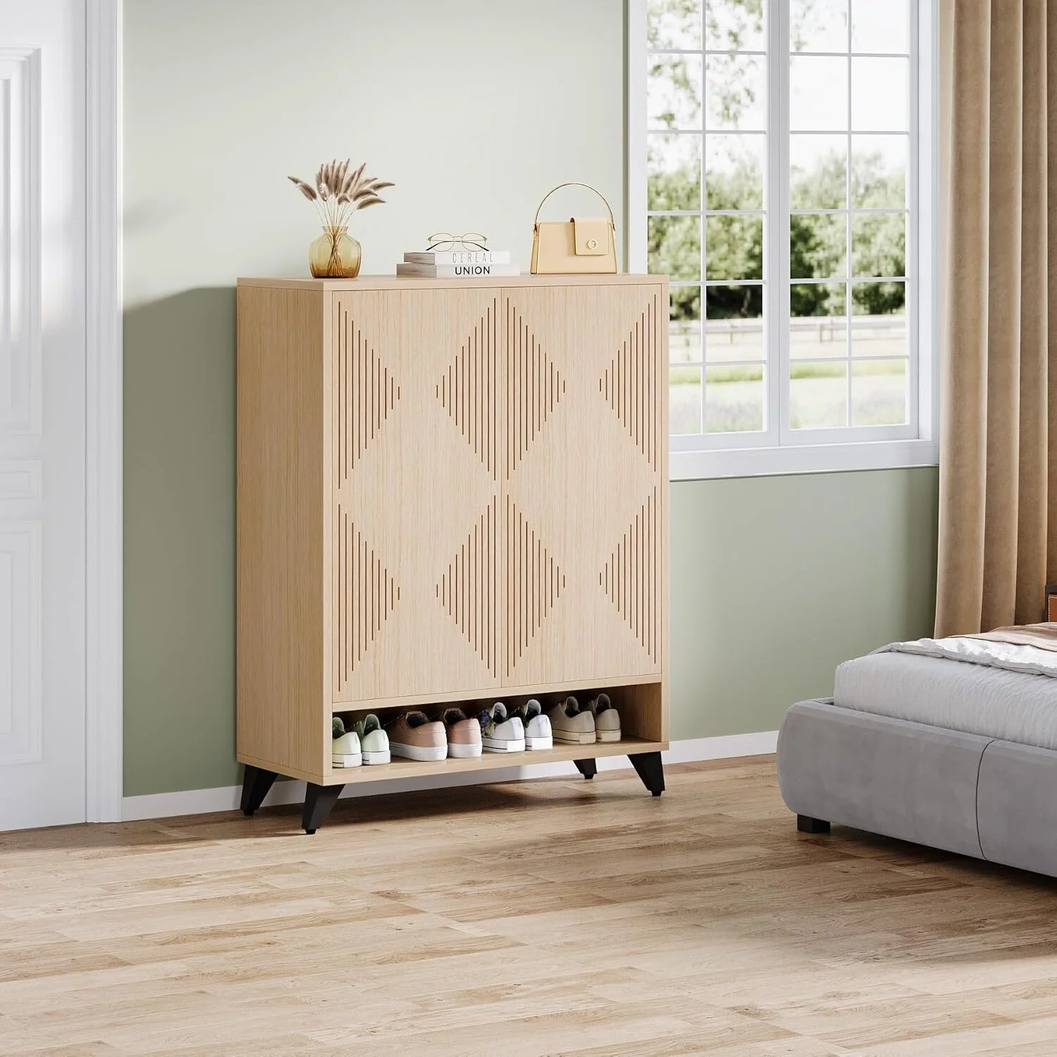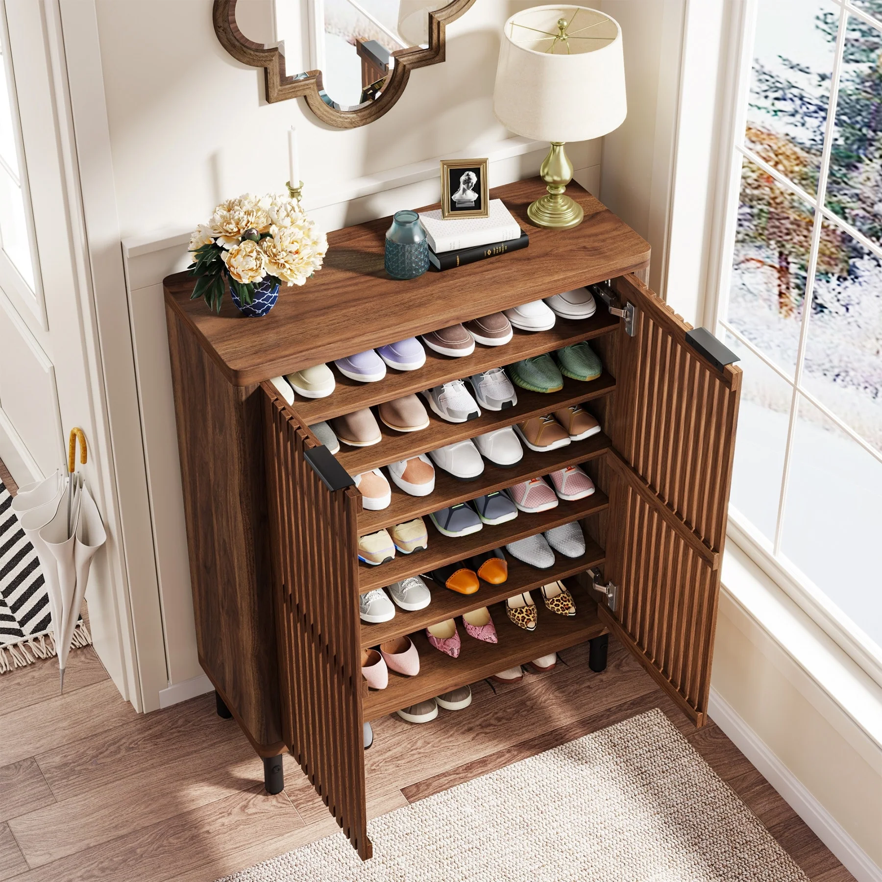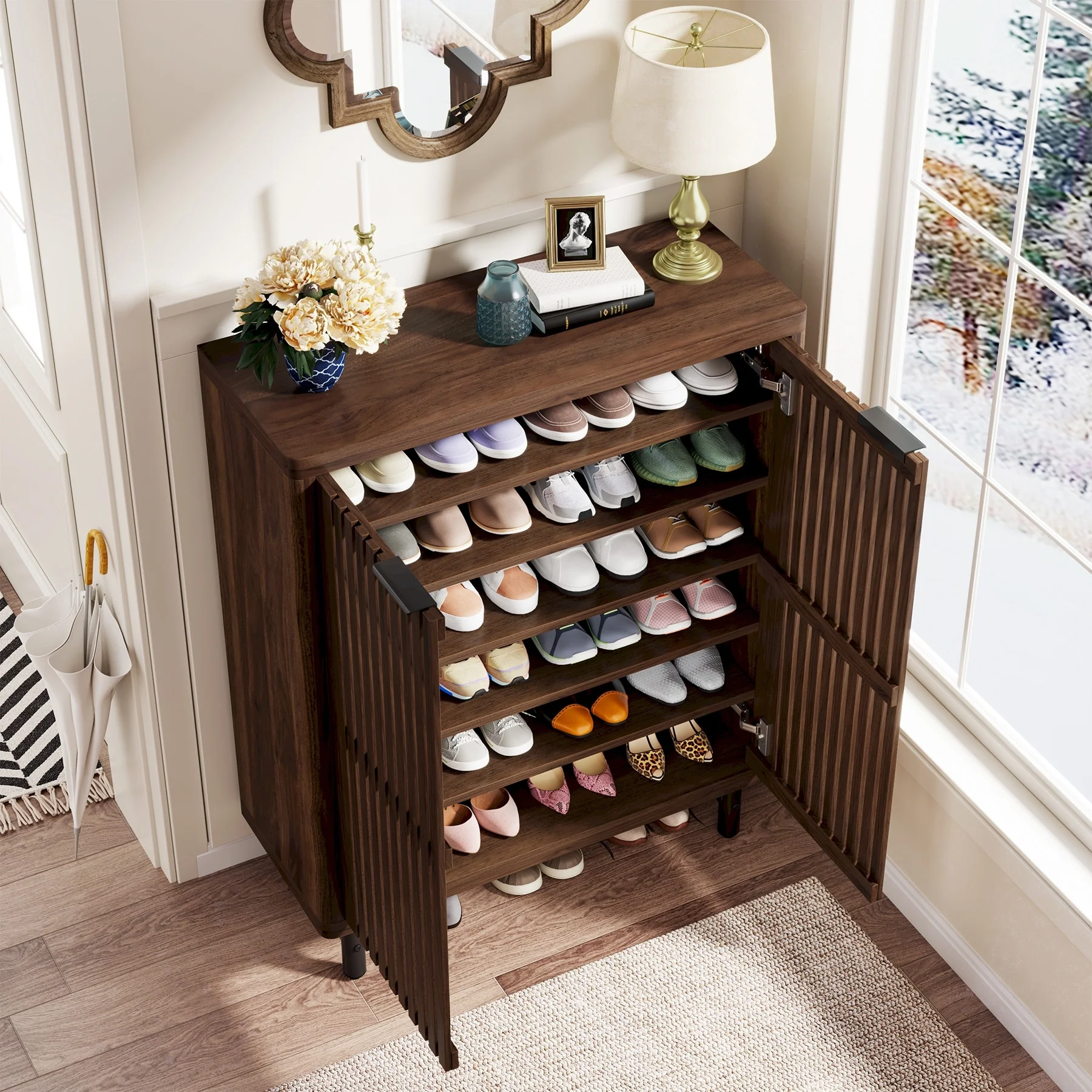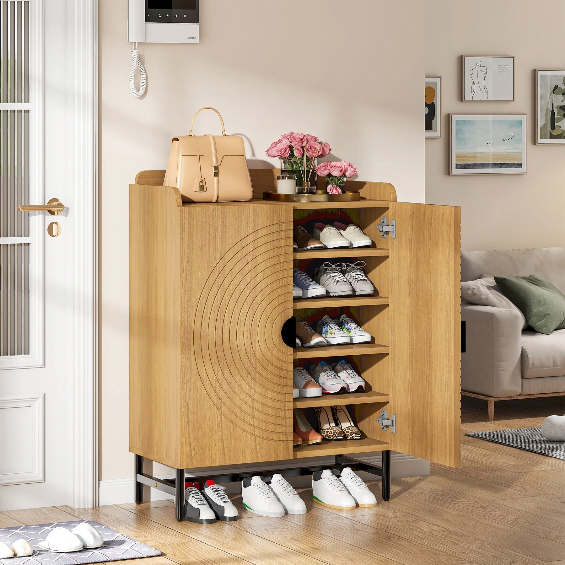 24 Pairs Wood Shoe Storage Cabinet with 2-Door and Adjustable Shelving for Entryway Living Room