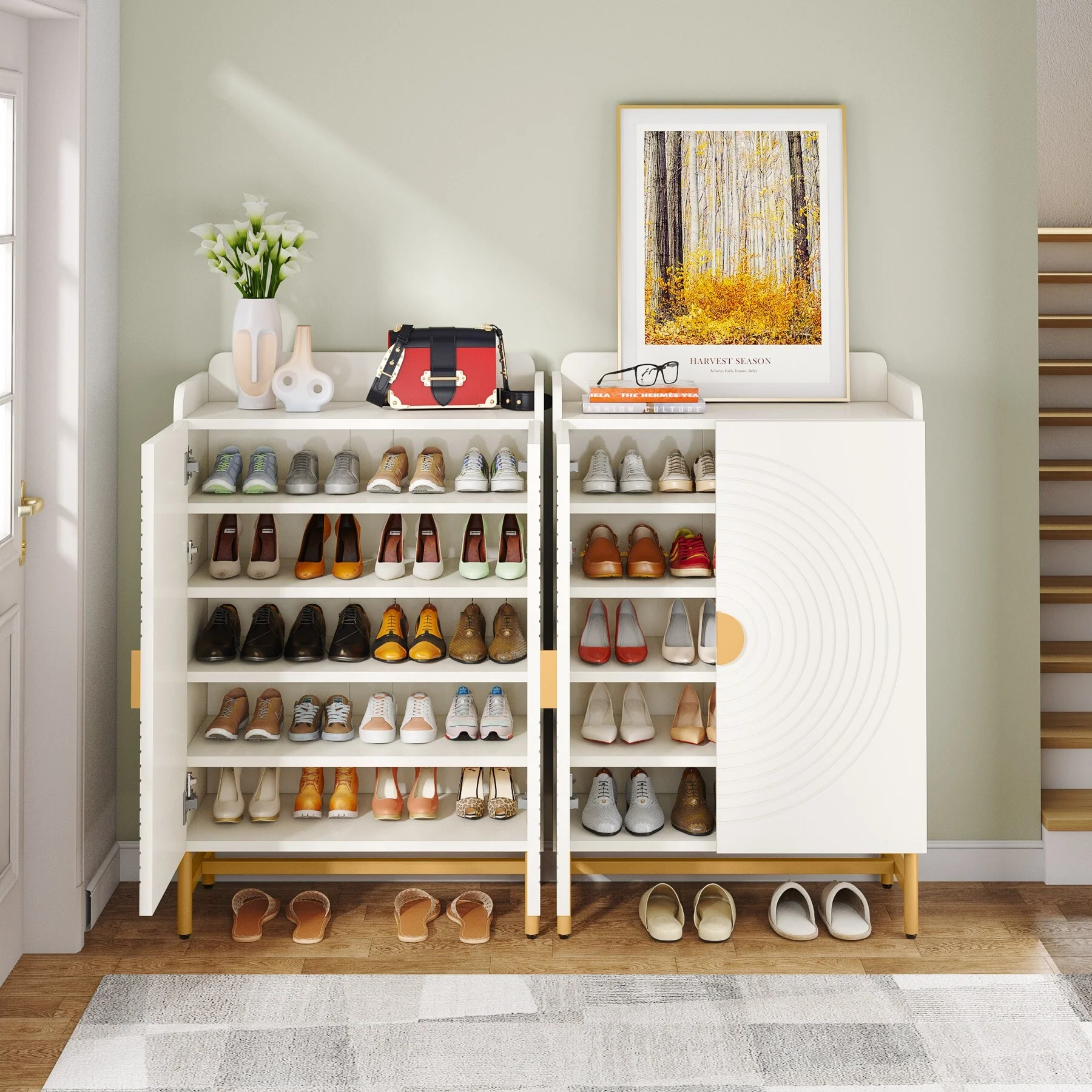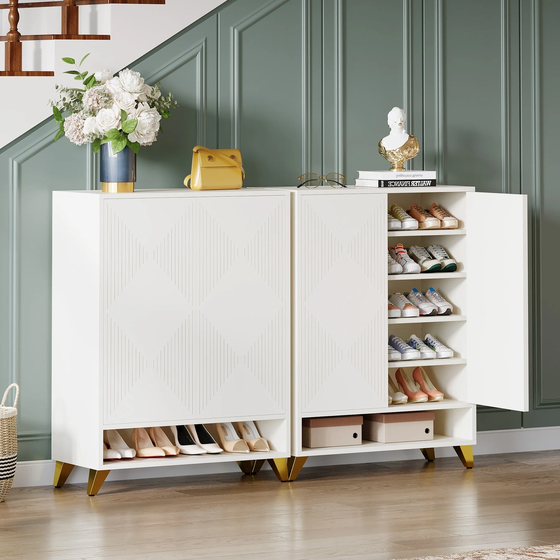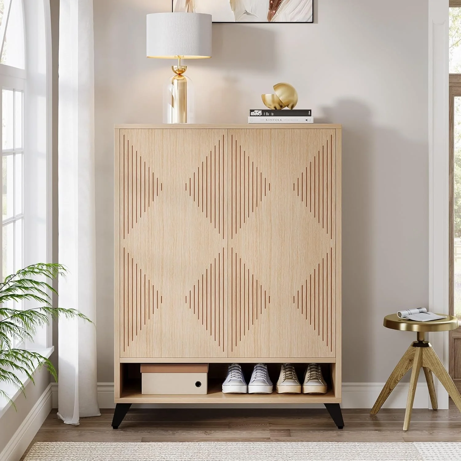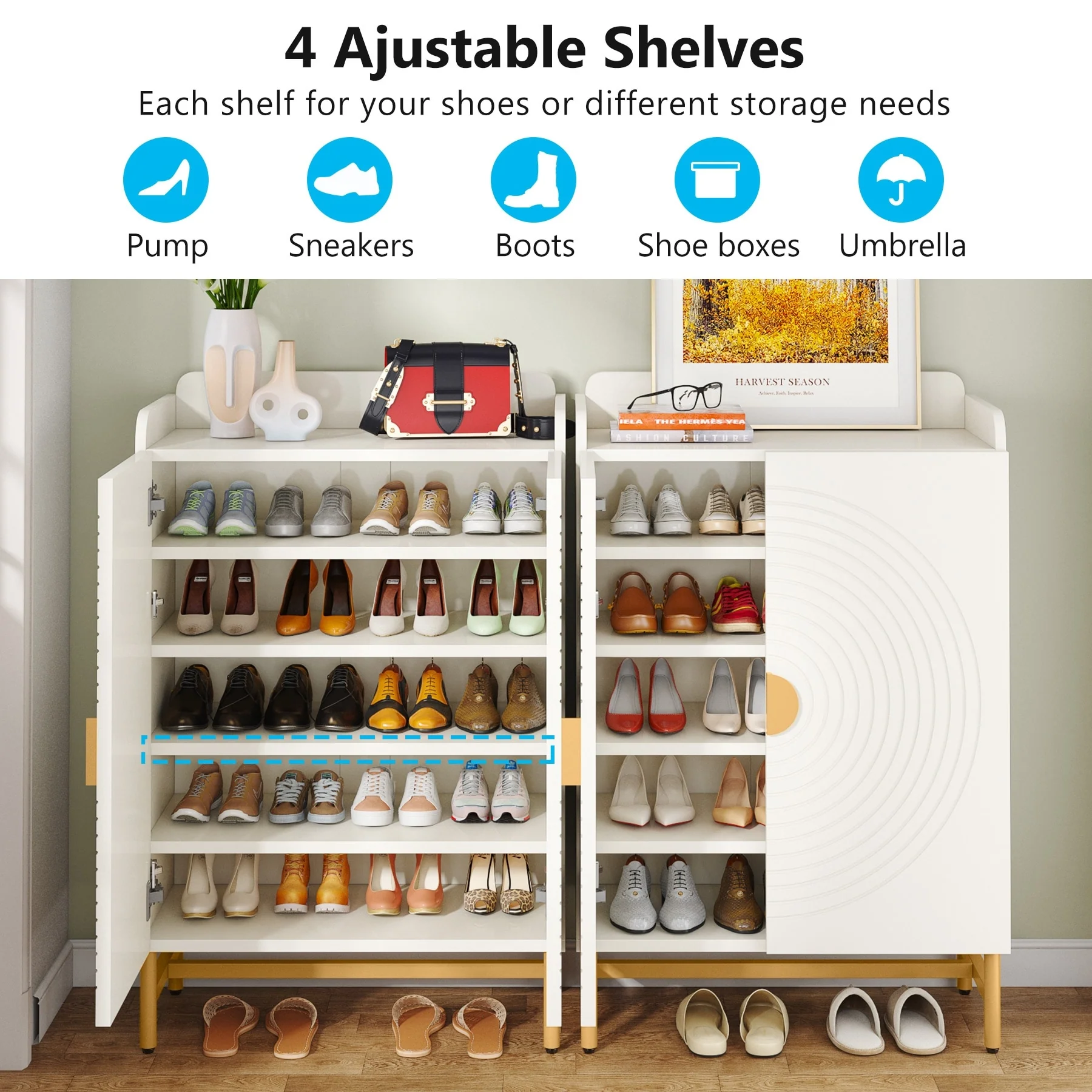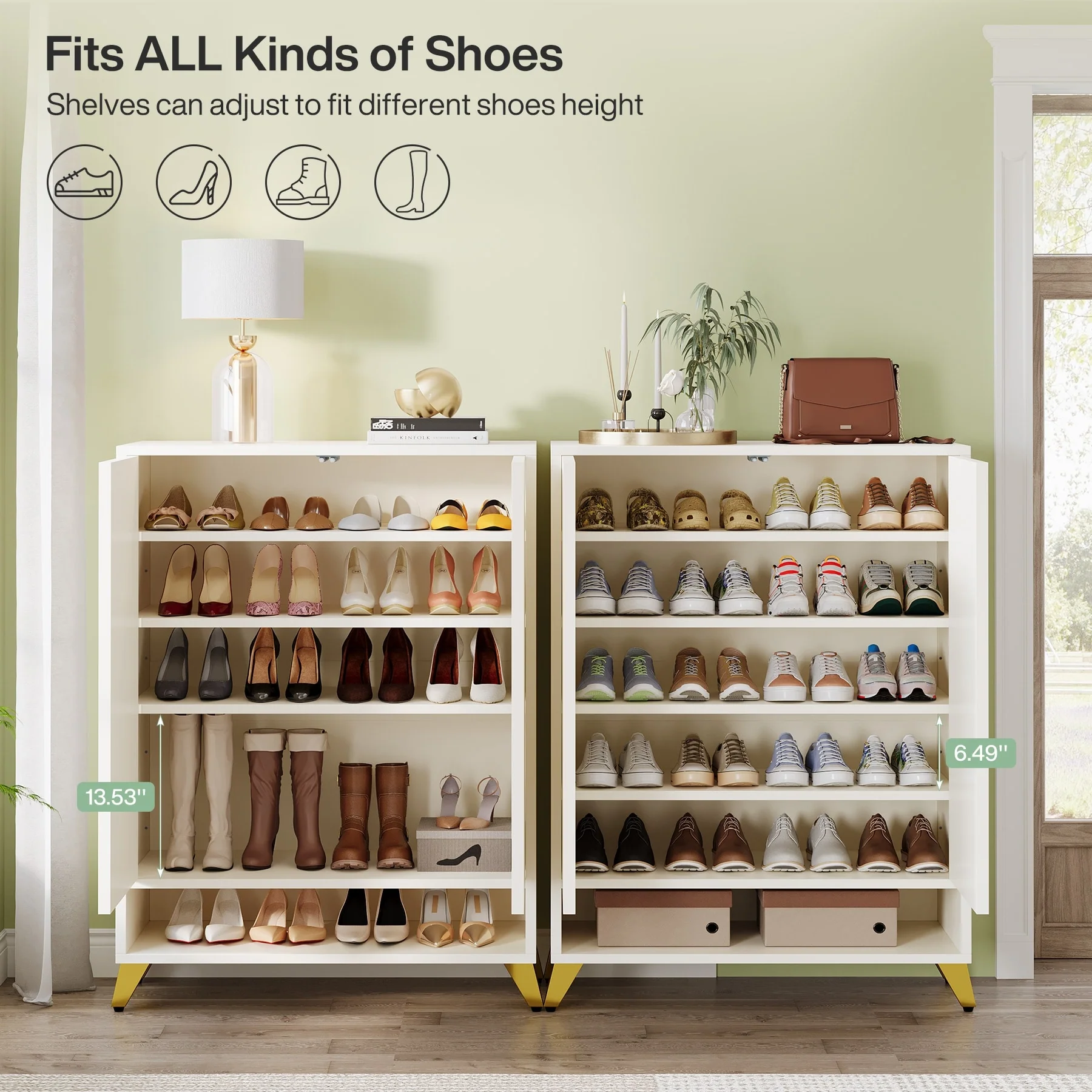 24 Pairs Wood Shoe Storage Cabinet with 2-Door and Adjustable Shelving for Entryway Living Room