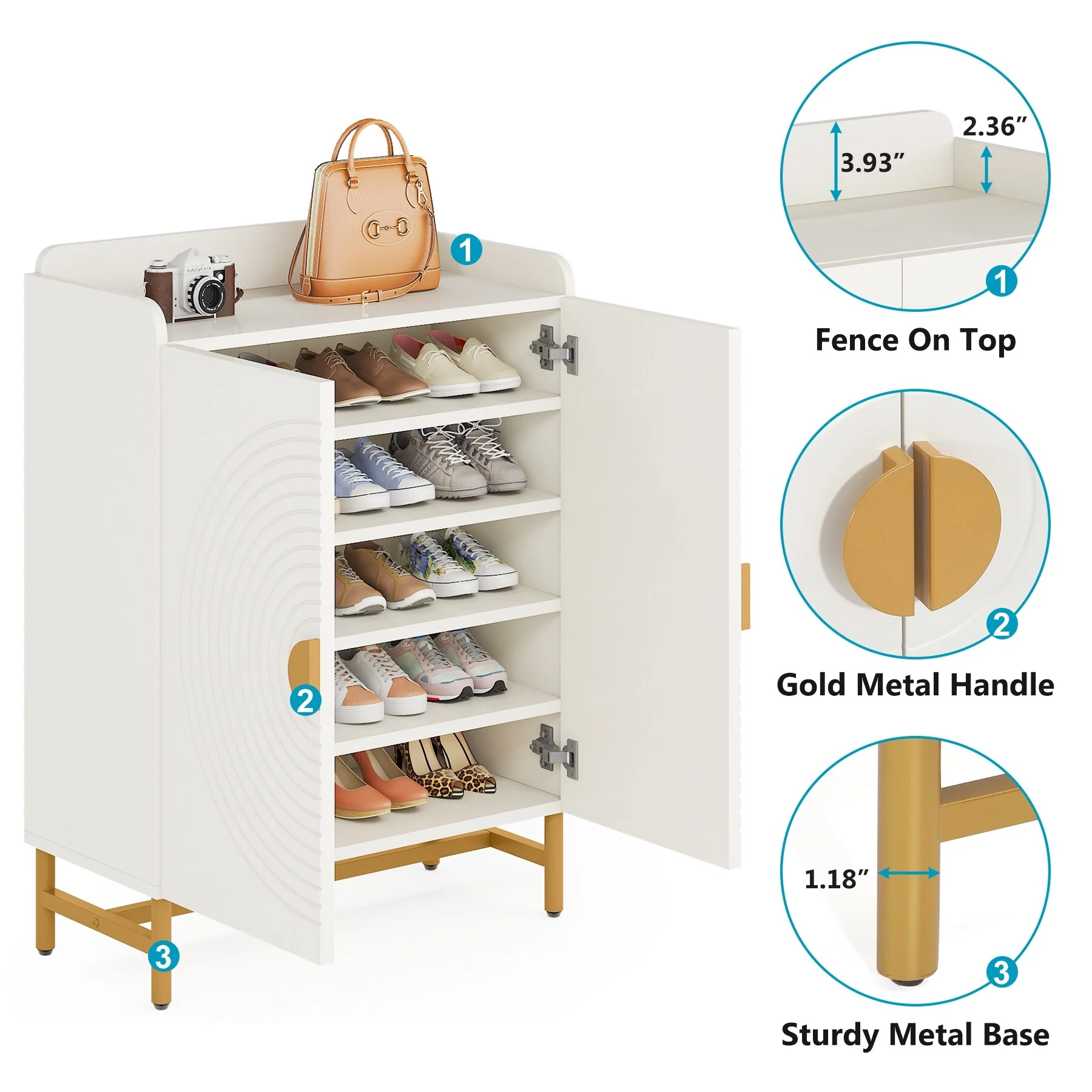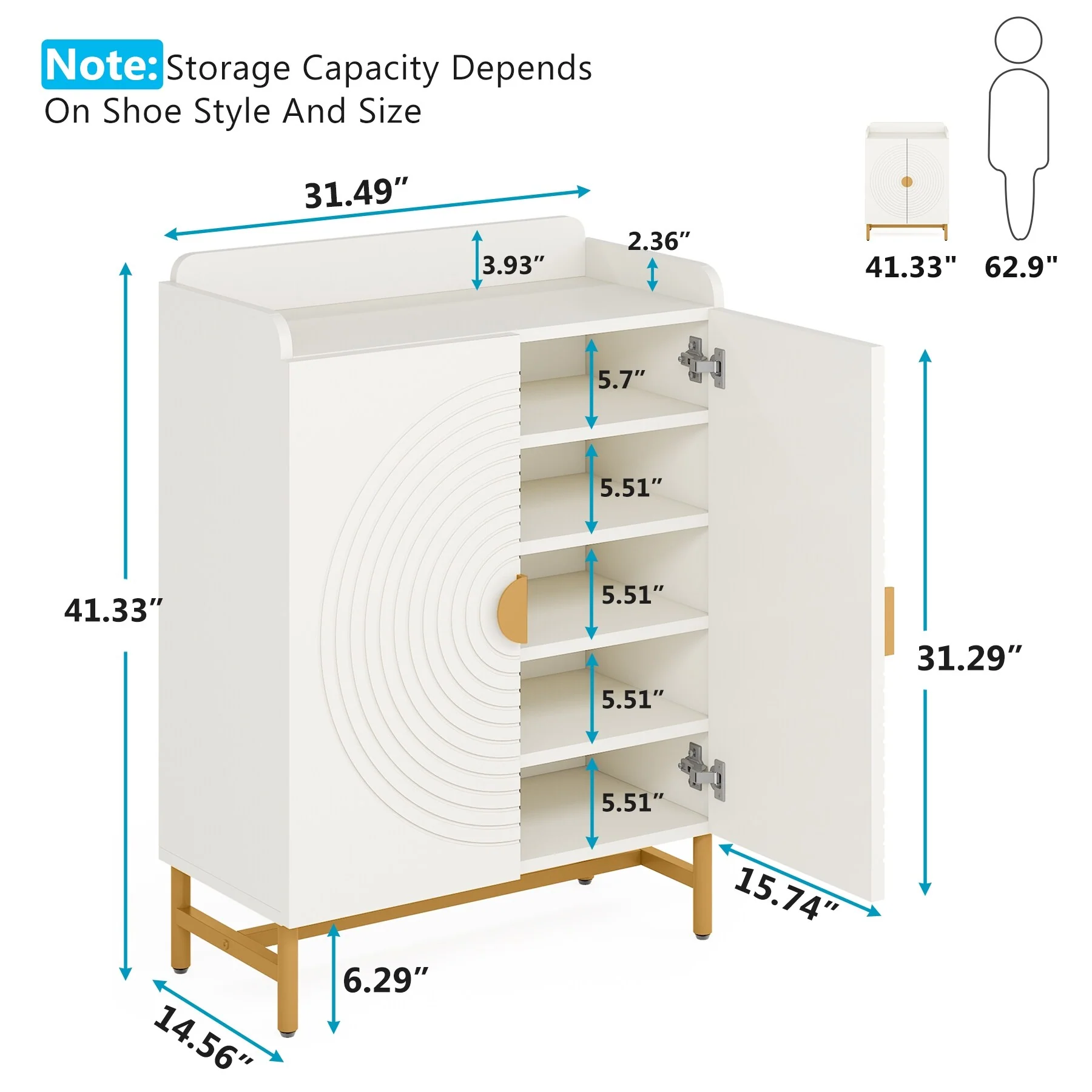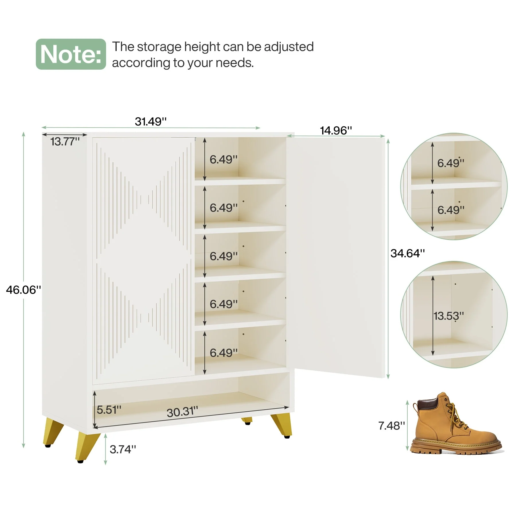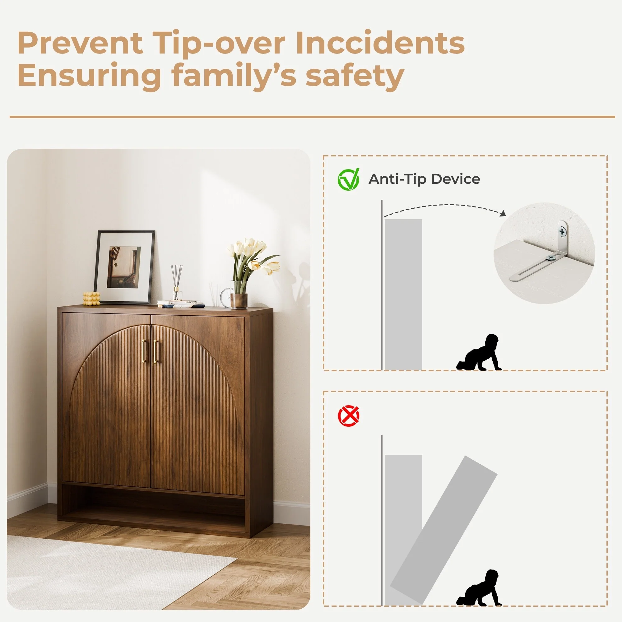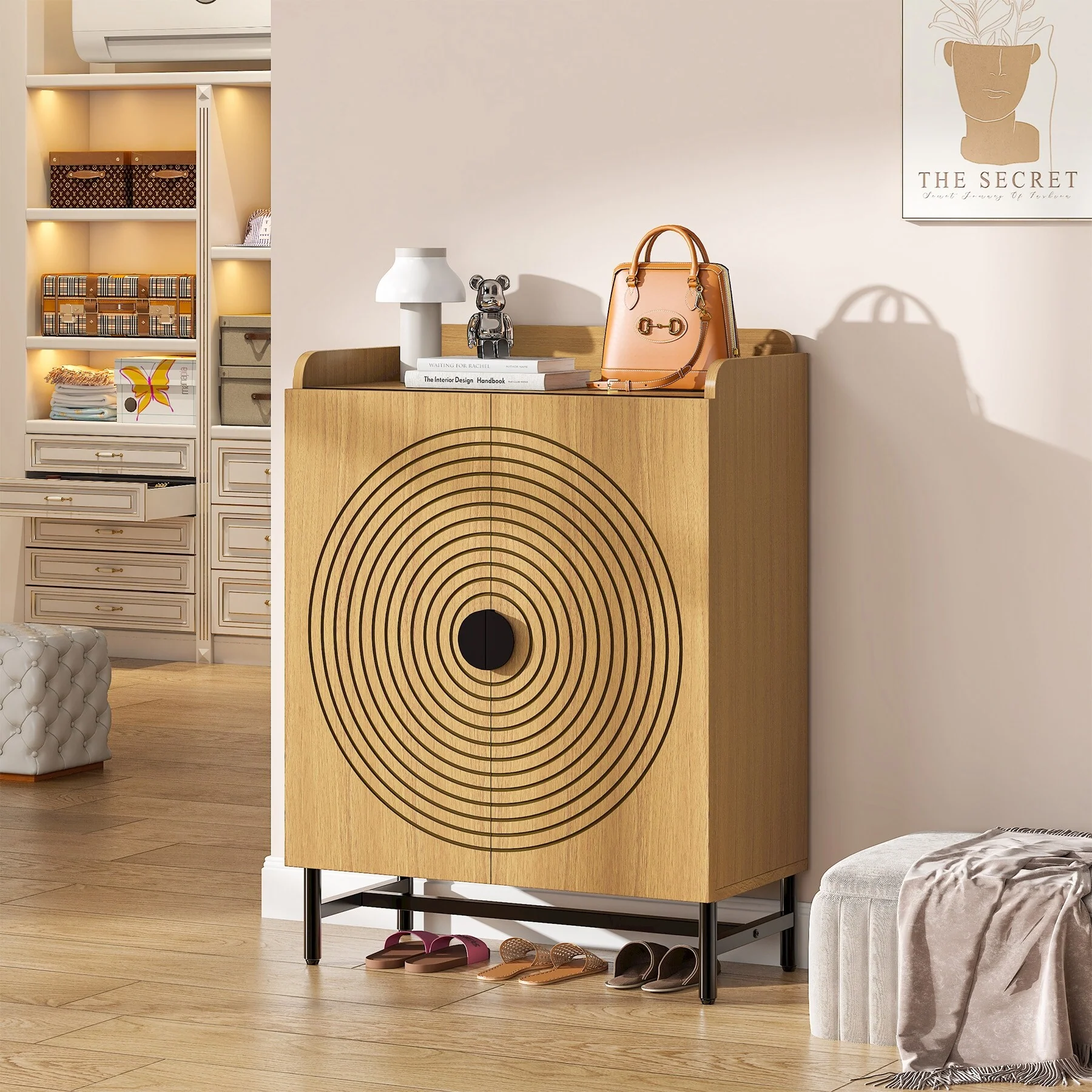 24 Pairs Wood Shoe Storage Cabinet with 2-Door and Adjustable Shelving for Entryway Living Room