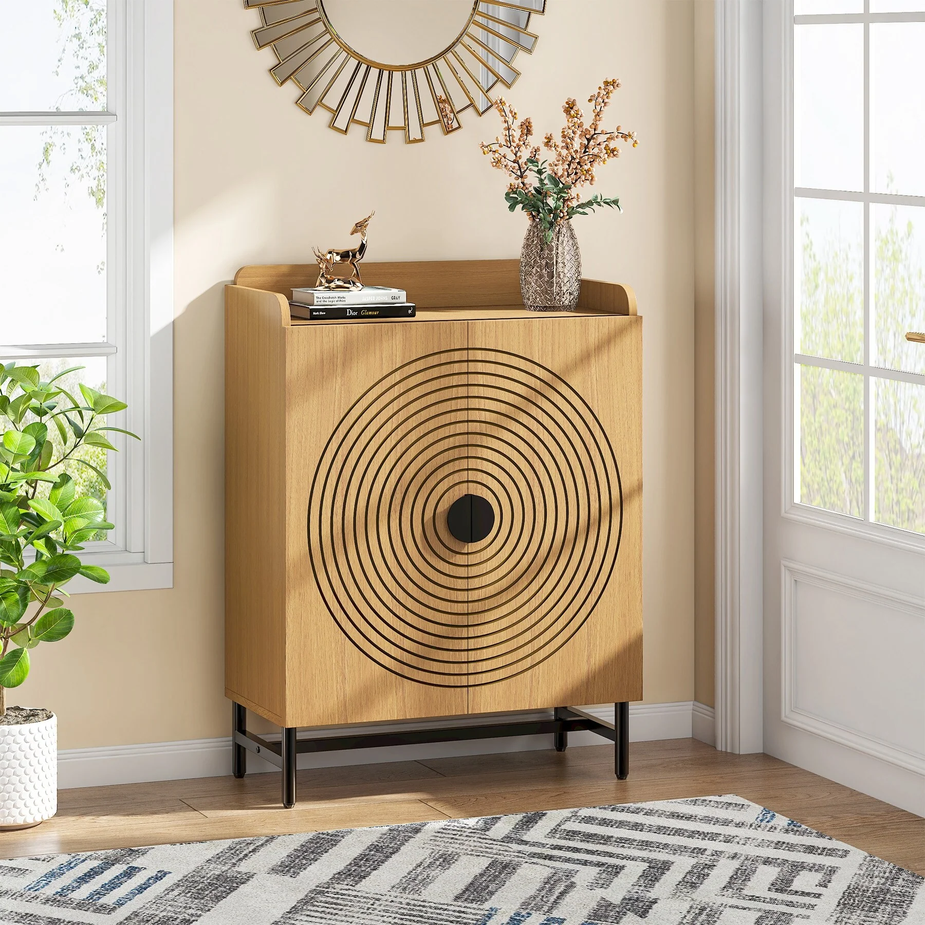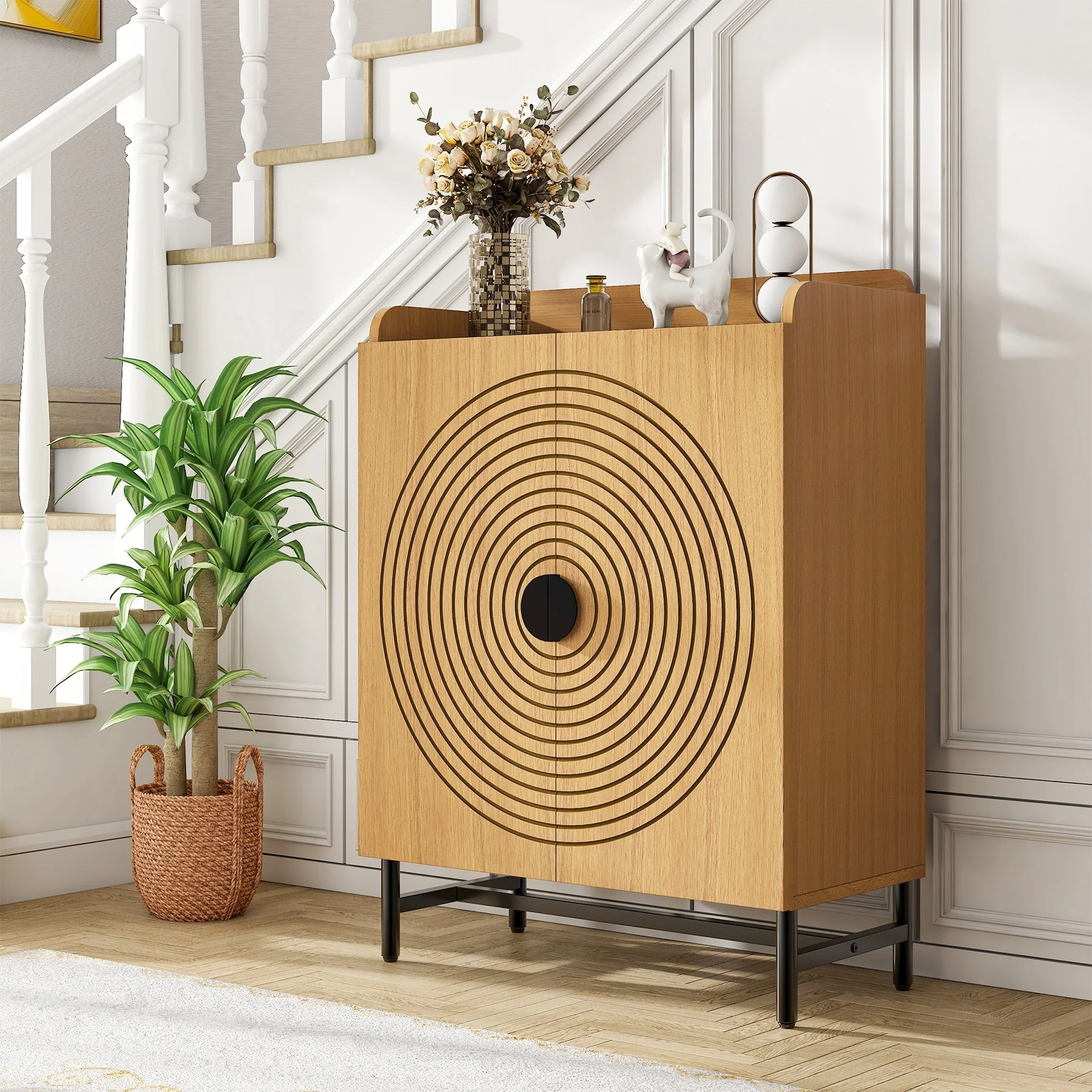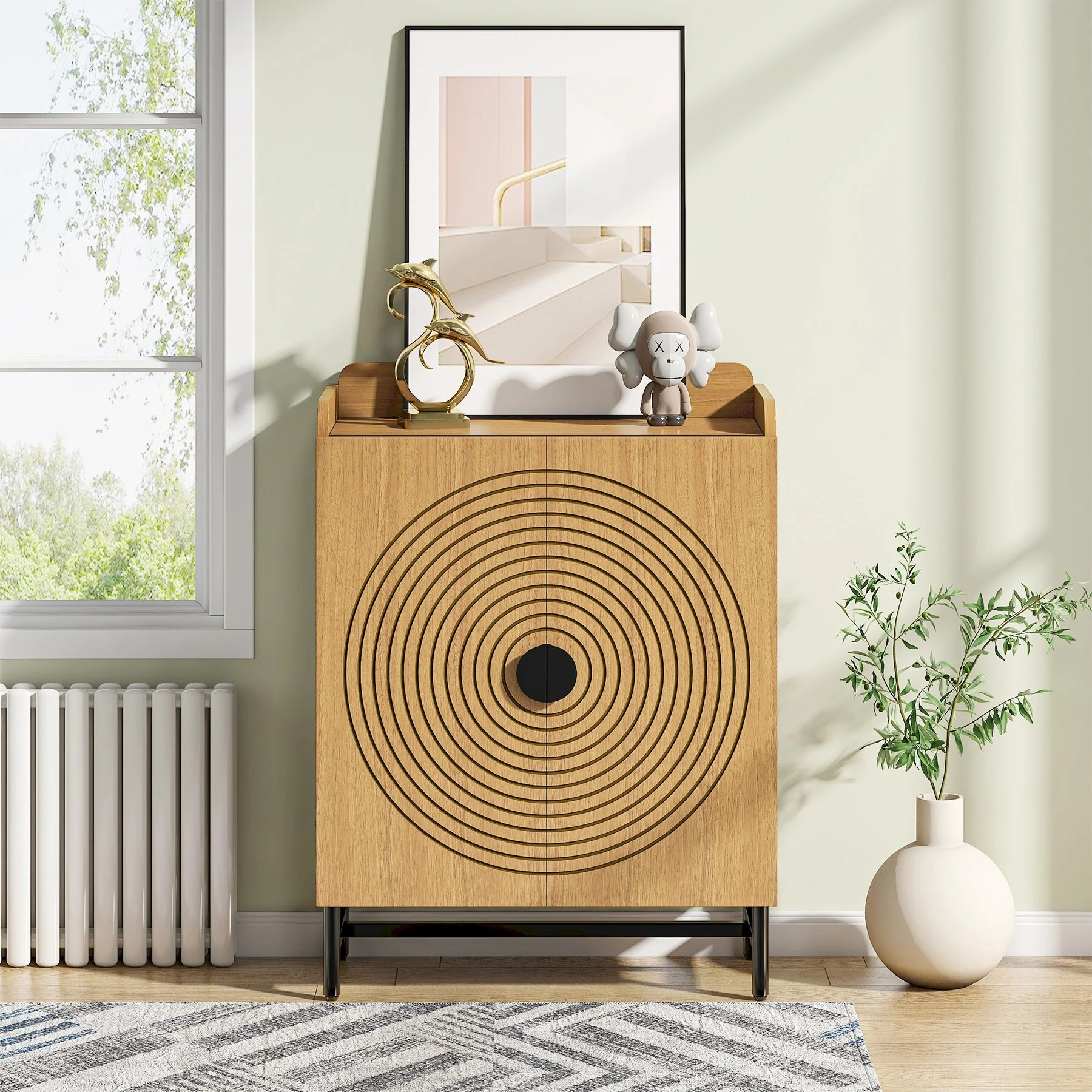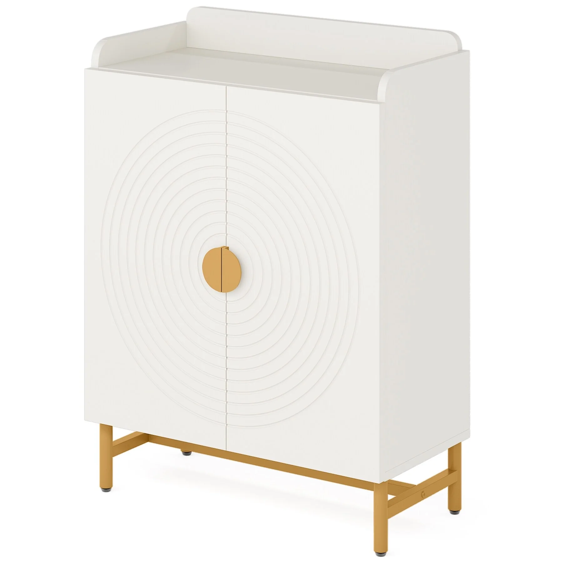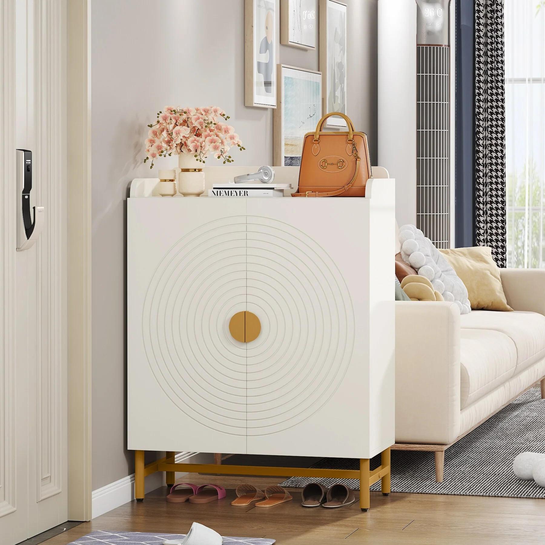 24 Pairs Wood Shoe Storage Cabinet with 2-Door and Adjustable Shelving for Entryway Living Room